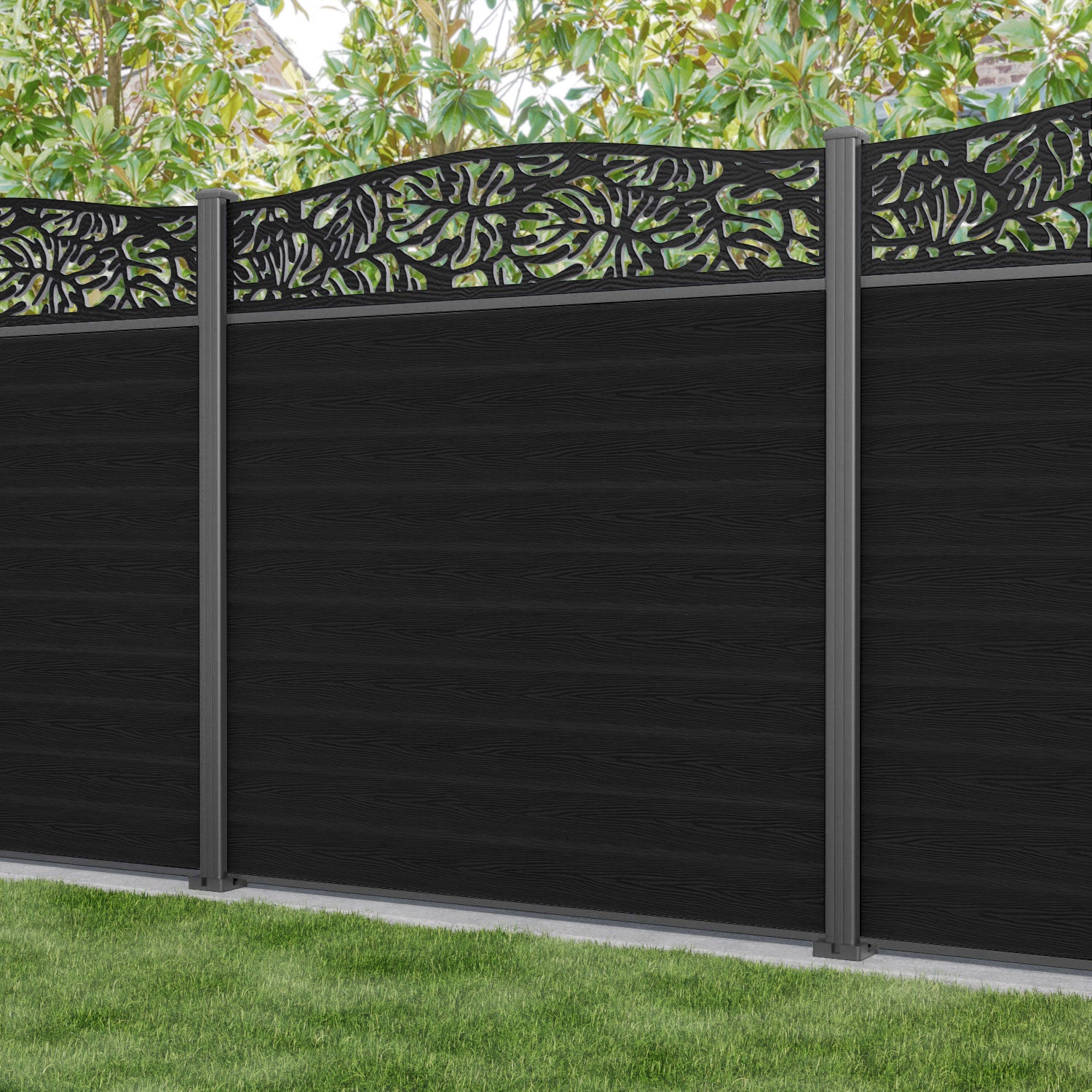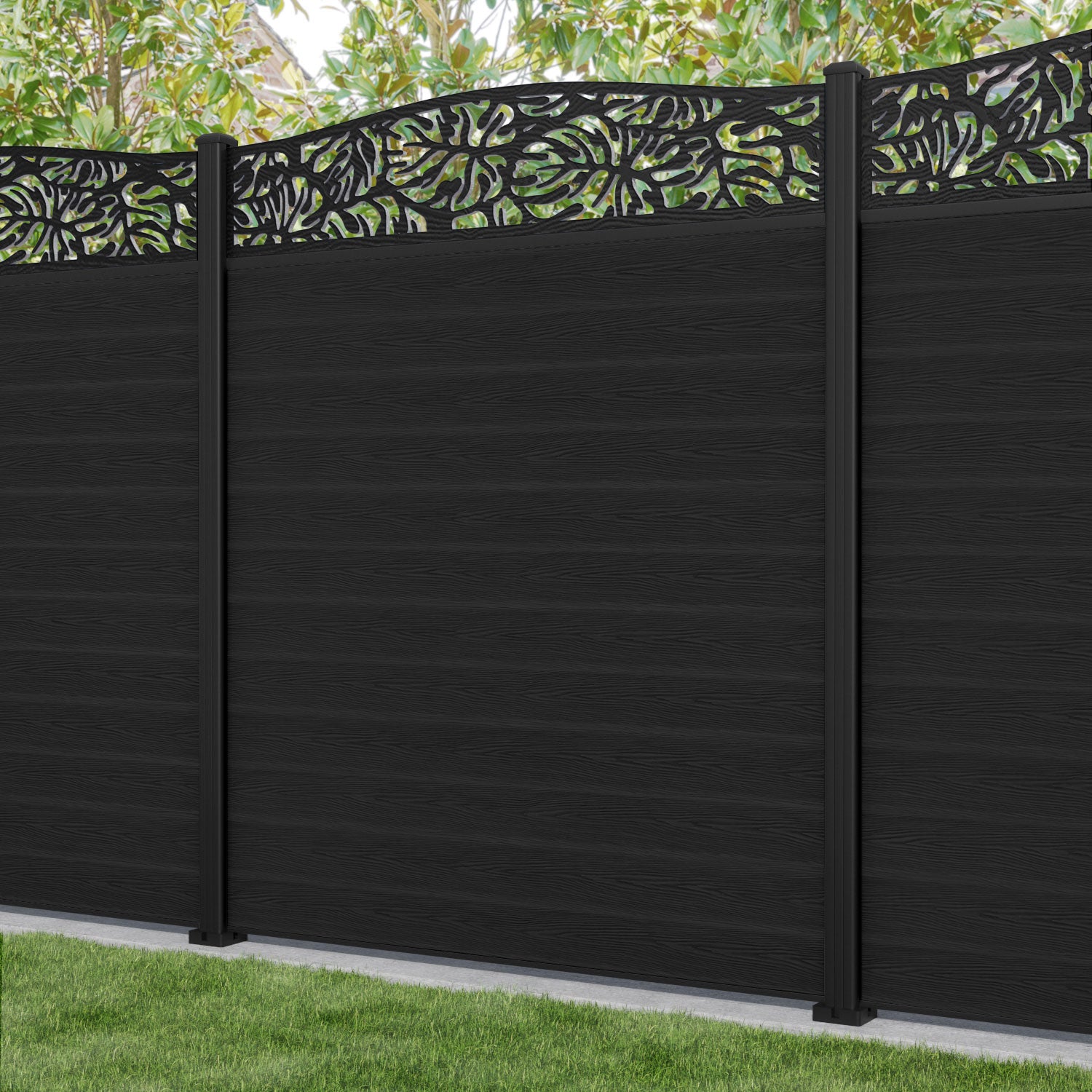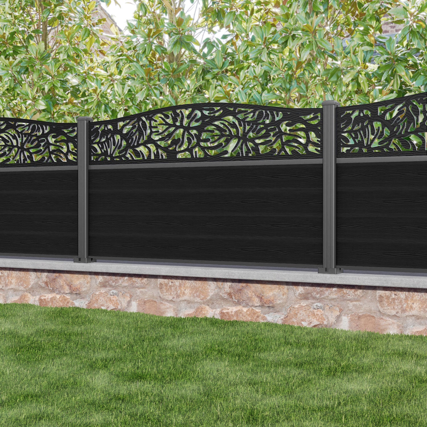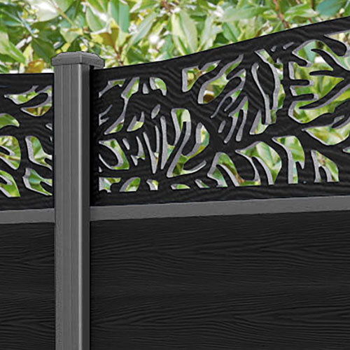 Classic Botanic Curved Top Fence Panel Black - with our aluminium posts
