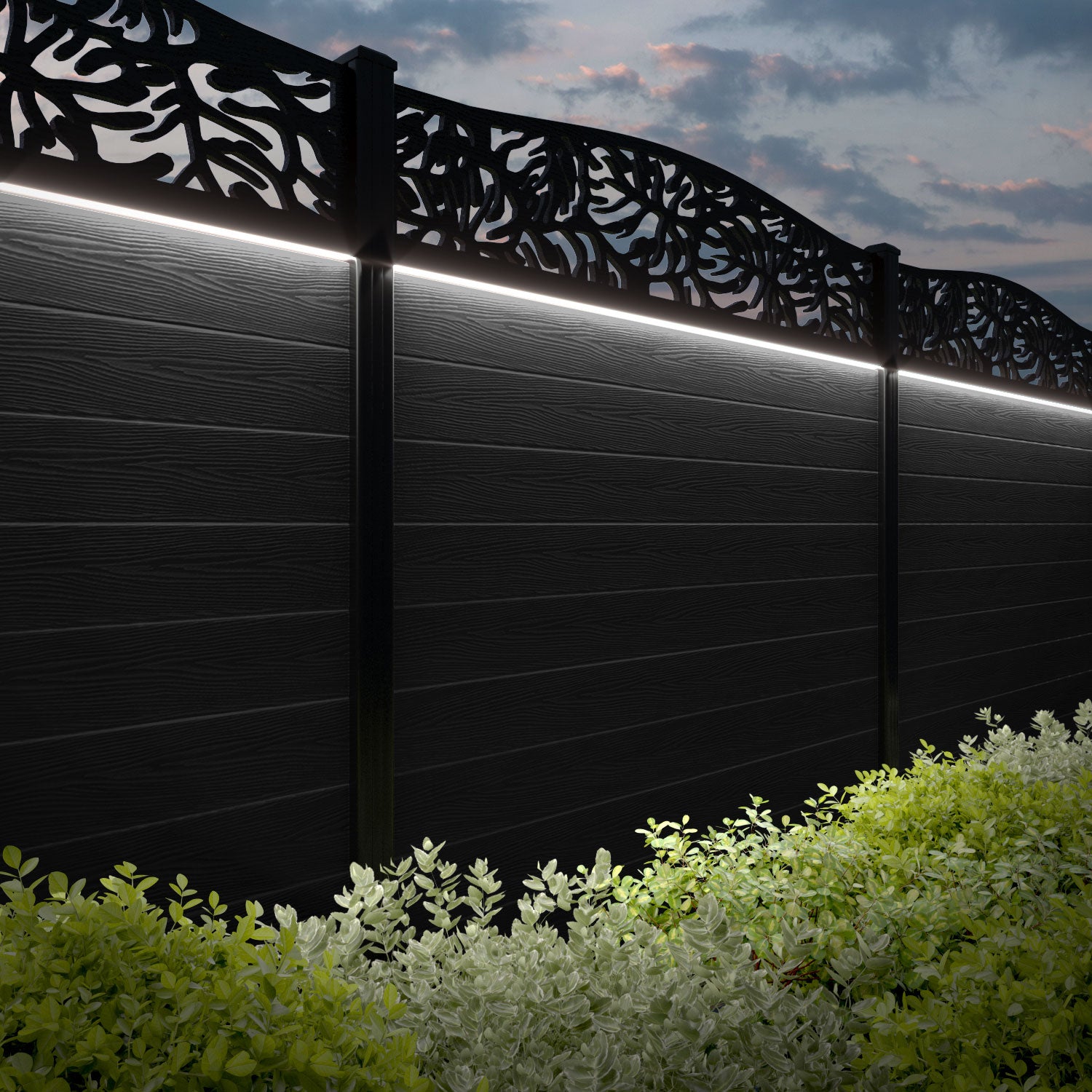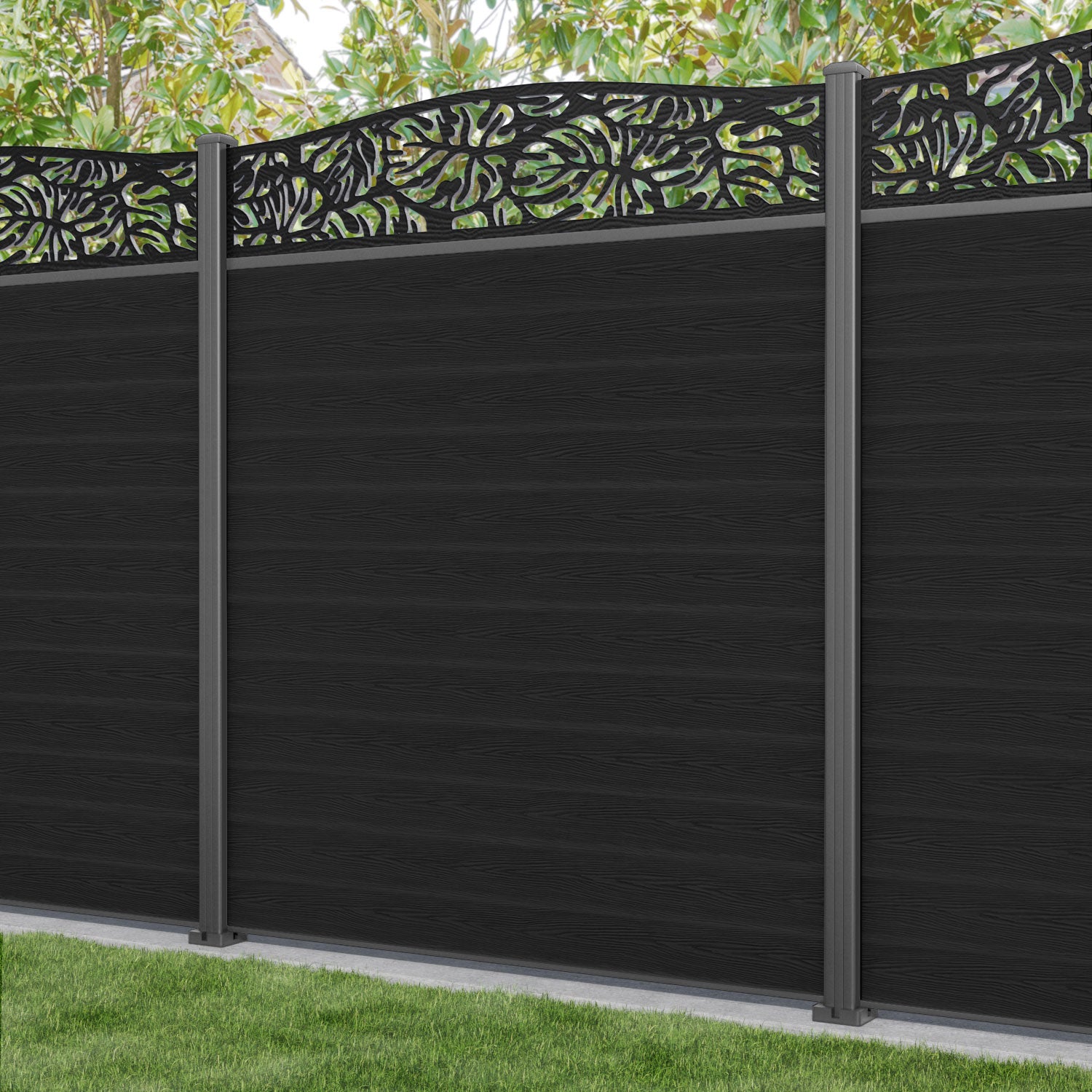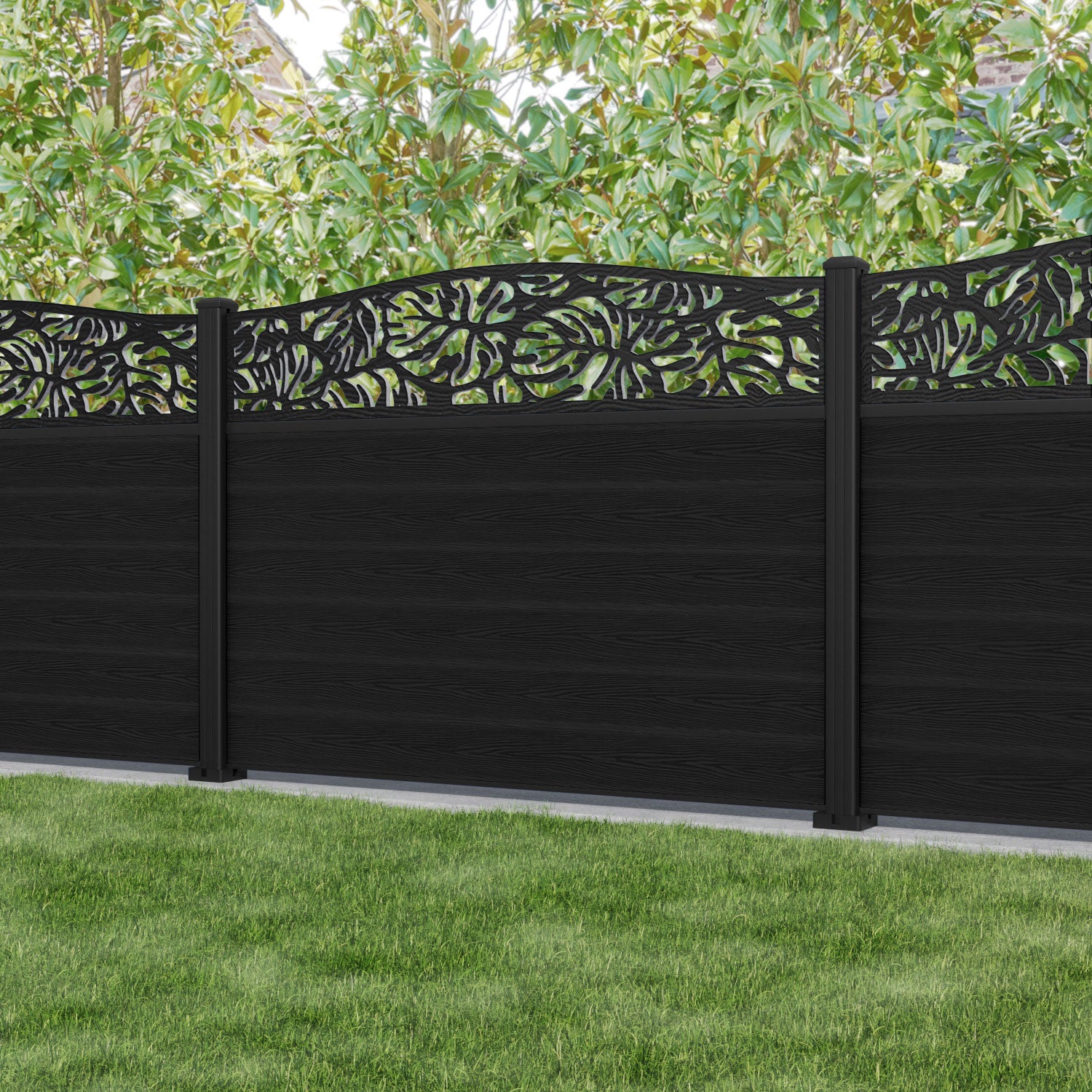 Classic Botanic Curved Top Fence Panel Black - with our aluminium posts