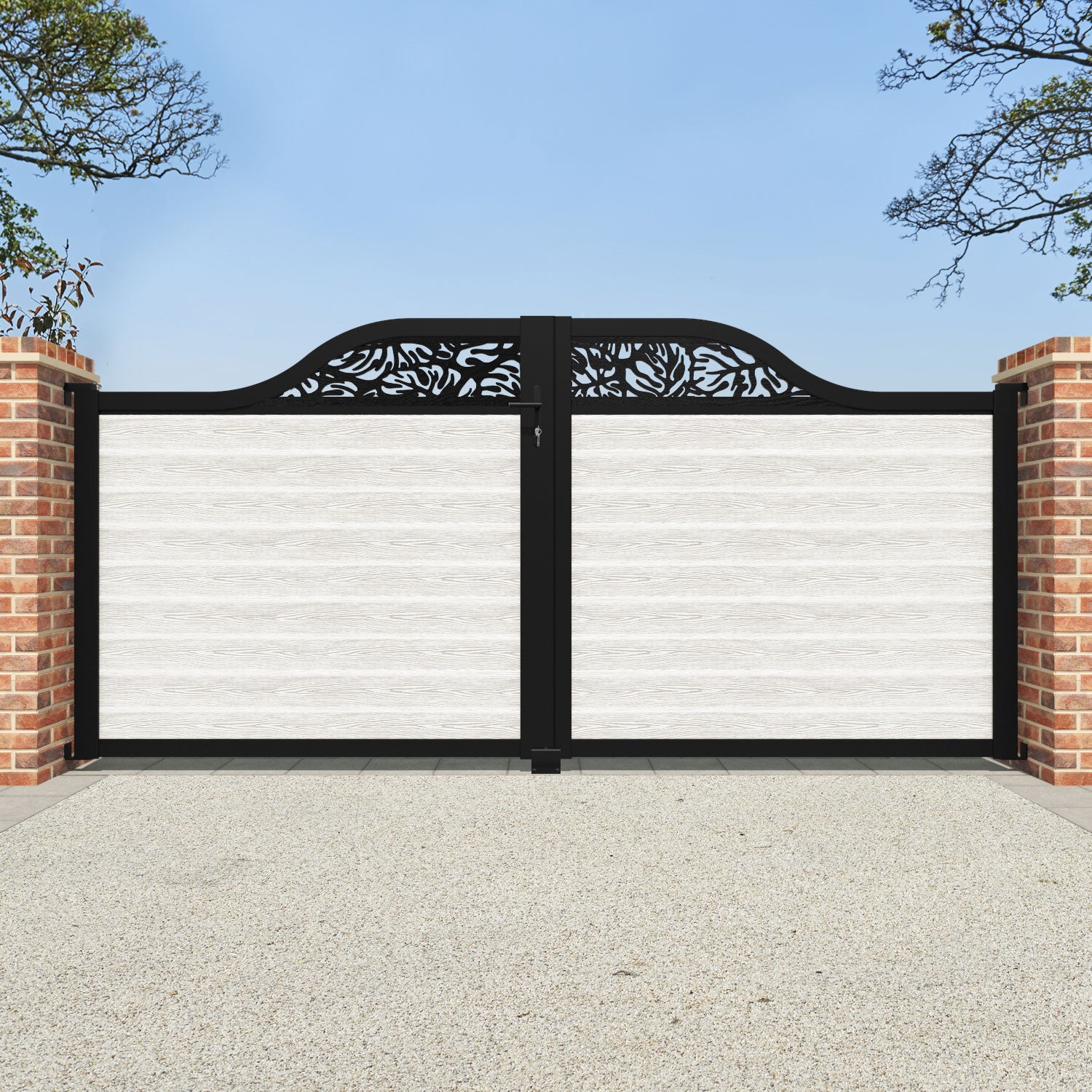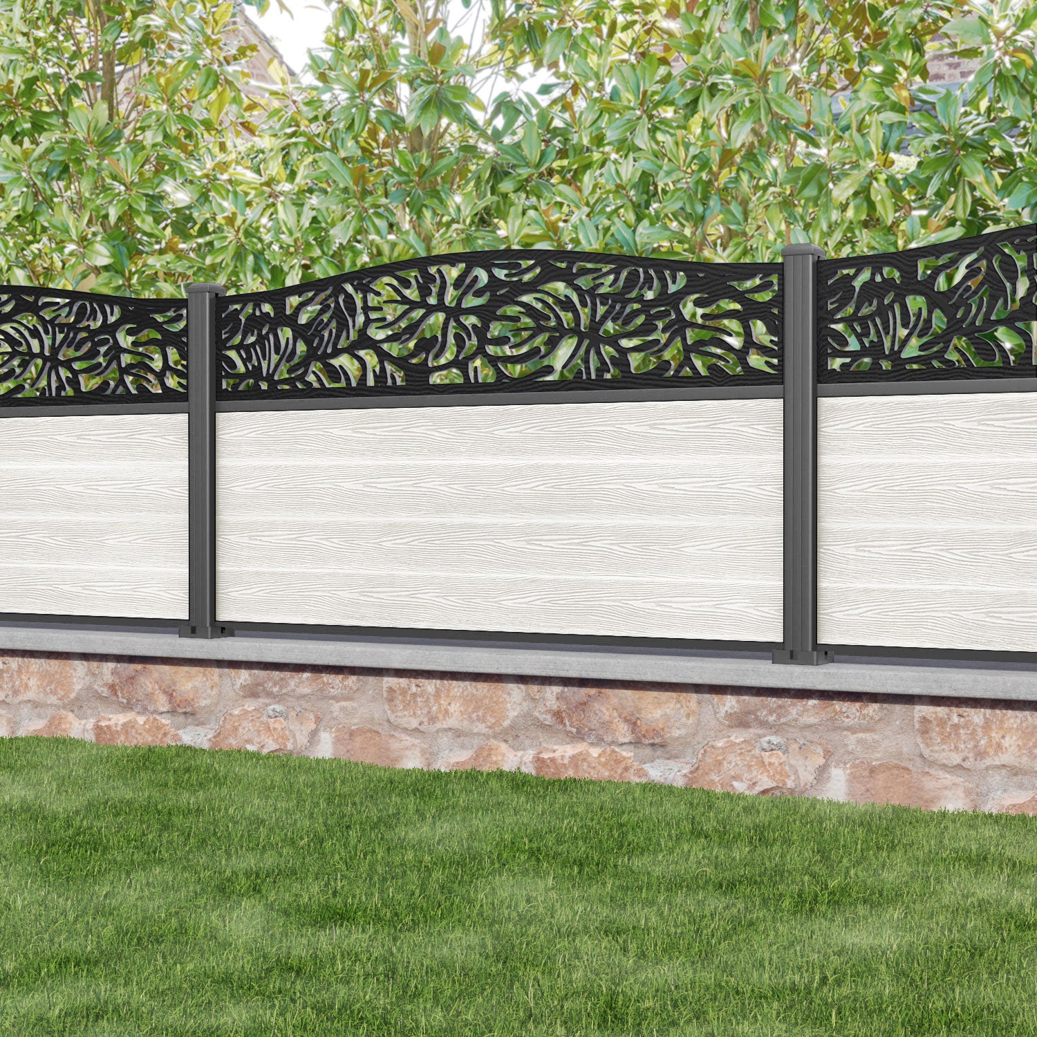 Classic Botanic Curved Top Fence Panel Light Stone - with our aluminium posts