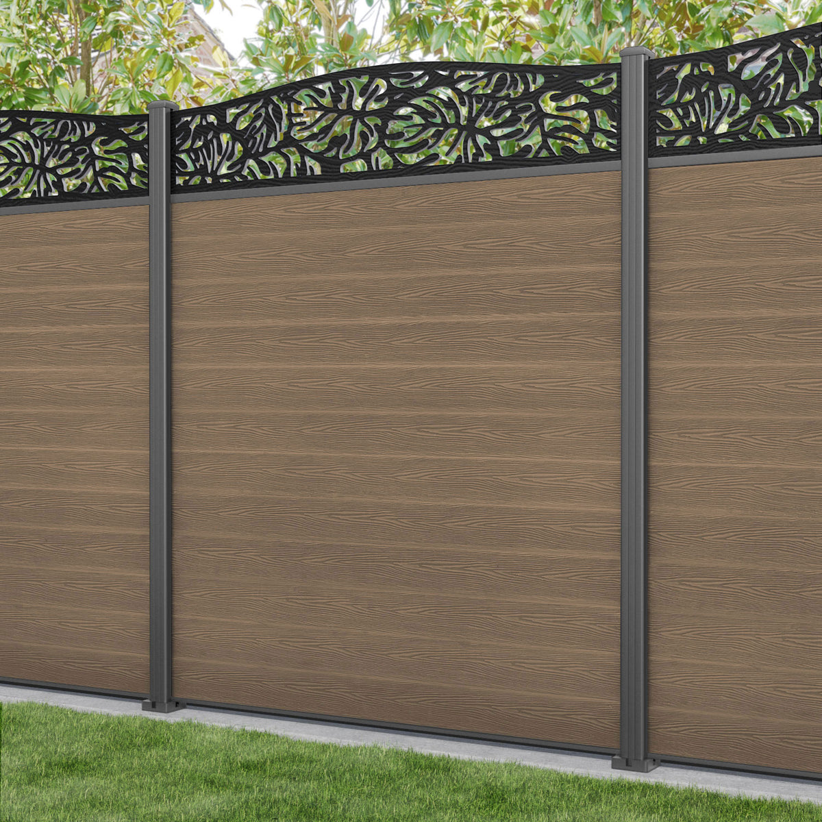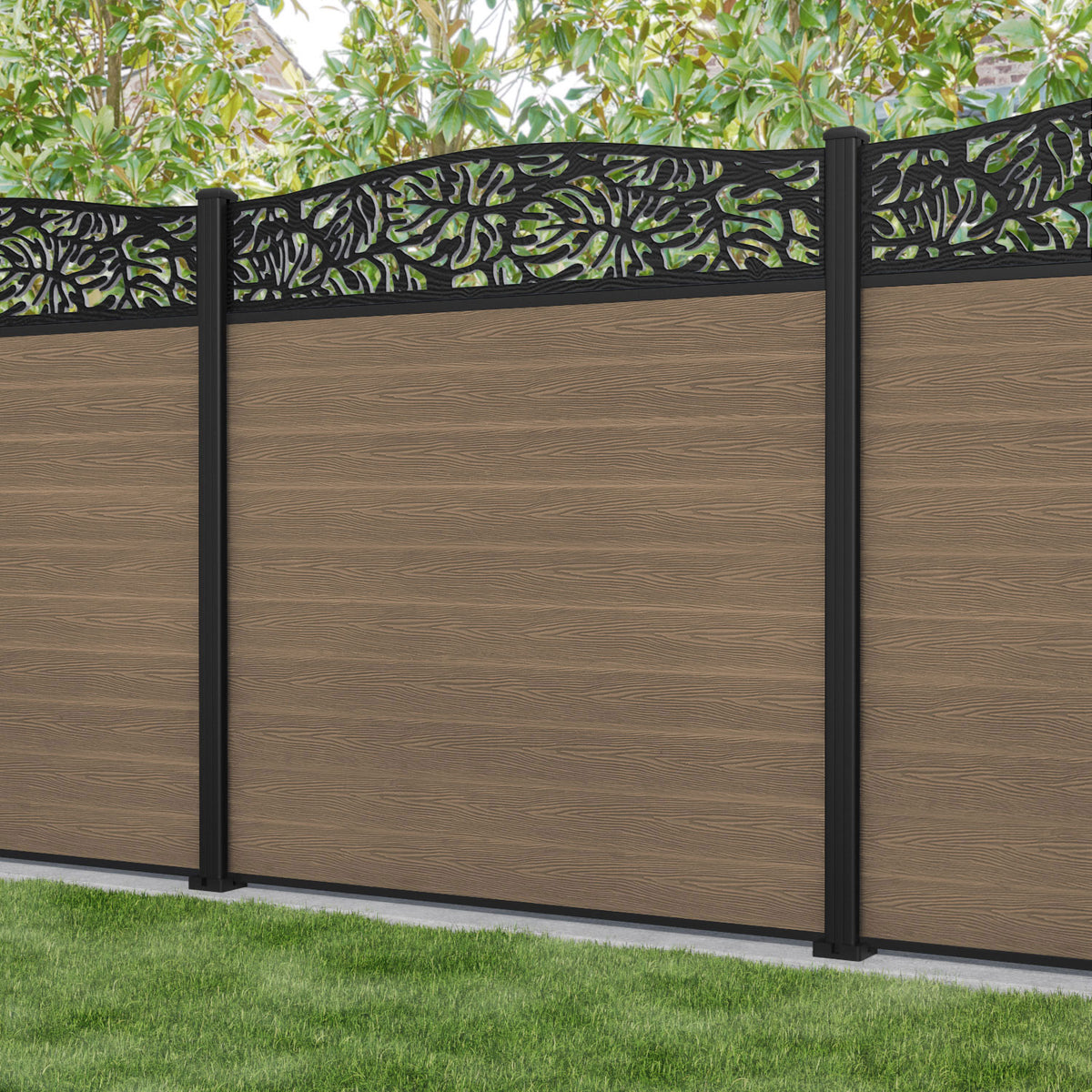 Classic Botanic Curved Top Fence Panel Teak - with our aluminium posts