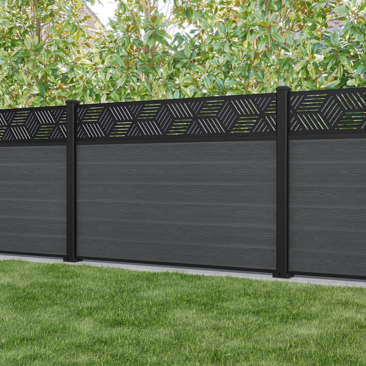 Classic Cubed Fence Panel Dark Grey - with our aluminium posts