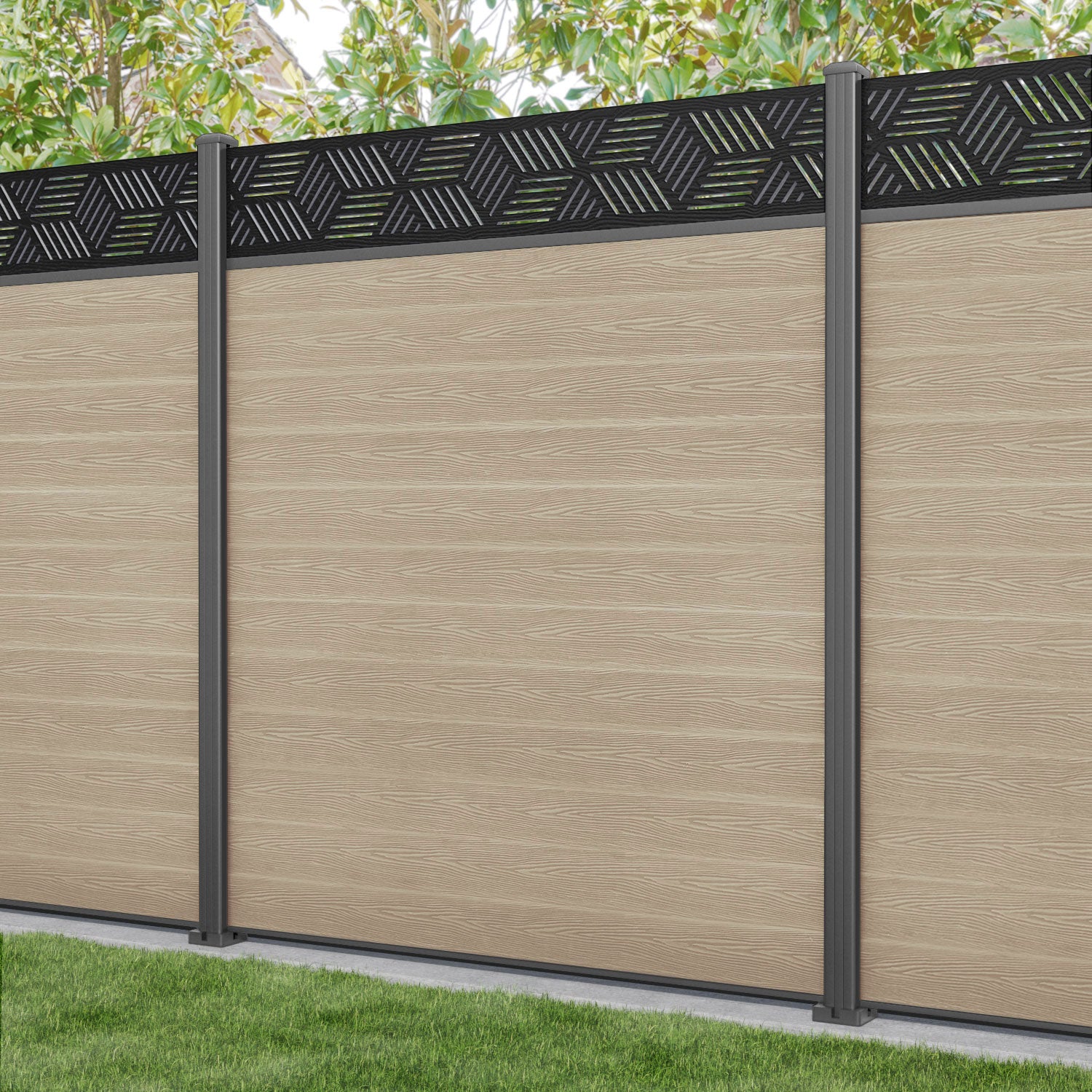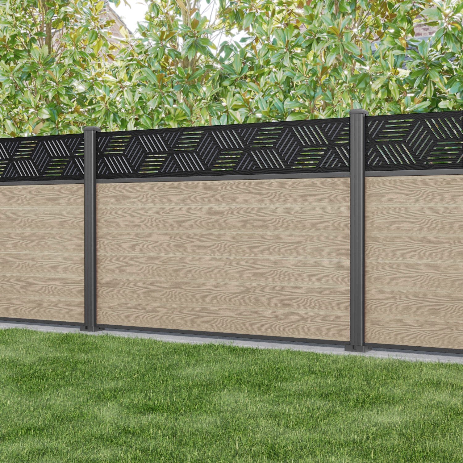 Classic Cubed Fence Panel Light Oak - with our aluminium posts