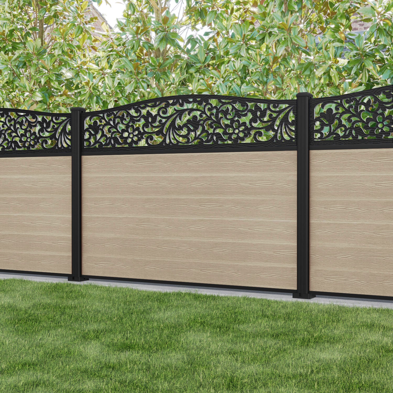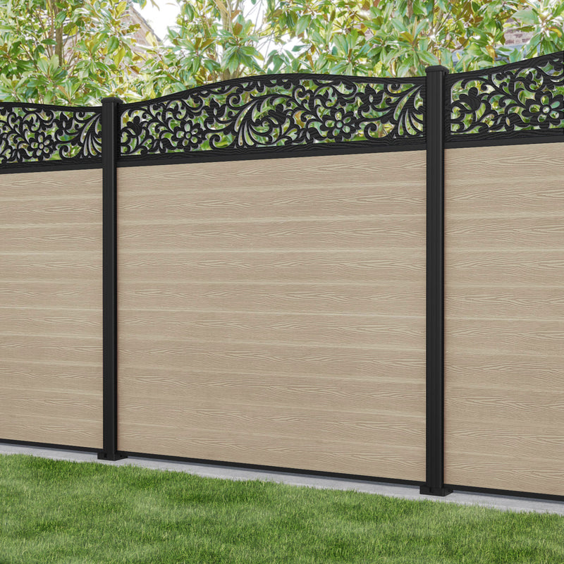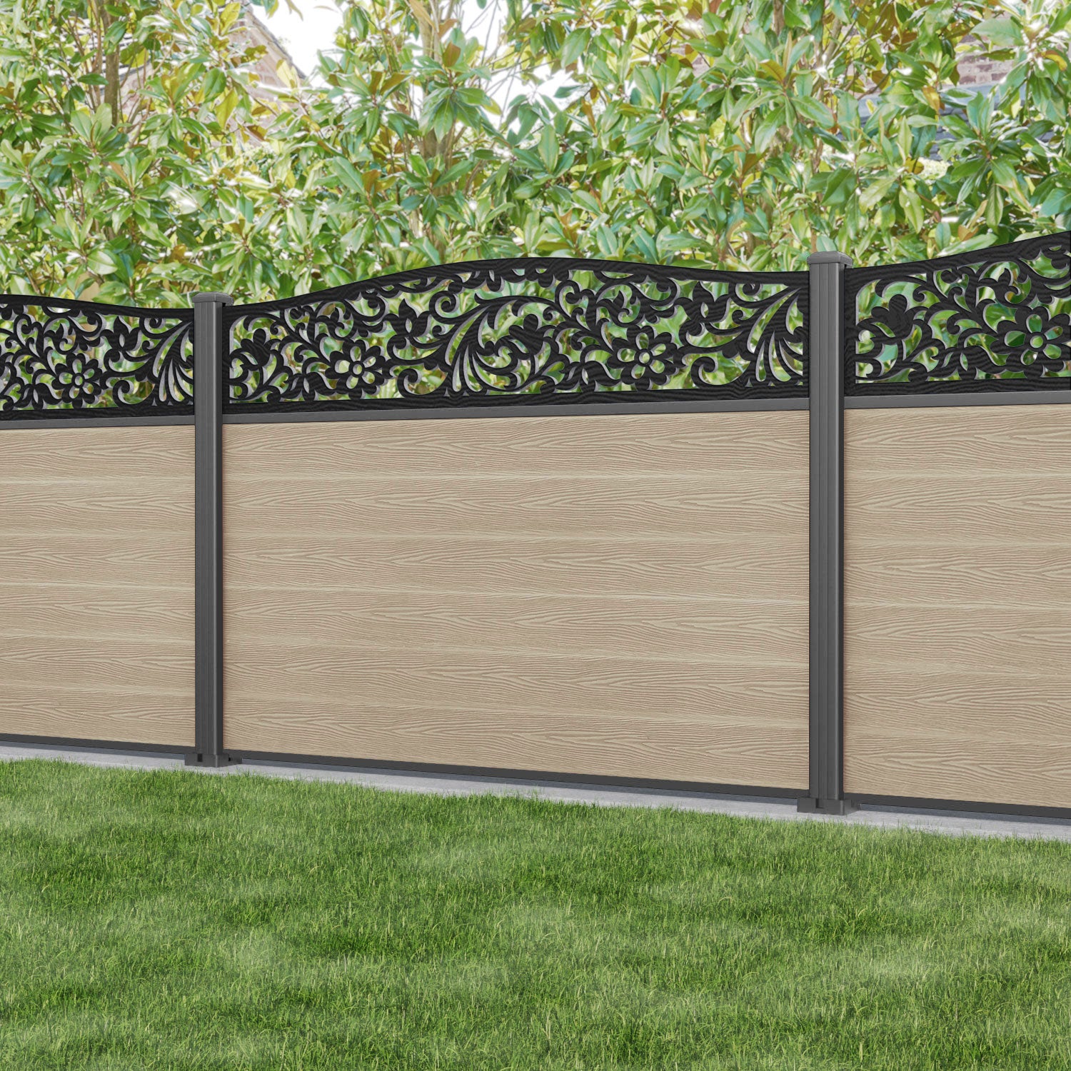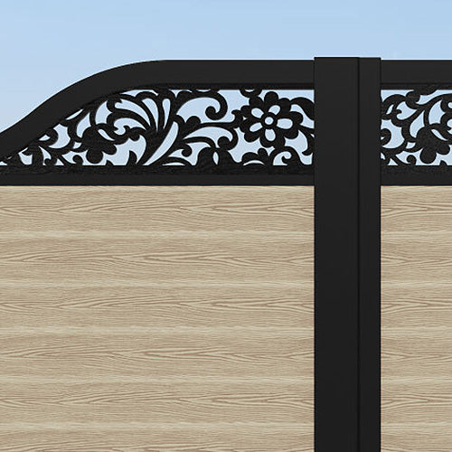 Classic Eden Curved Top Fence Panel Light Oak - with our aluminium posts