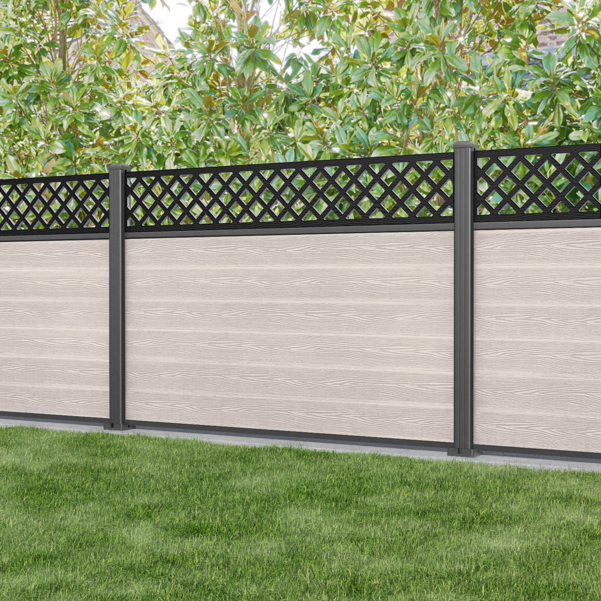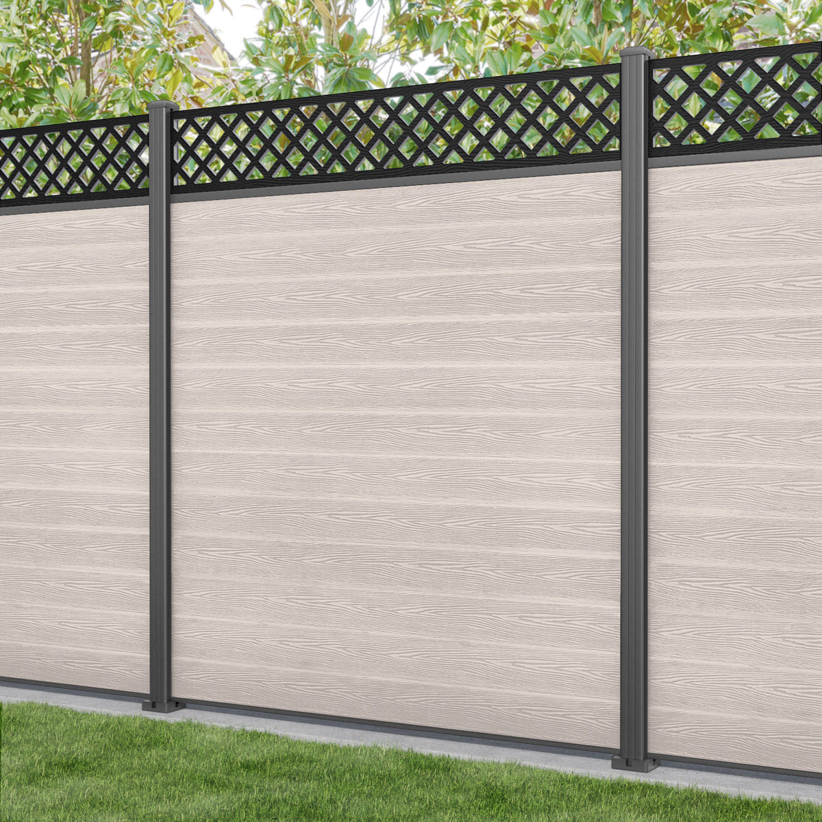 Classic Hive Fence Panel Mid Stone - with our aluminium posts