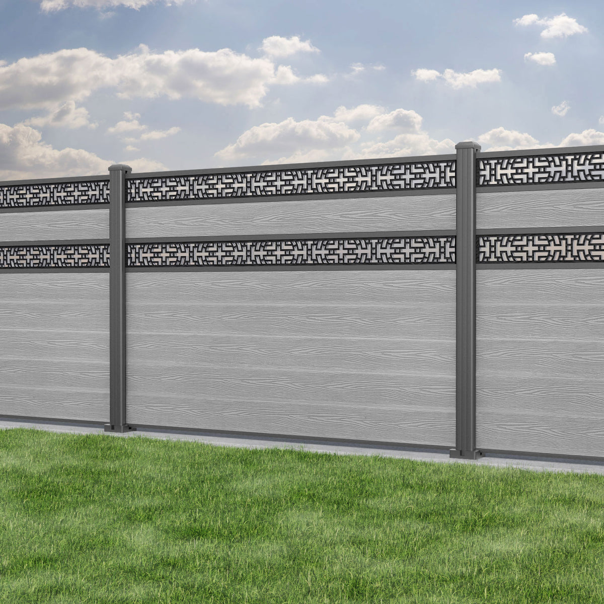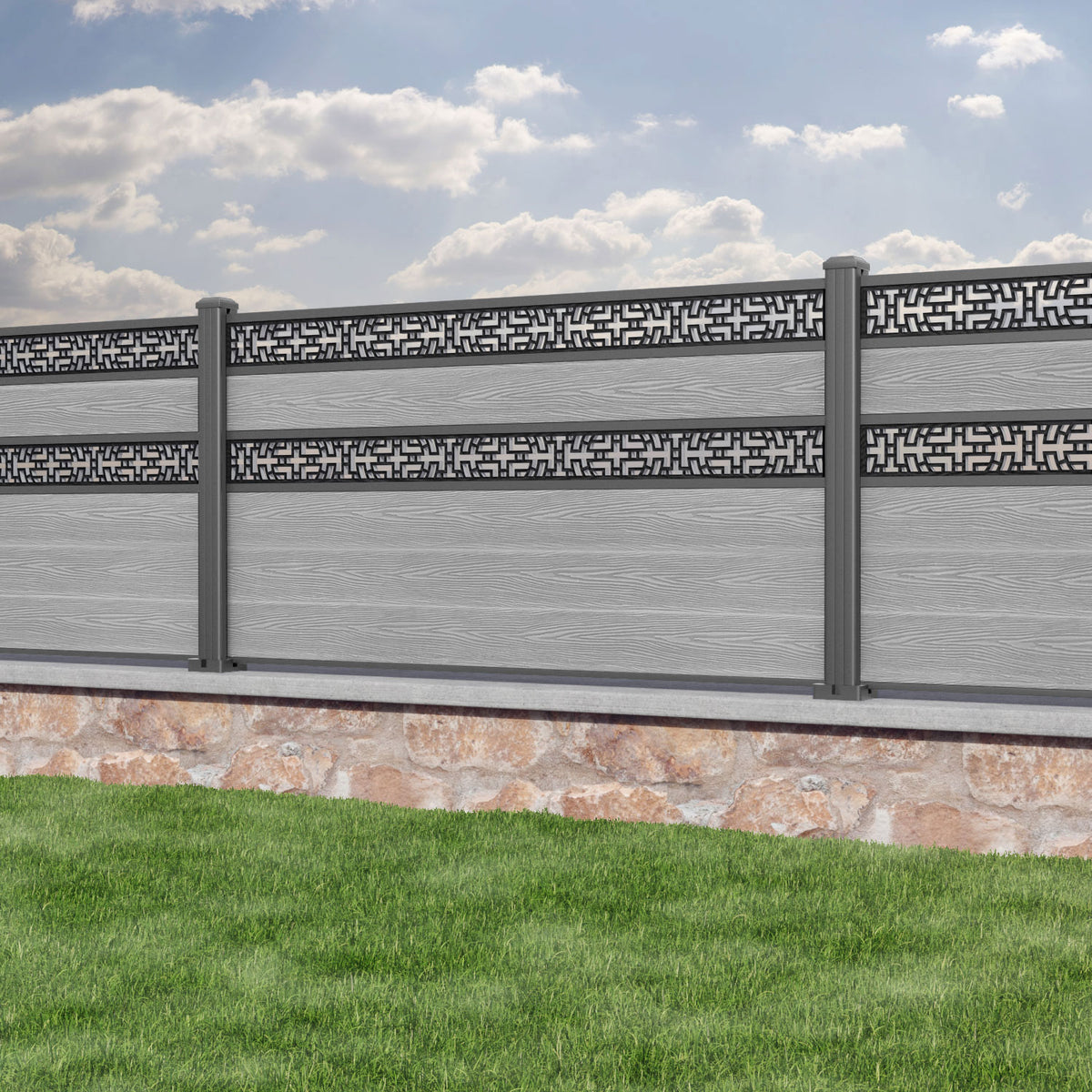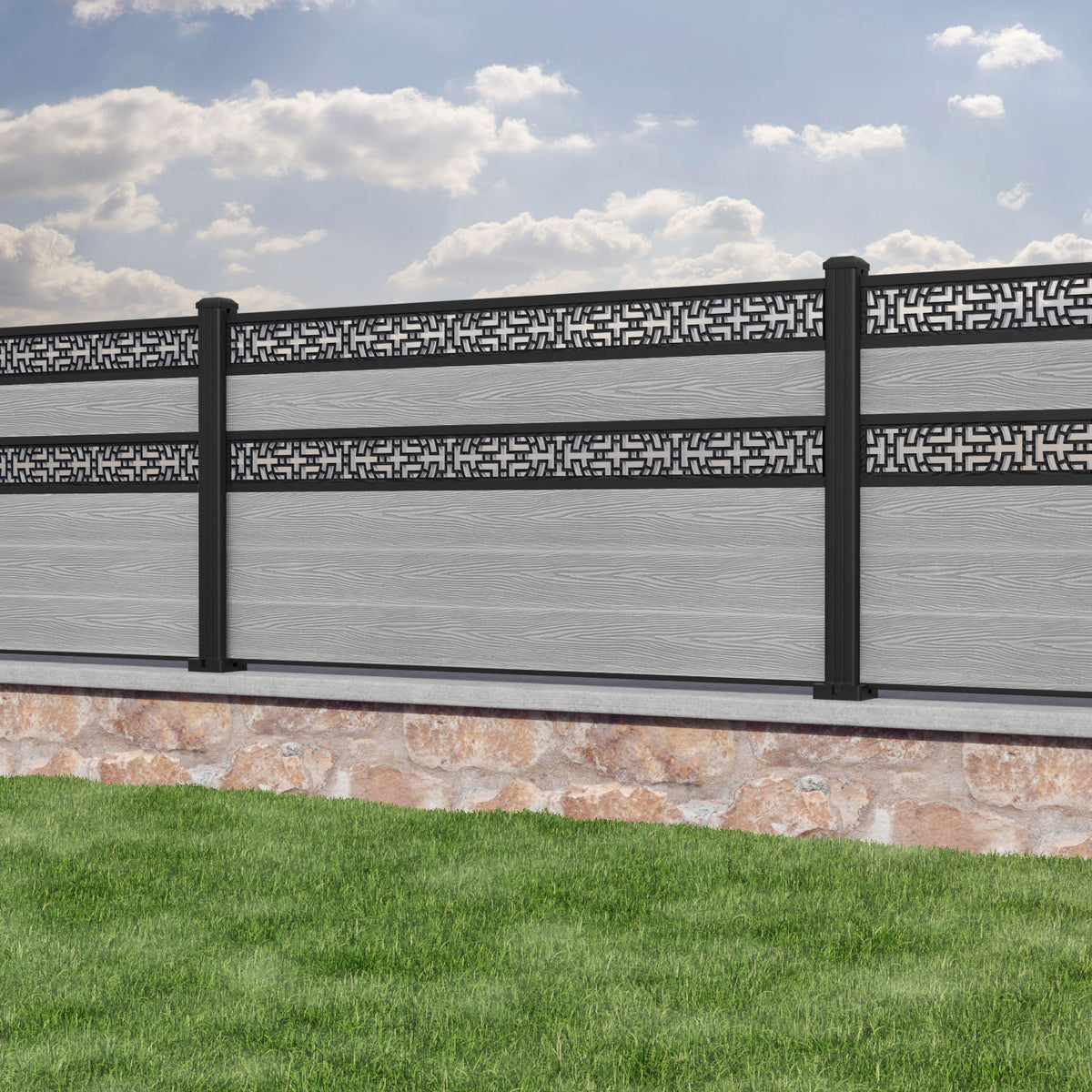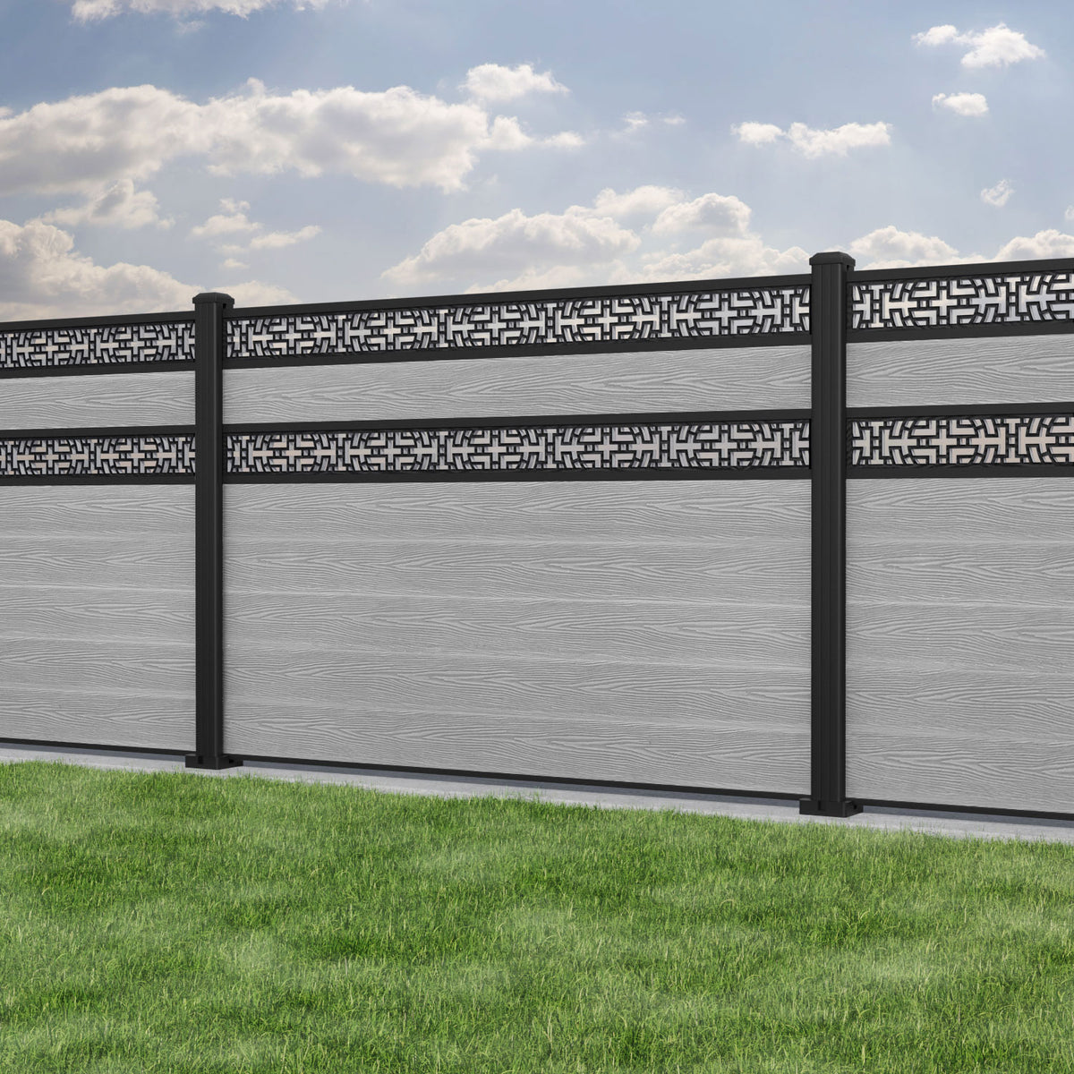 Classic Kumo Split Screen Fence Panel Light Grey - with our aluminium posts