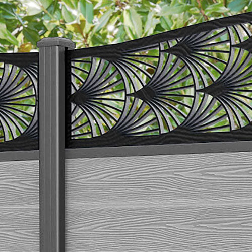 Classic Laurel Curved Top Fence Panel Light Grey - with our aluminium posts