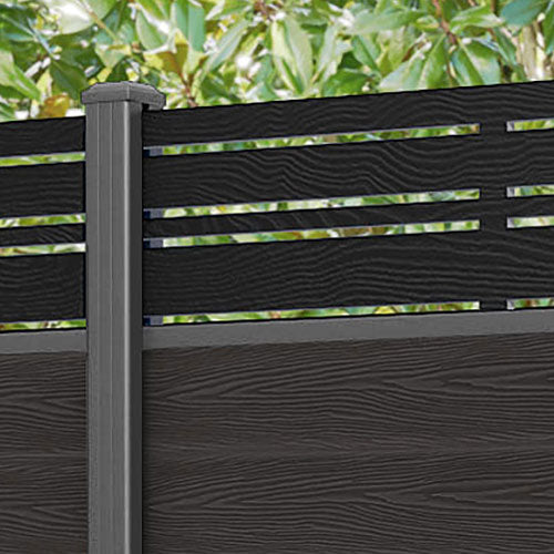 Classic Linea Fence Panel Dark Oak - with our aluminium posts