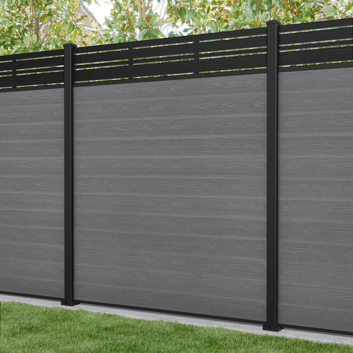 Classic Linea Fence Panel Mid Grey - with our aluminium posts