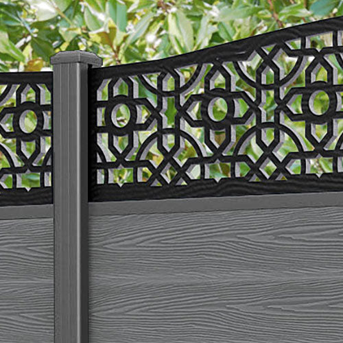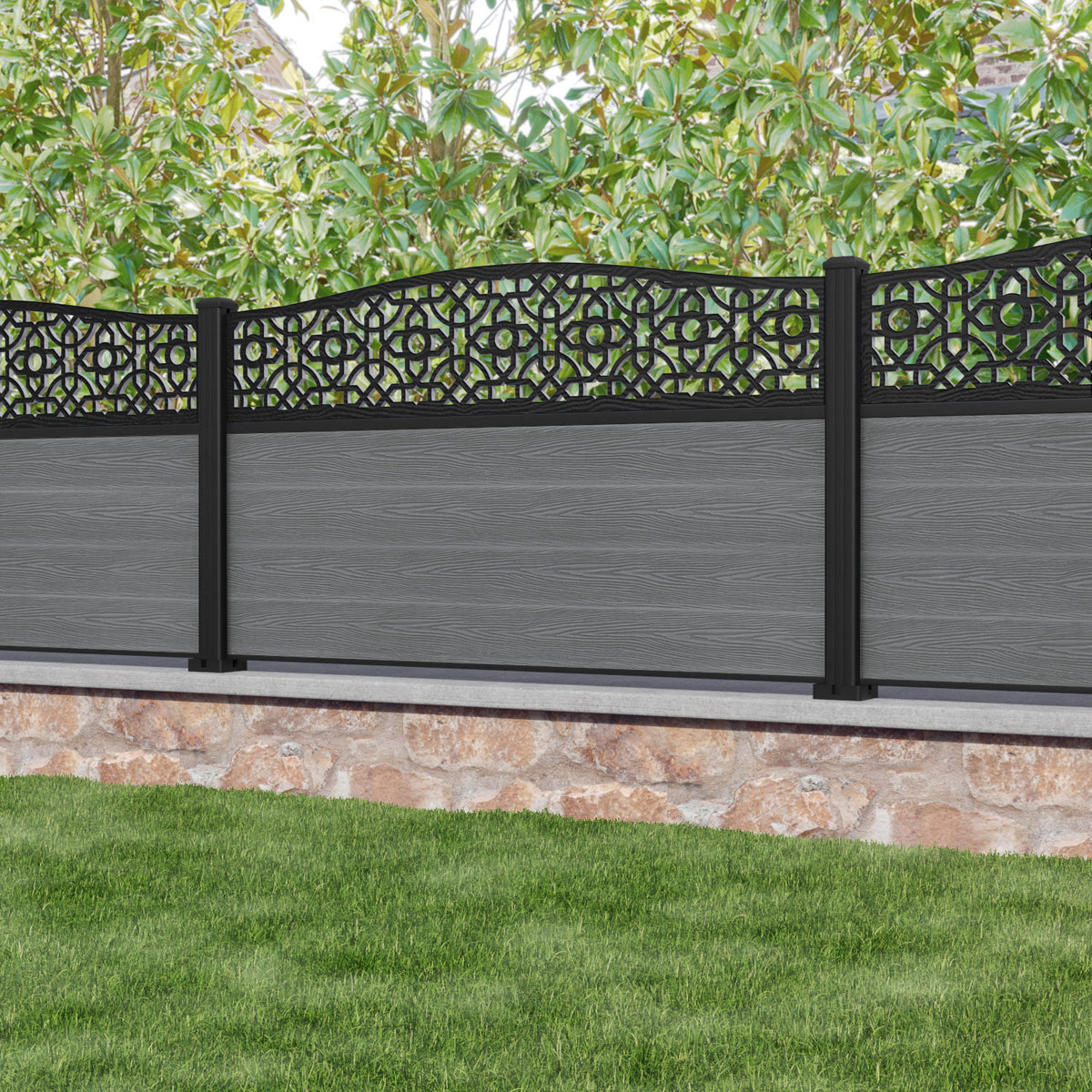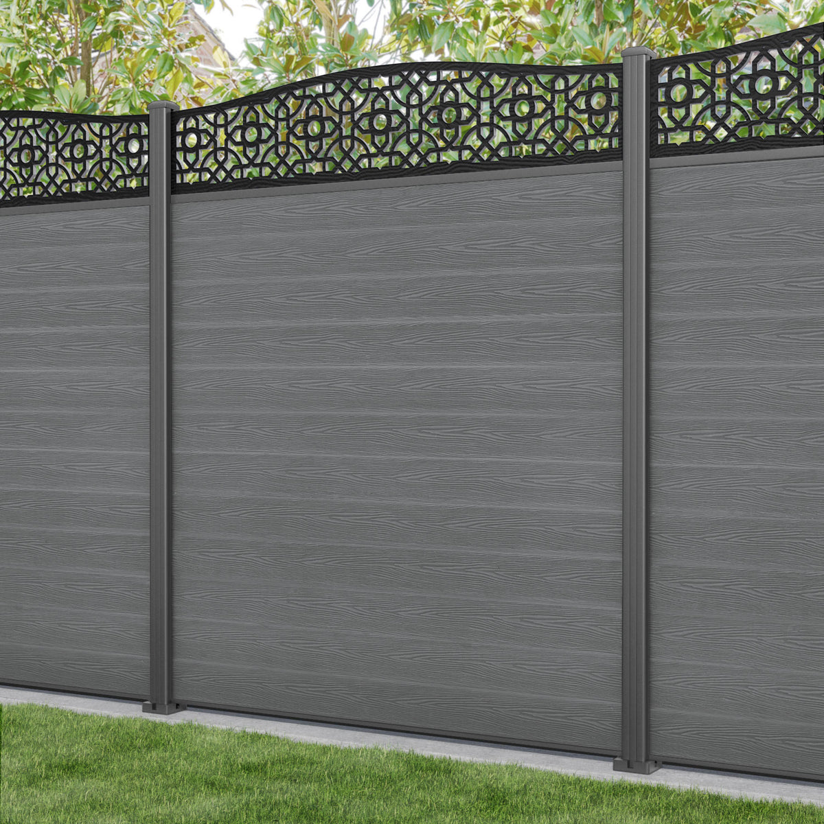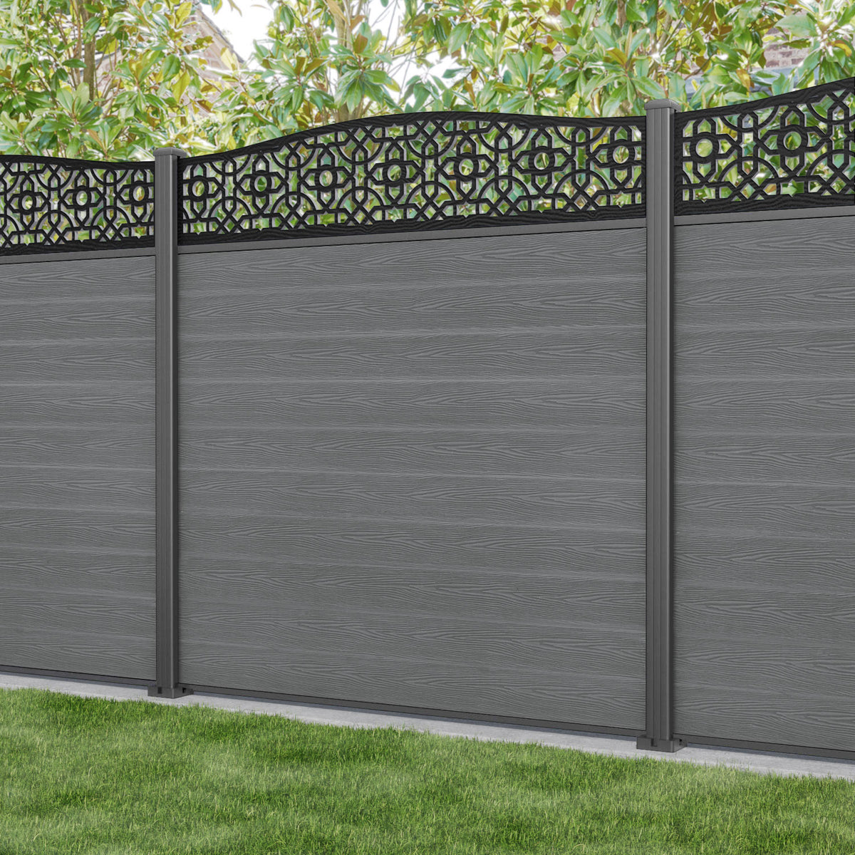 Classic Nabila Curved Top Fence Panel Mid Grey - with our aluminium posts