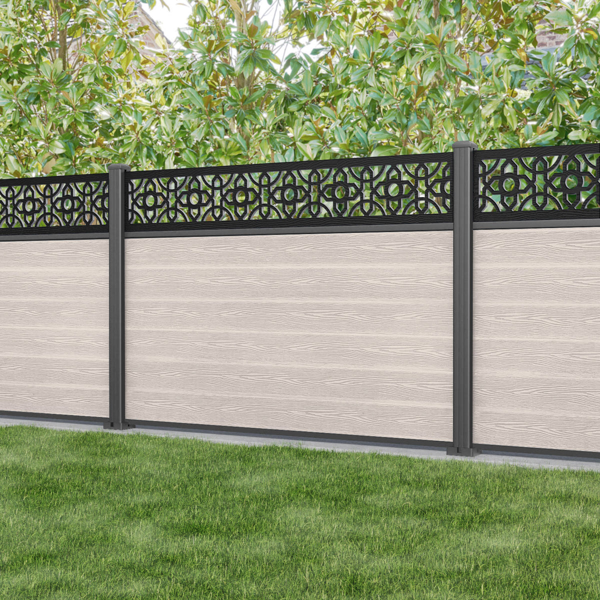 Classic Nabila Fence Panel Mid Stone - with our aluminium posts