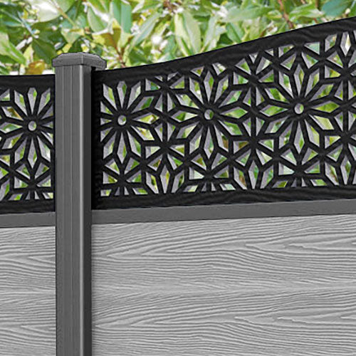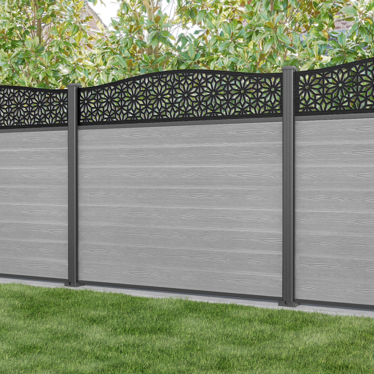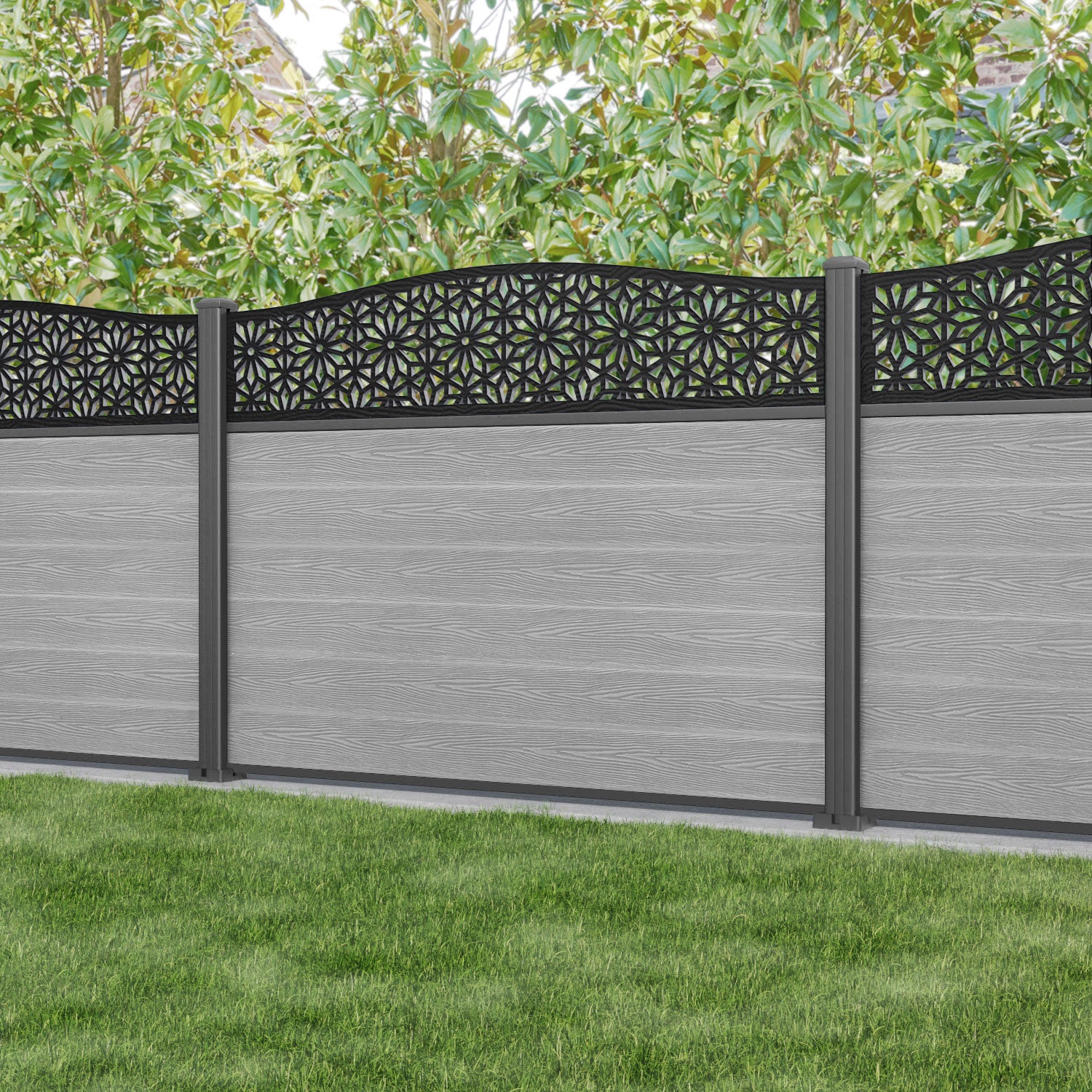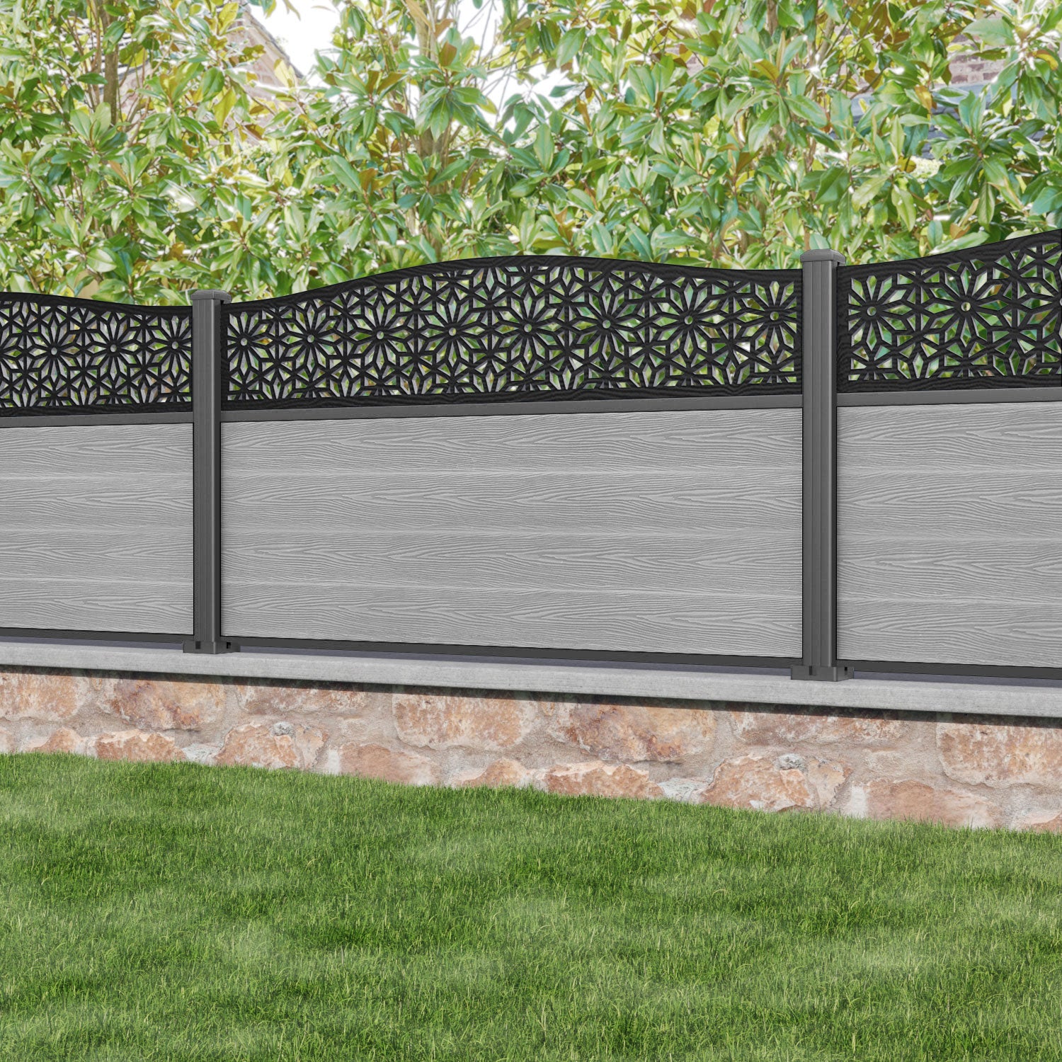 Classic Narwa Curved Top Fence Panel Light Grey - with our aluminium posts