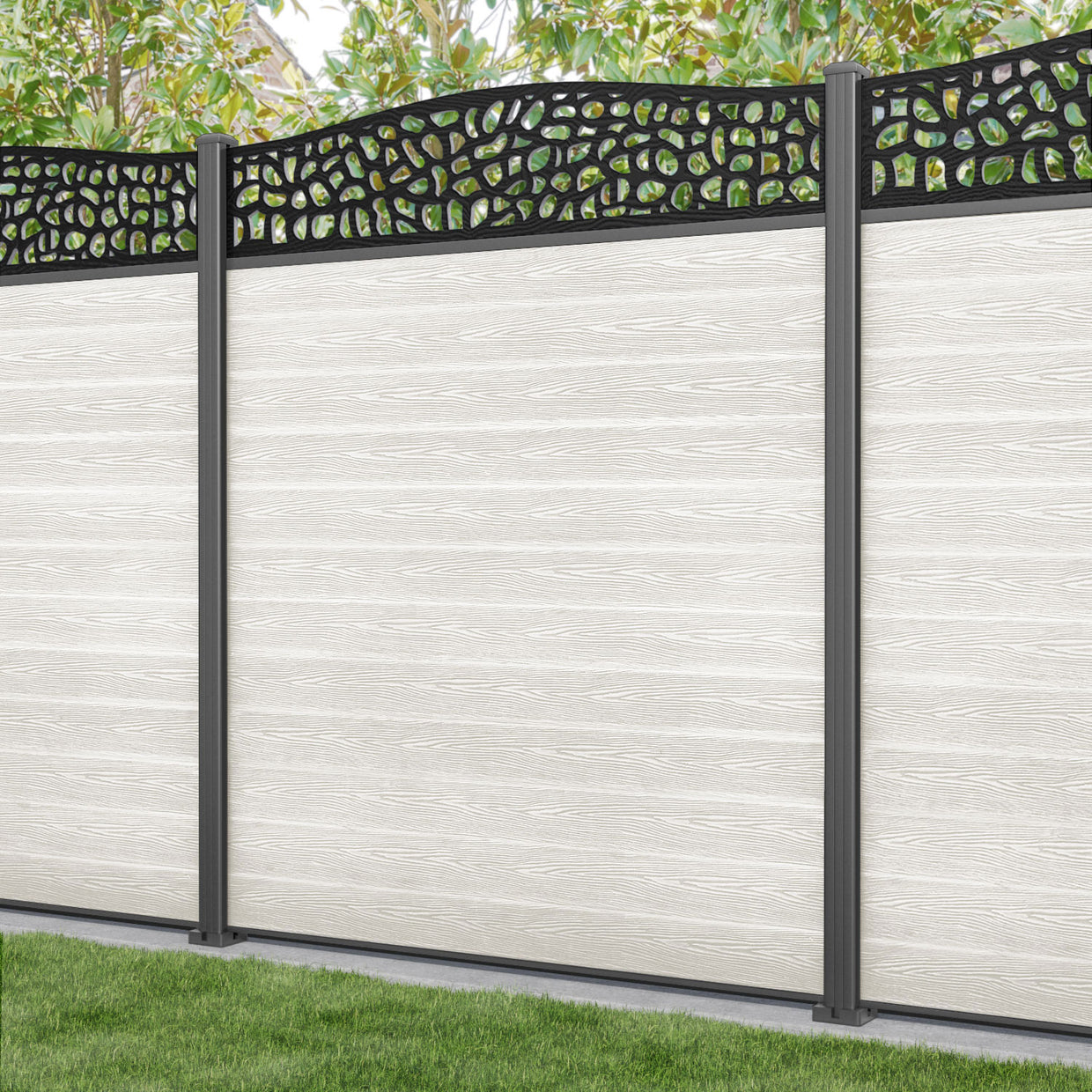 Classic Pebble Curved Top Fence Panel Light Stone - with our aluminium posts