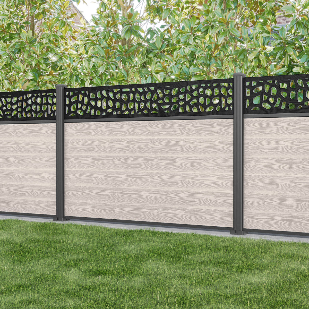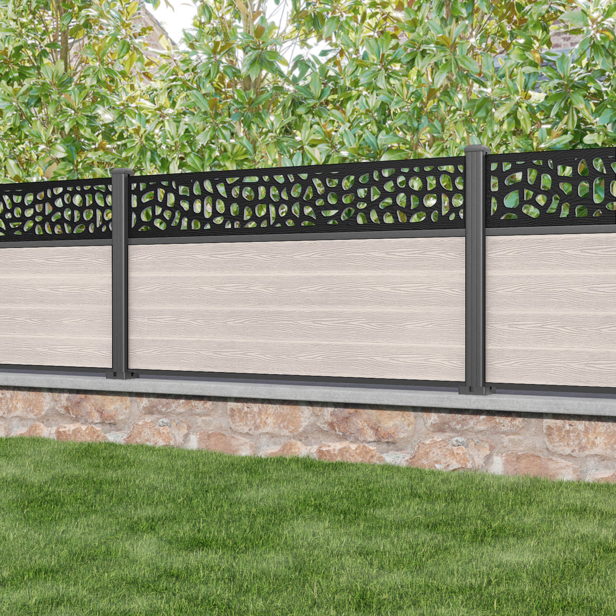 Classic Pebble Fence Panel Mid Stone - with our aluminium posts
