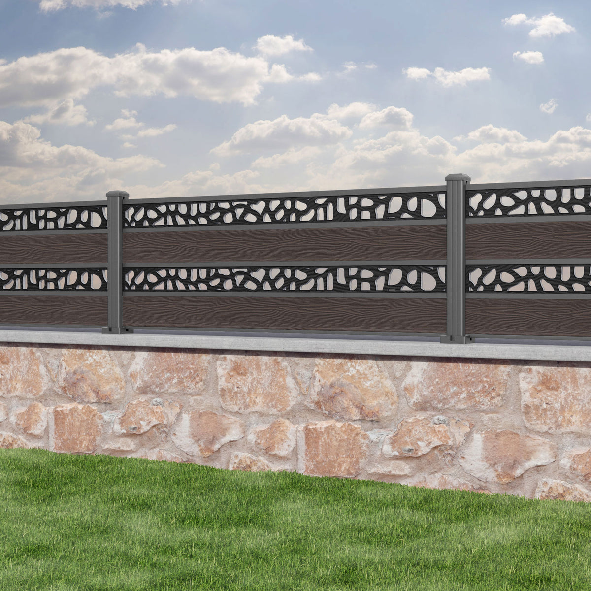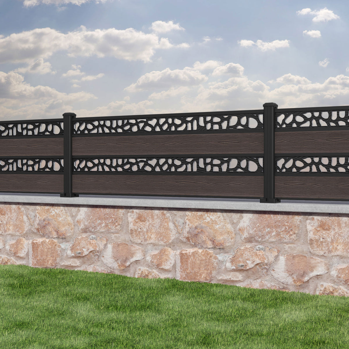 Classic Pebble Split Screen Fence Panel Mid Brown - with our aluminium posts