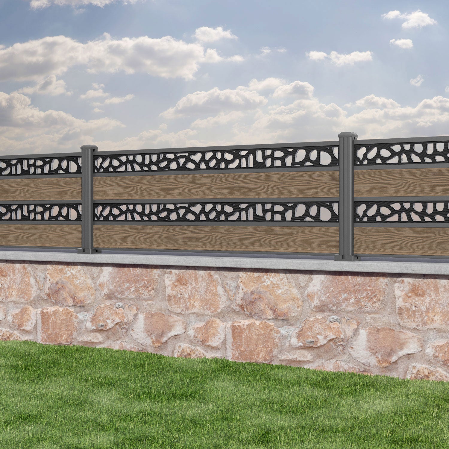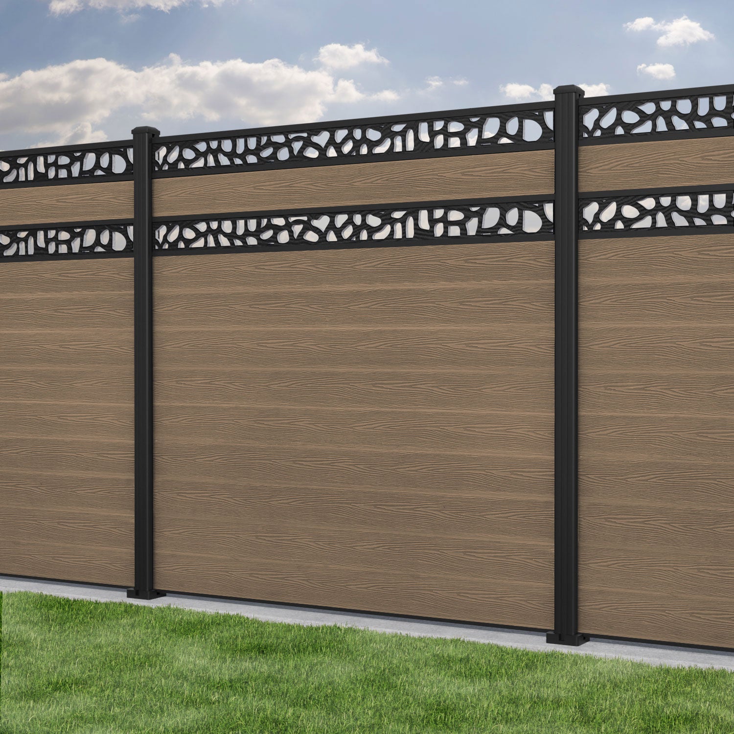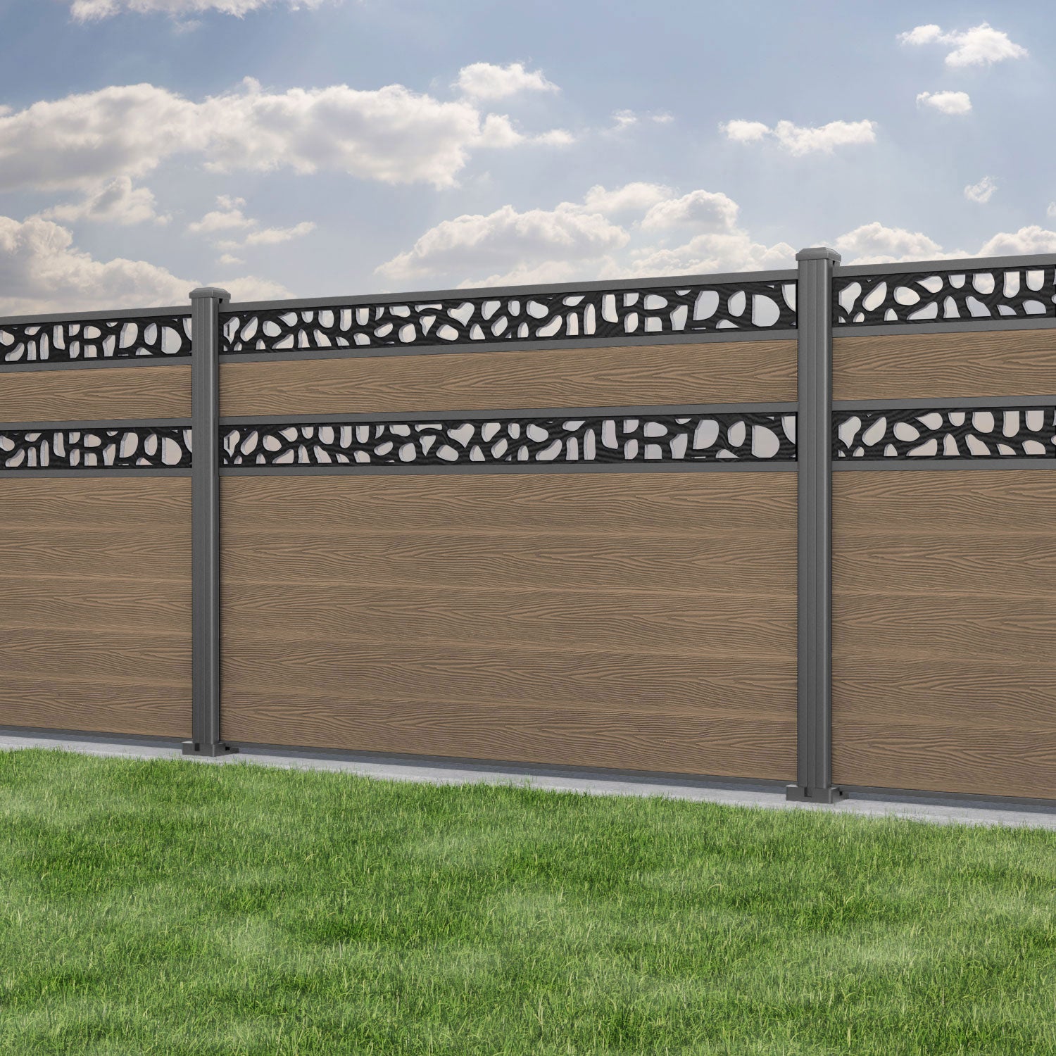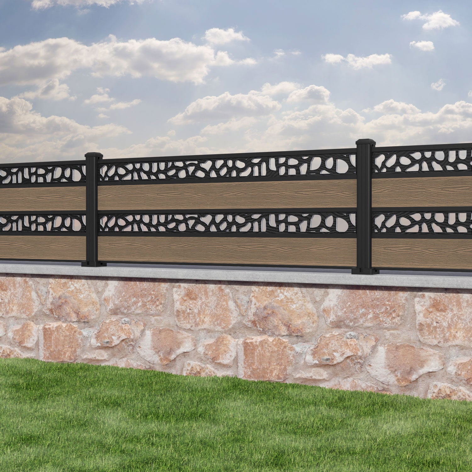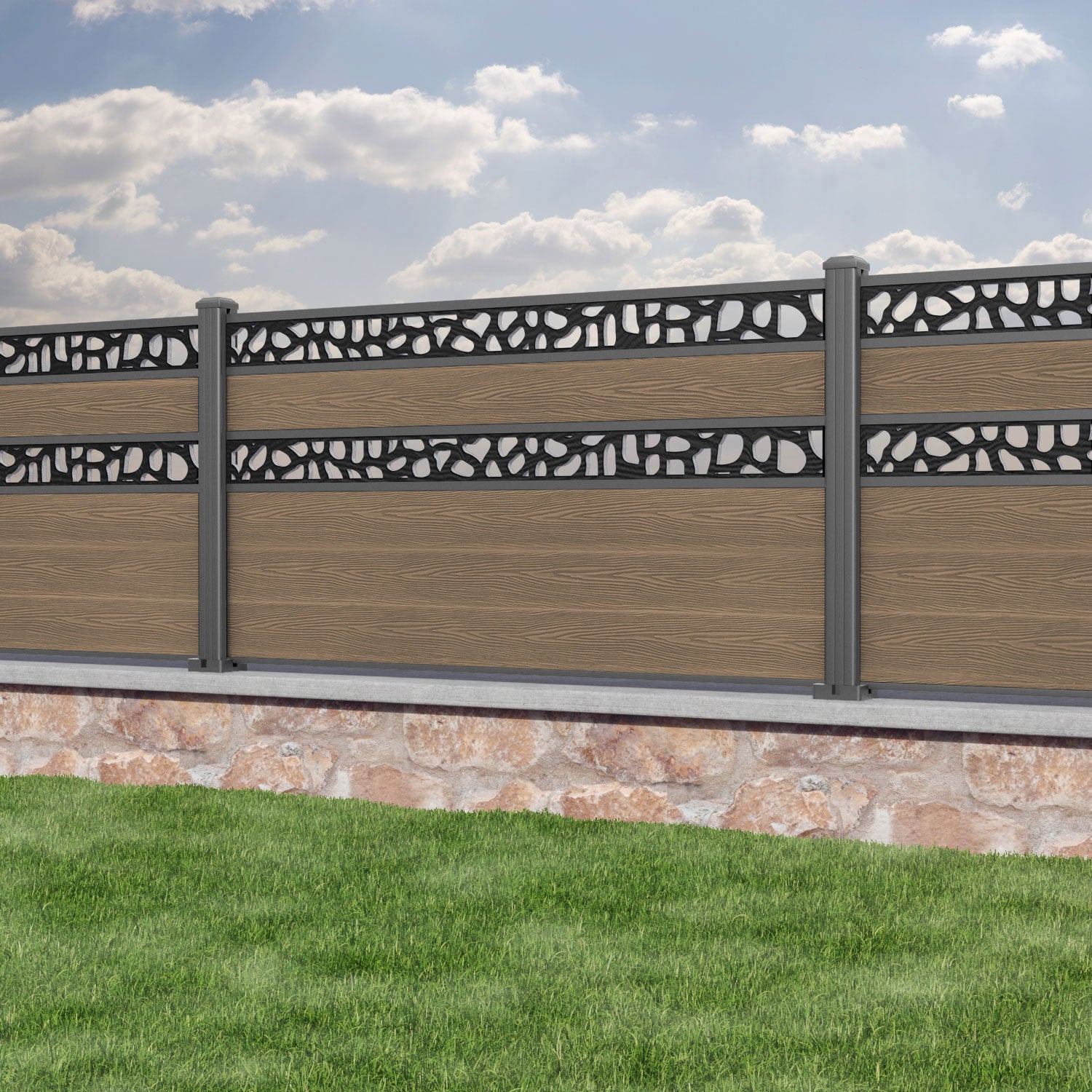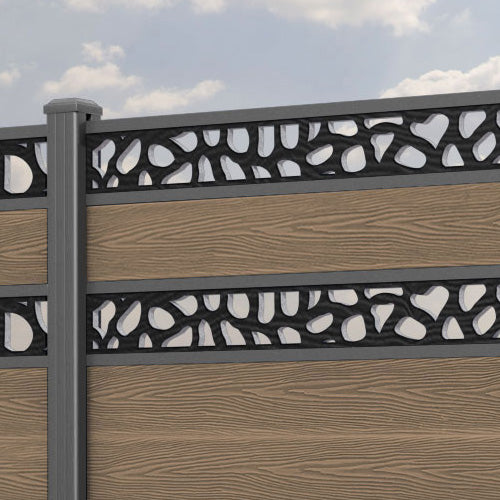 Classic Pebble Split Screen Fence Panel Teak - with our aluminium posts