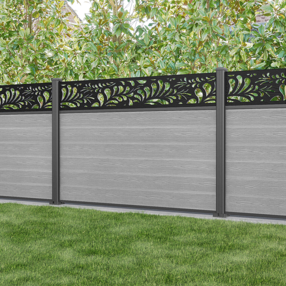 Classic Petal Fence Panel Light Grey - with our aluminium posts