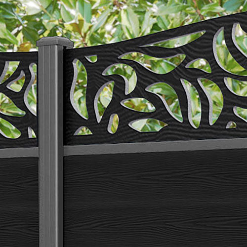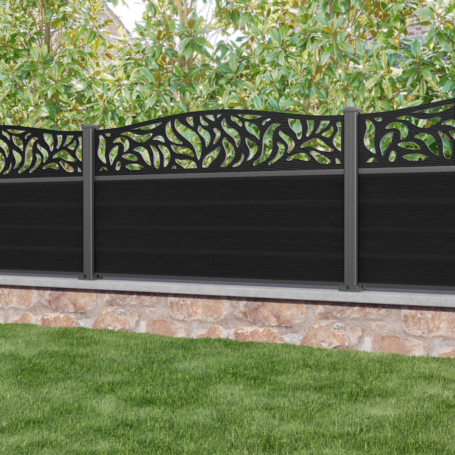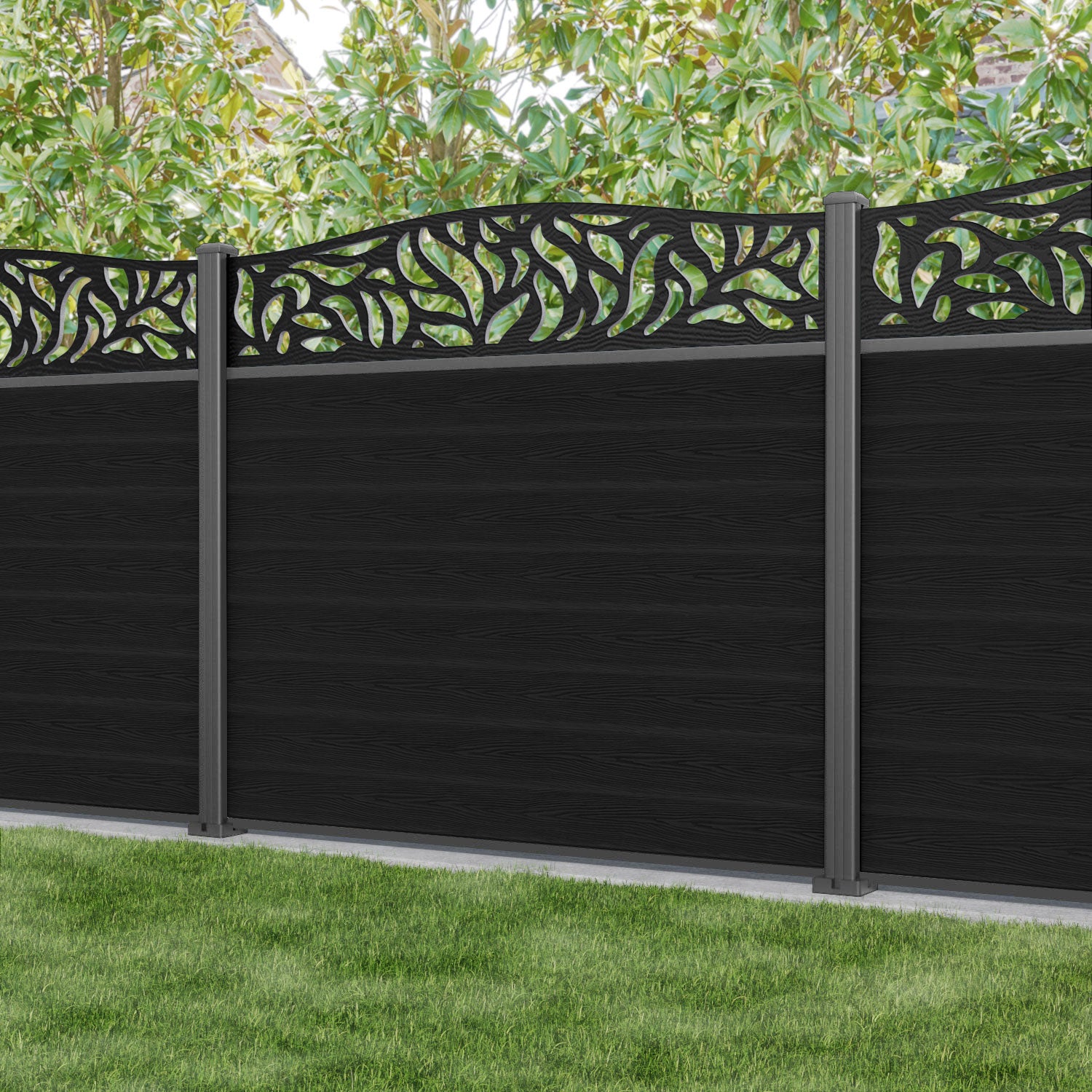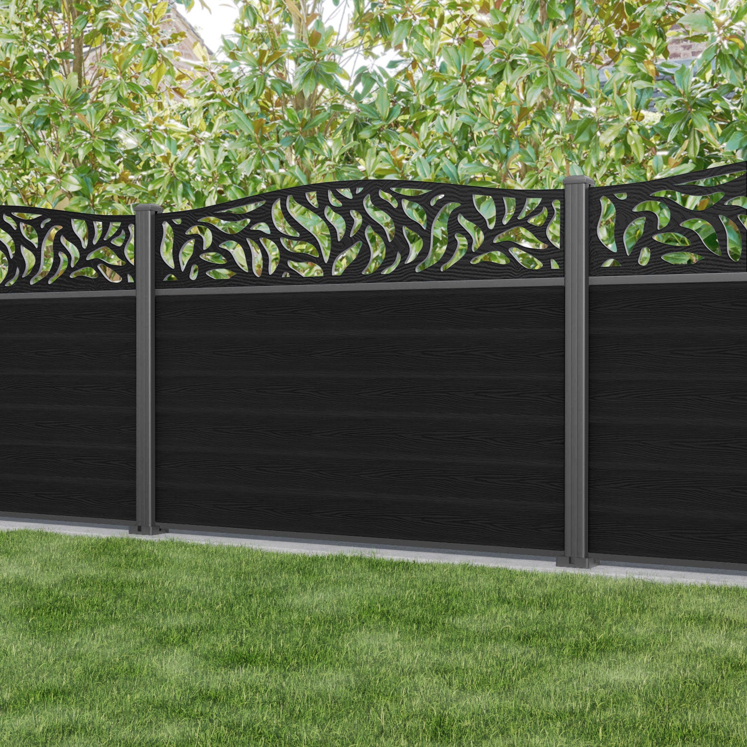 Classic Plume Curved Top Fence Panel Black - with our aluminium posts