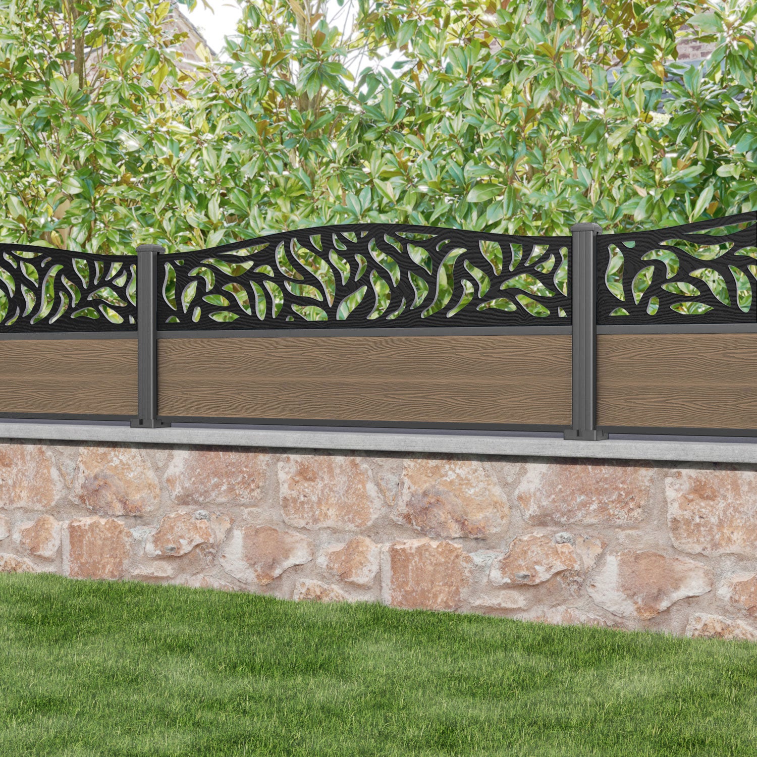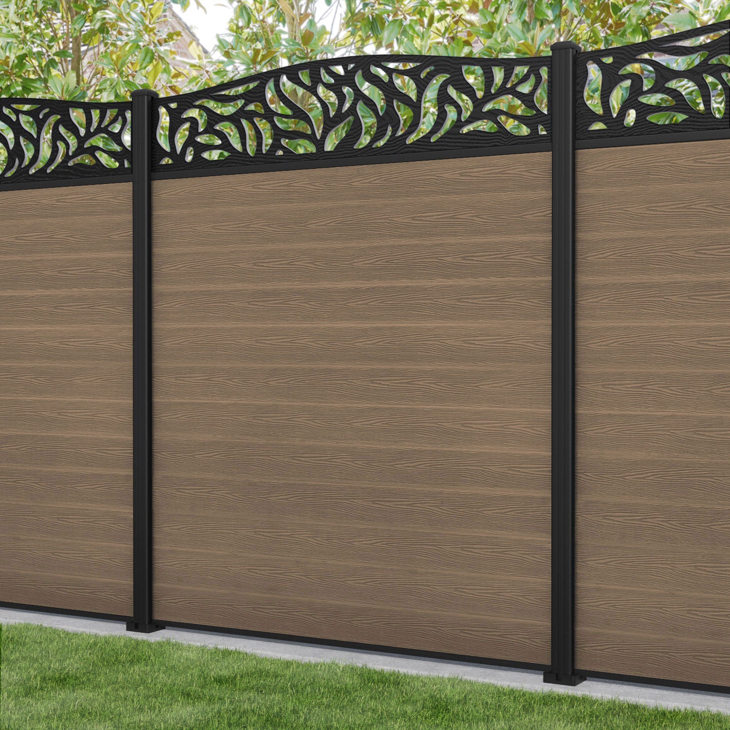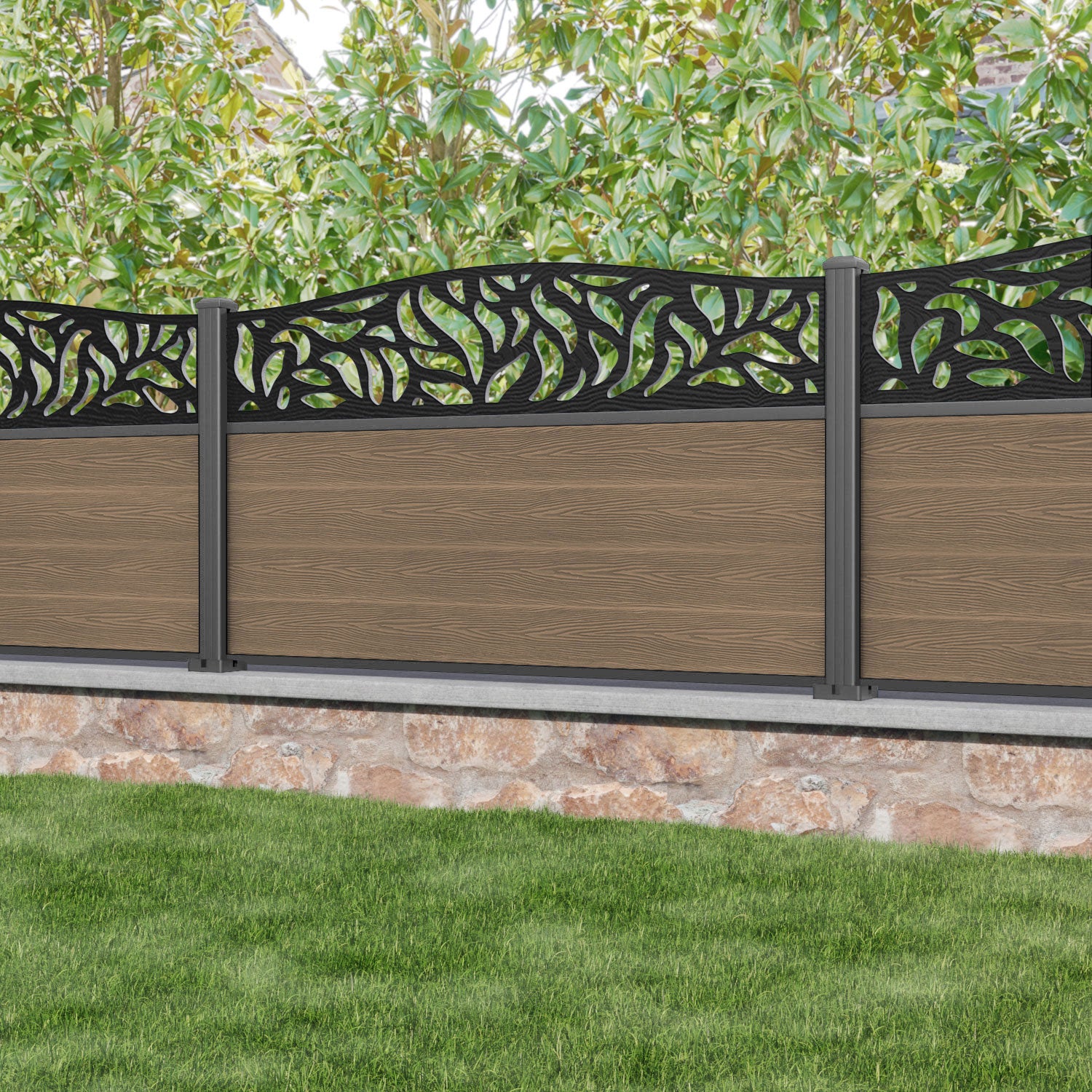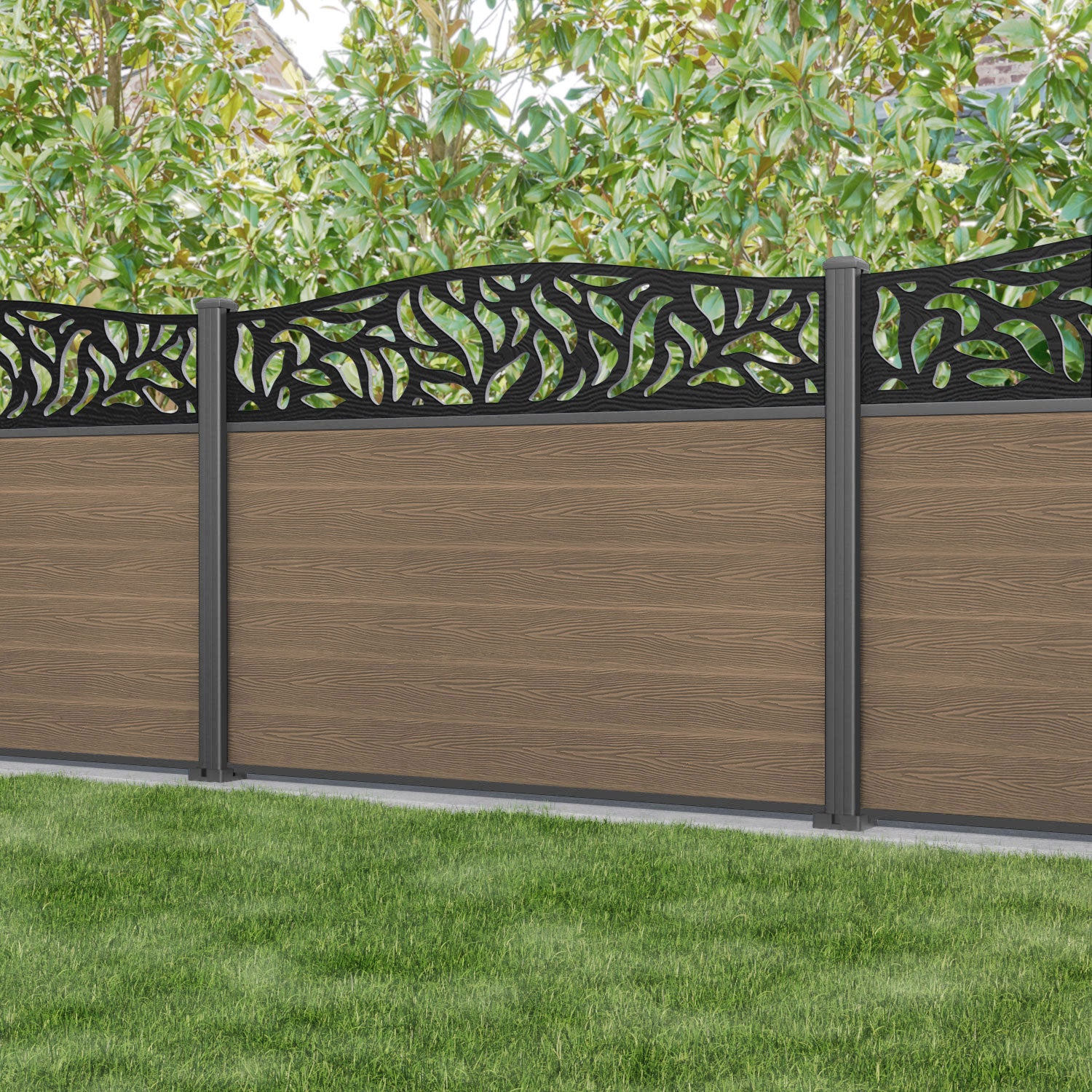 Classic Plume Curved Top Fence Panel Teak - with our aluminium posts