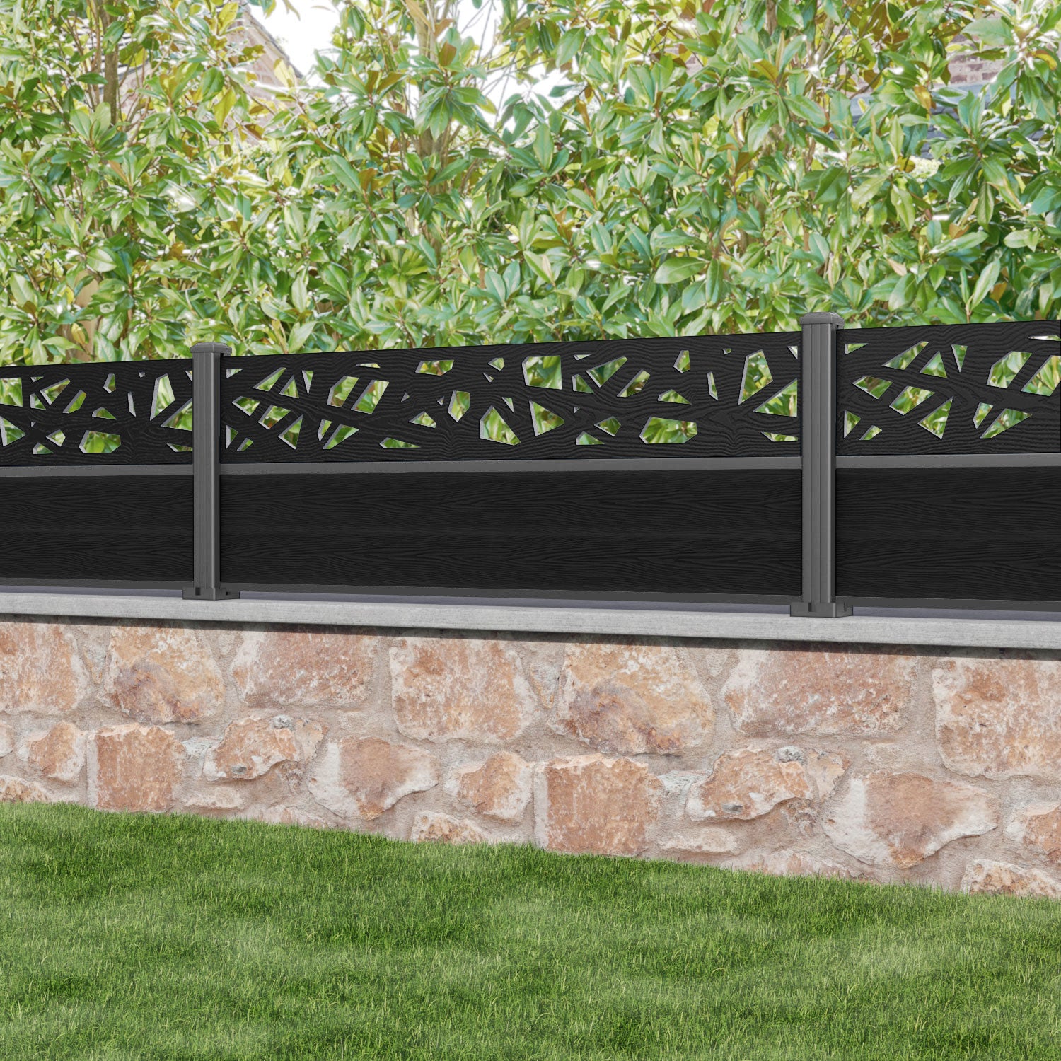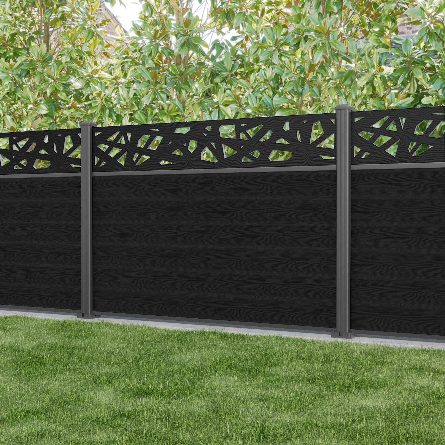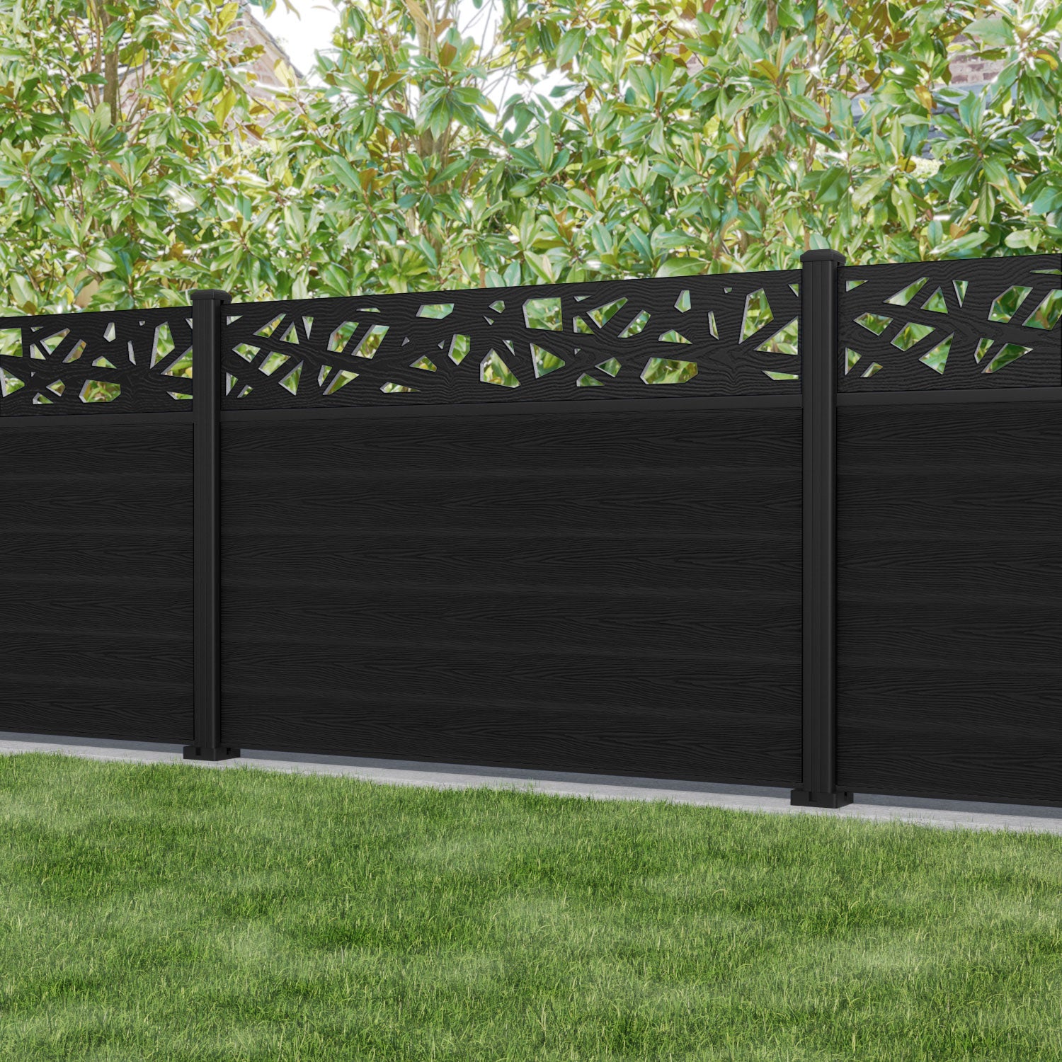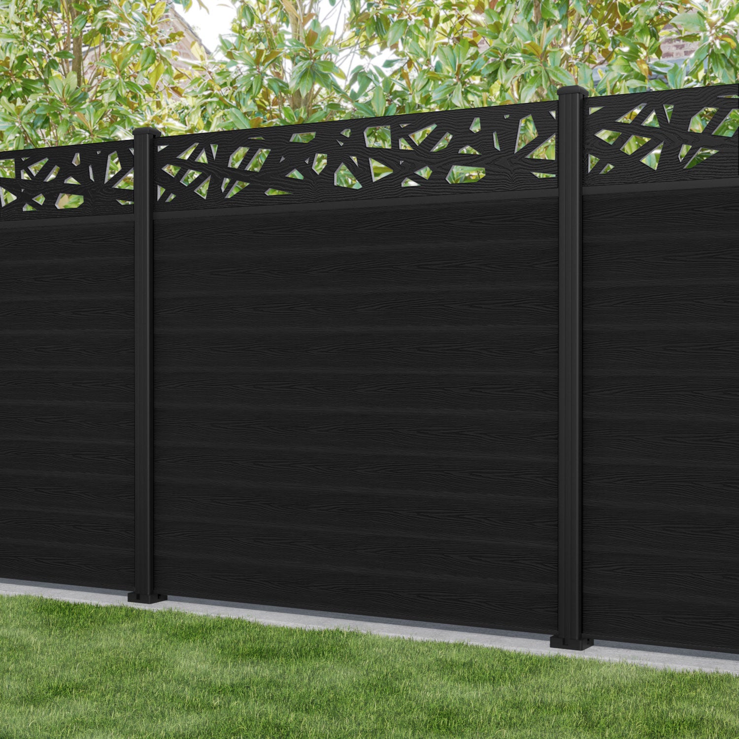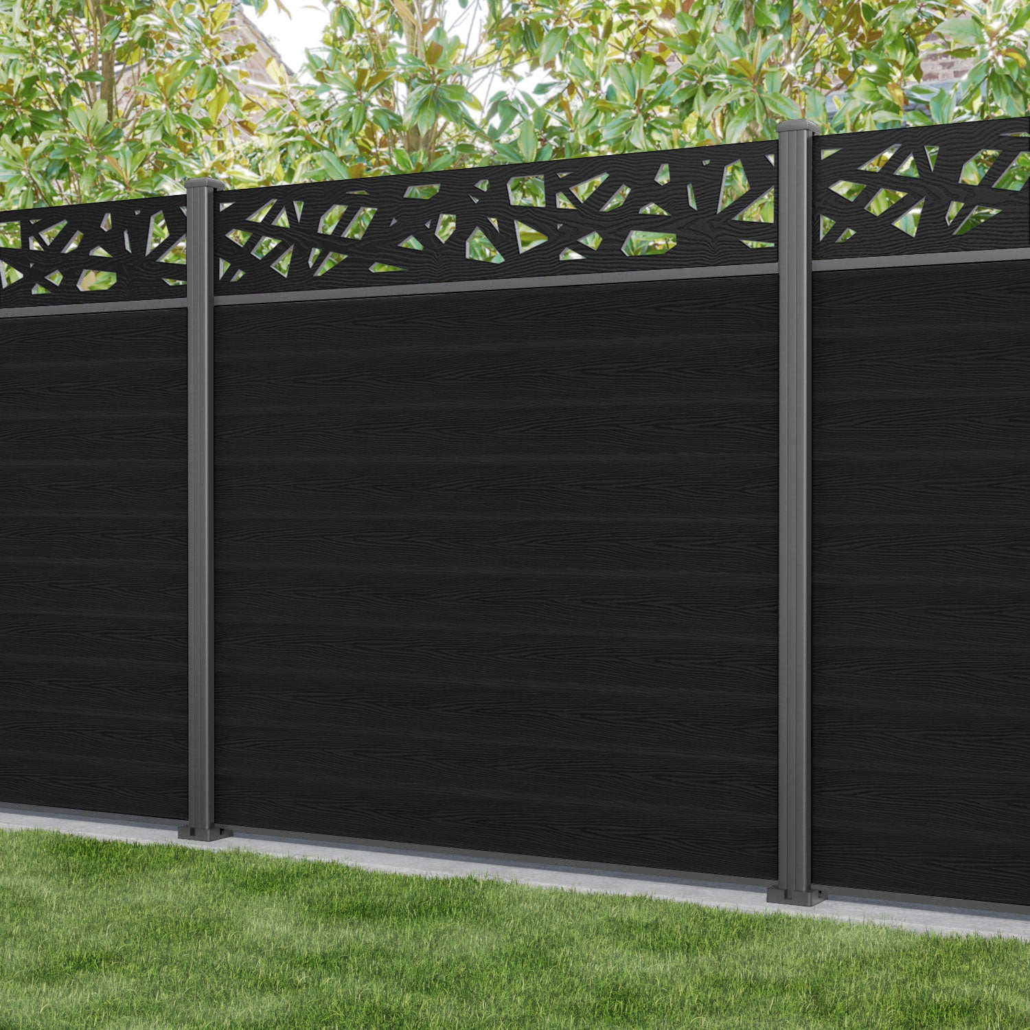 Classic Prism Fence Panel Black - with our aluminium posts