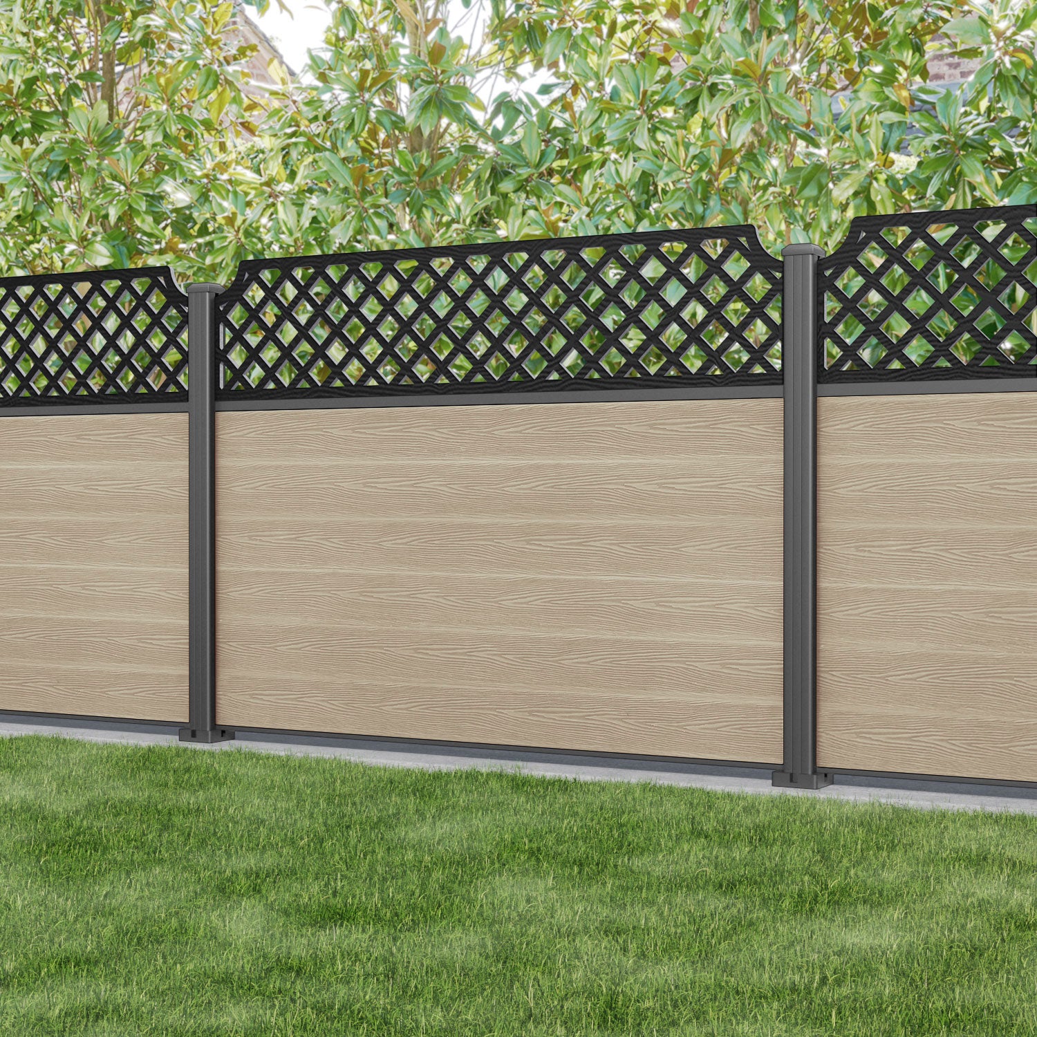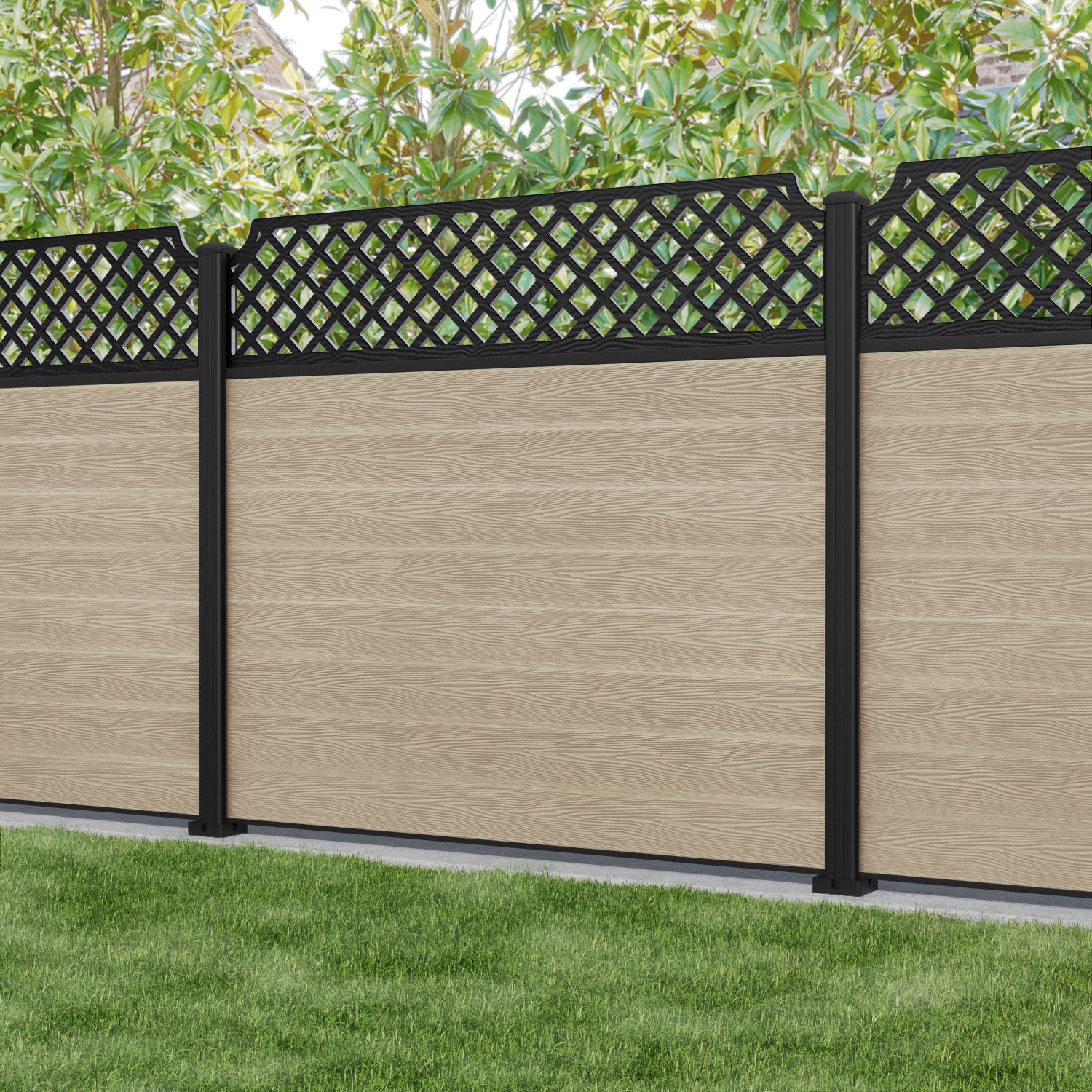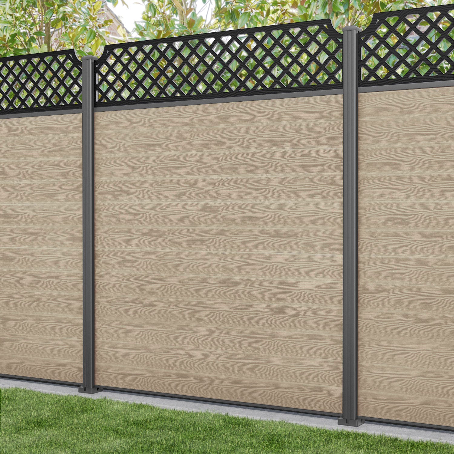 Classic Regal Hive Fence Panel Light Oak - with our aluminium posts
