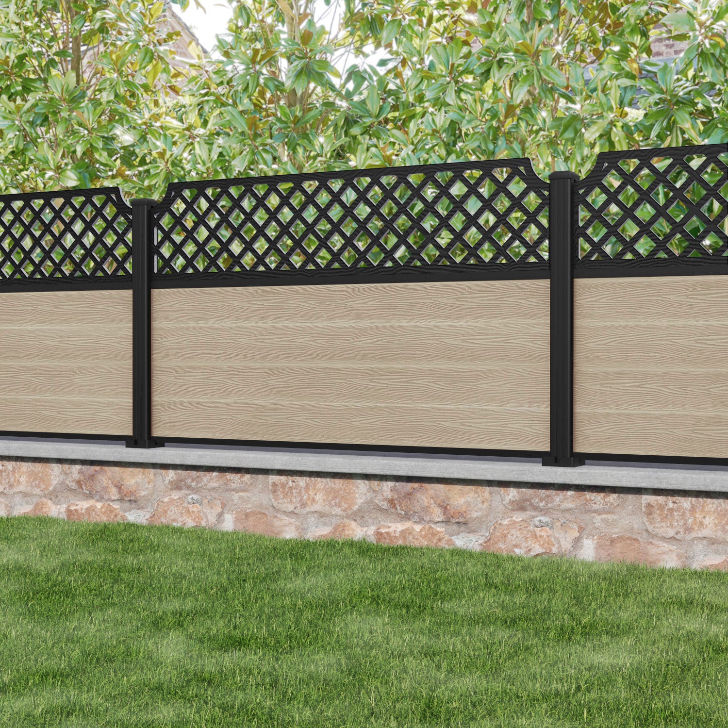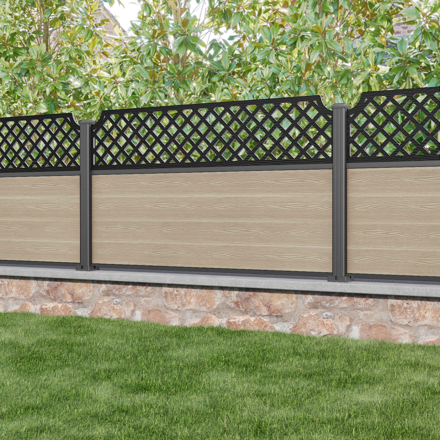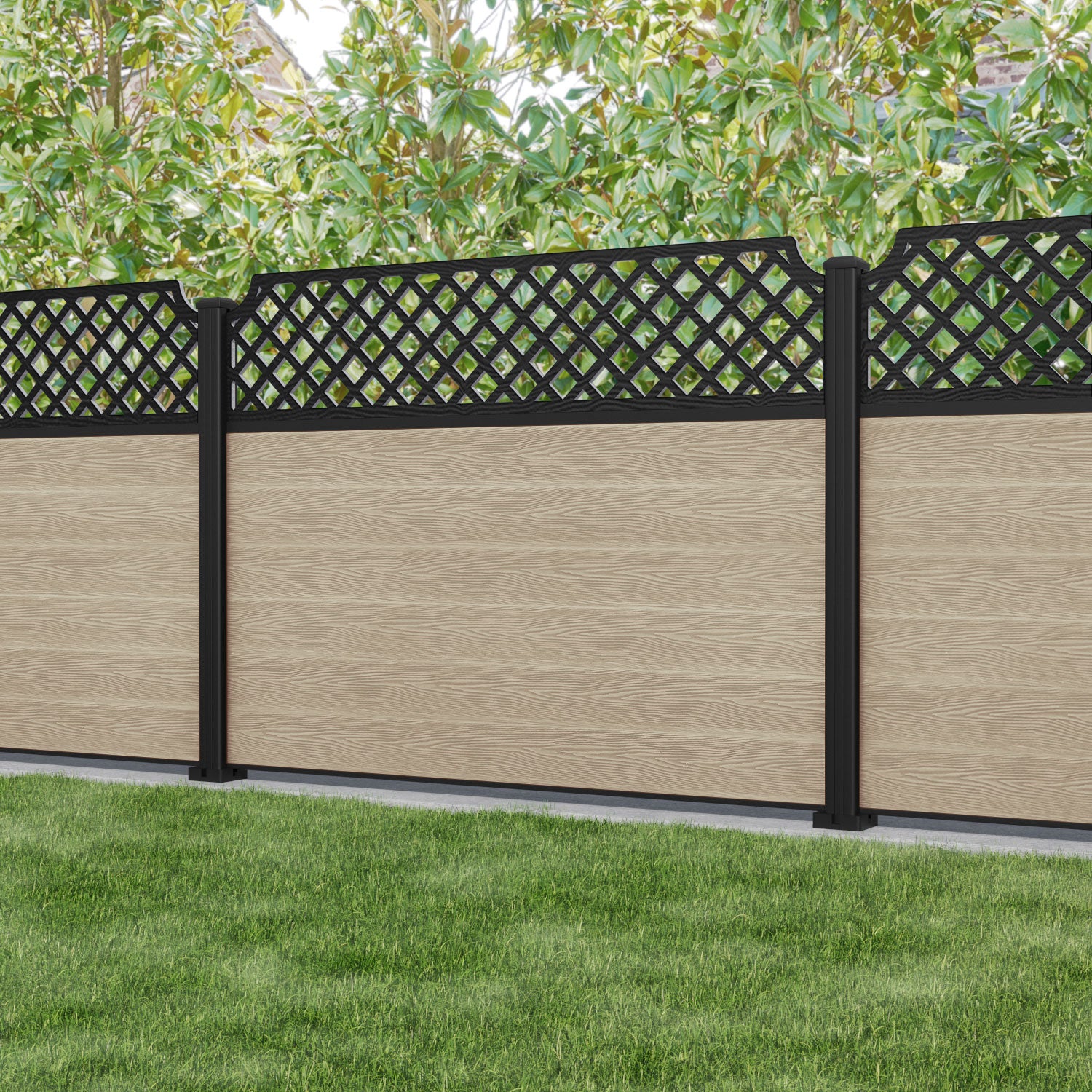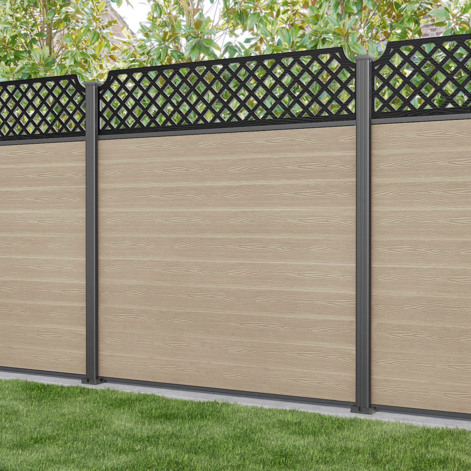 Classic Regal Hive Fence Panel Light Oak - with our aluminium posts