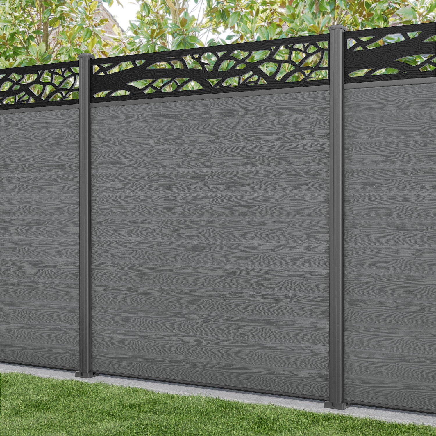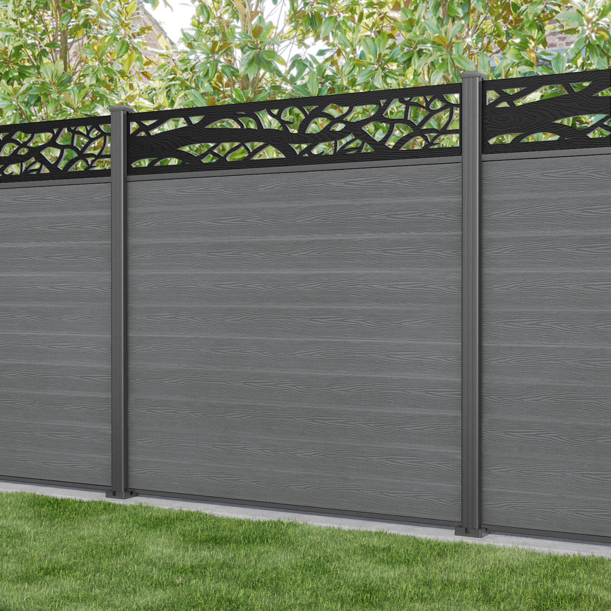 Classic Twilight Fence Panel Mid Grey - with our aluminium posts