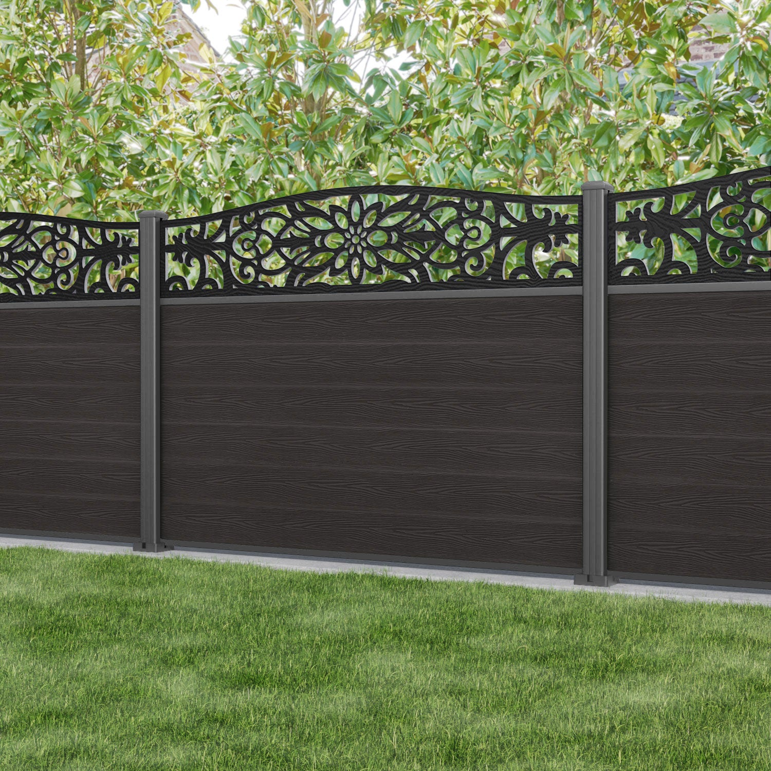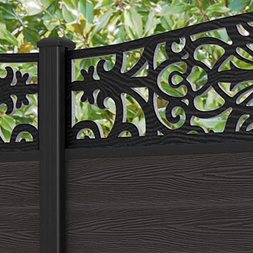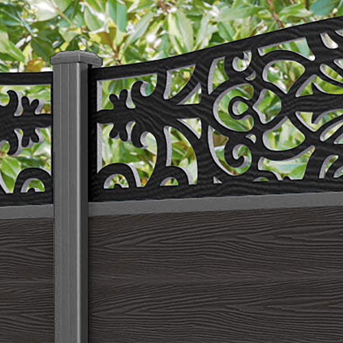 Classic Windsor Curved Top Fence Panel Dark Oak - with our aluminium posts