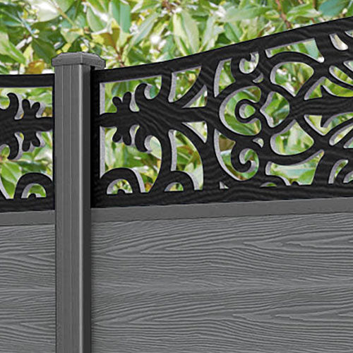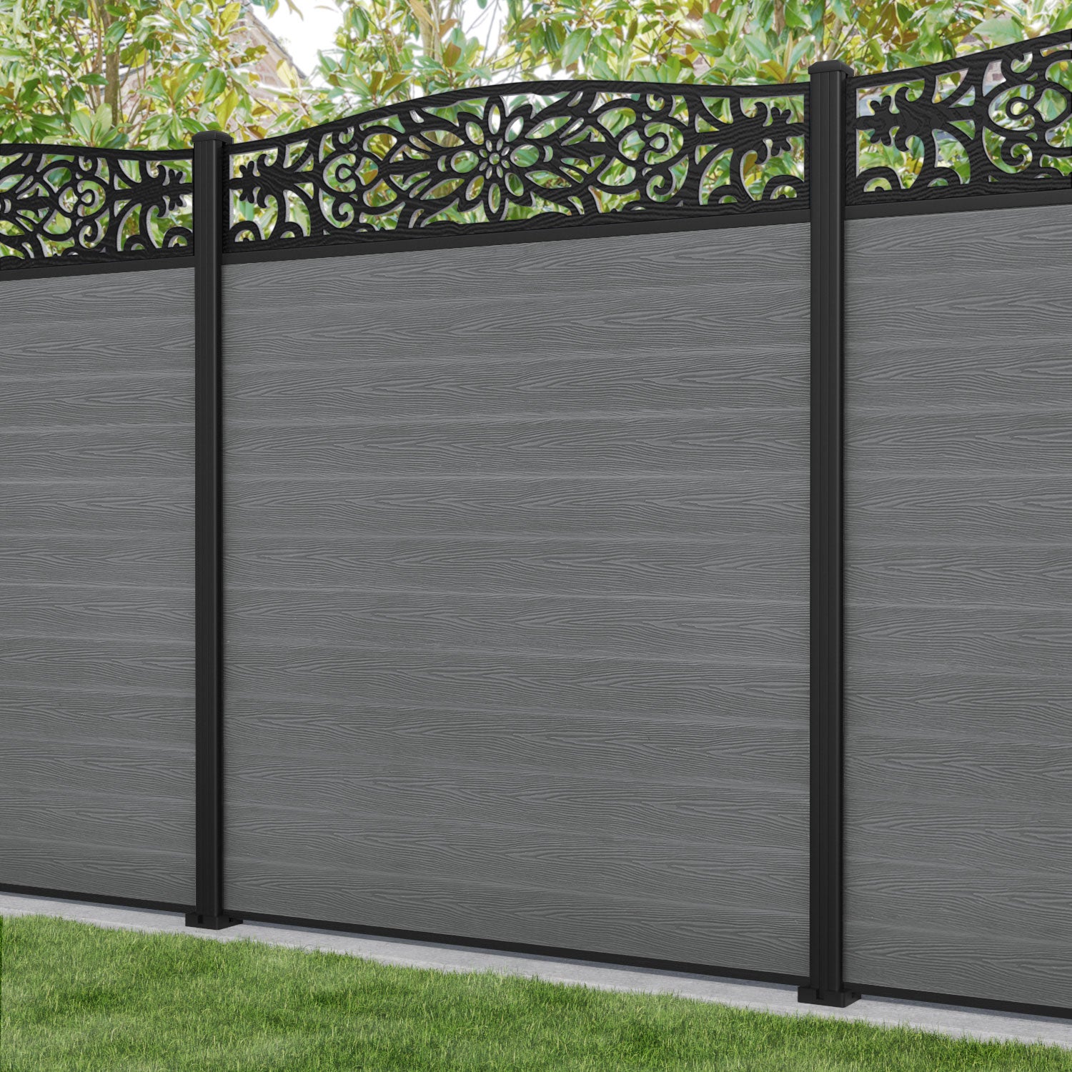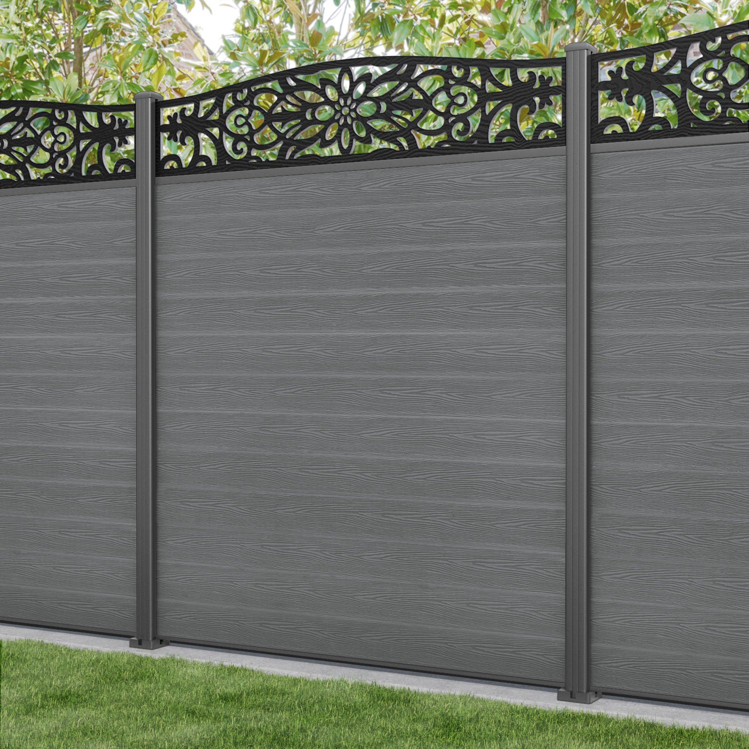 Classic Windsor Curved Top Fence Panel Mid Grey - with our aluminium posts