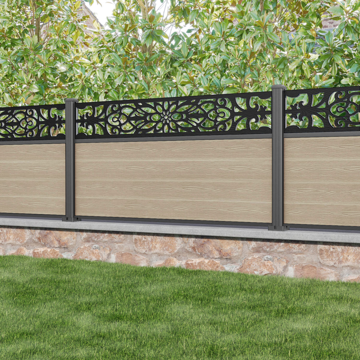 Our 18mm thick light oak premium composite fence slats paired with our high-grade aluminium fence posts and Windsor screen create an elegant, versatile, and eco-friendly fencing solution. Not only is this fencing responsibly sourced, it is also durable, long-lasting and requires no maintenance or painting.