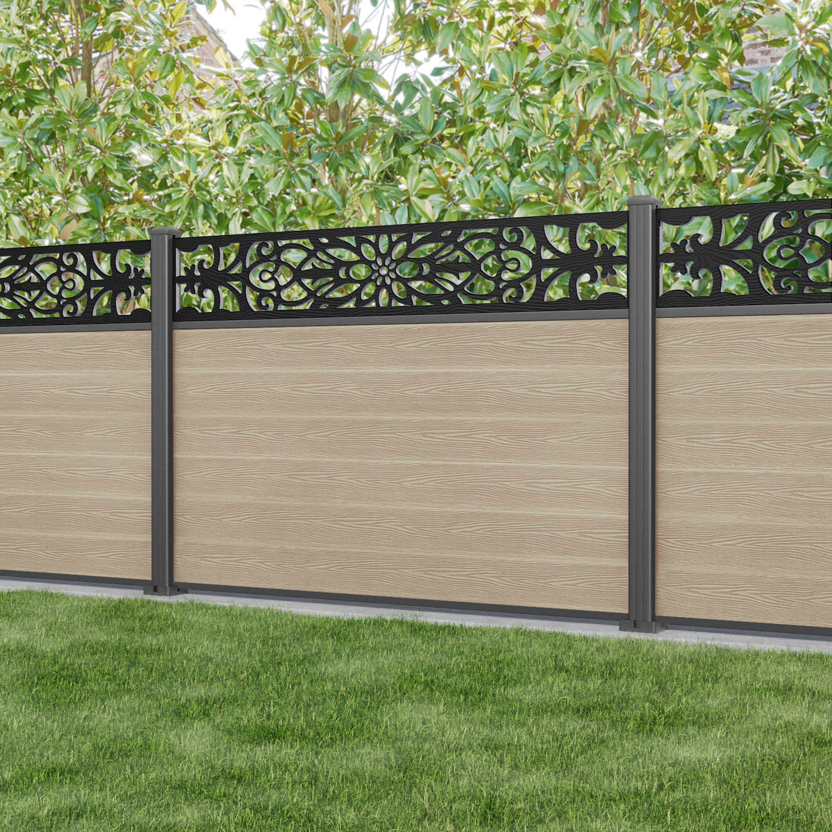 Classic Windsor Fence Panel Light Oak - with our aluminium posts