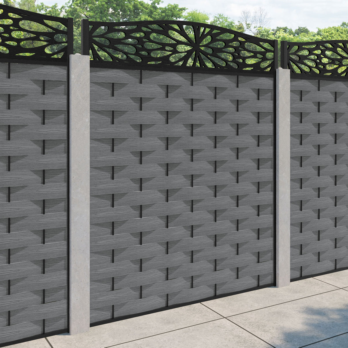 Ripple Blossom Curved Top Fence Panel Mid Grey - for existing concrete posts