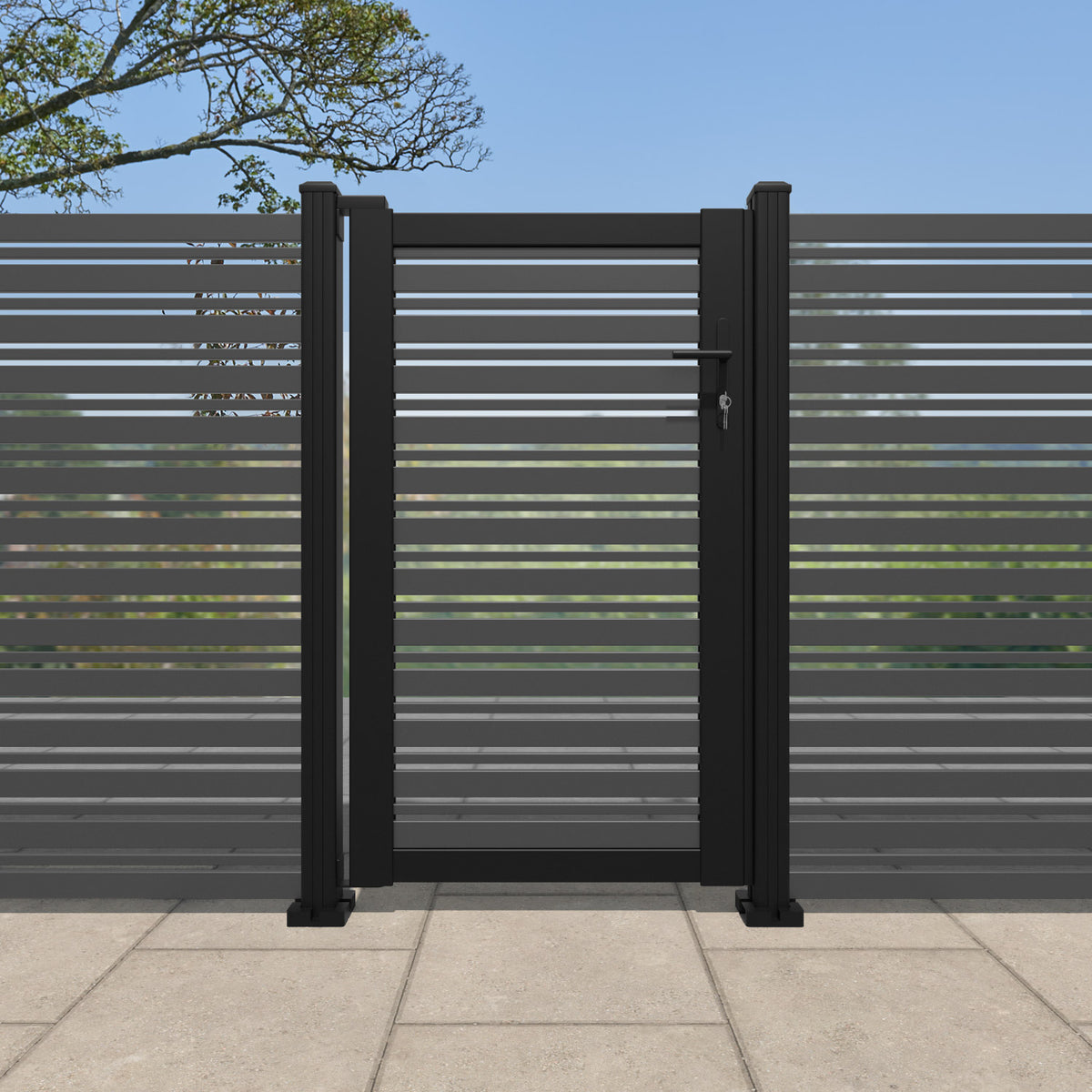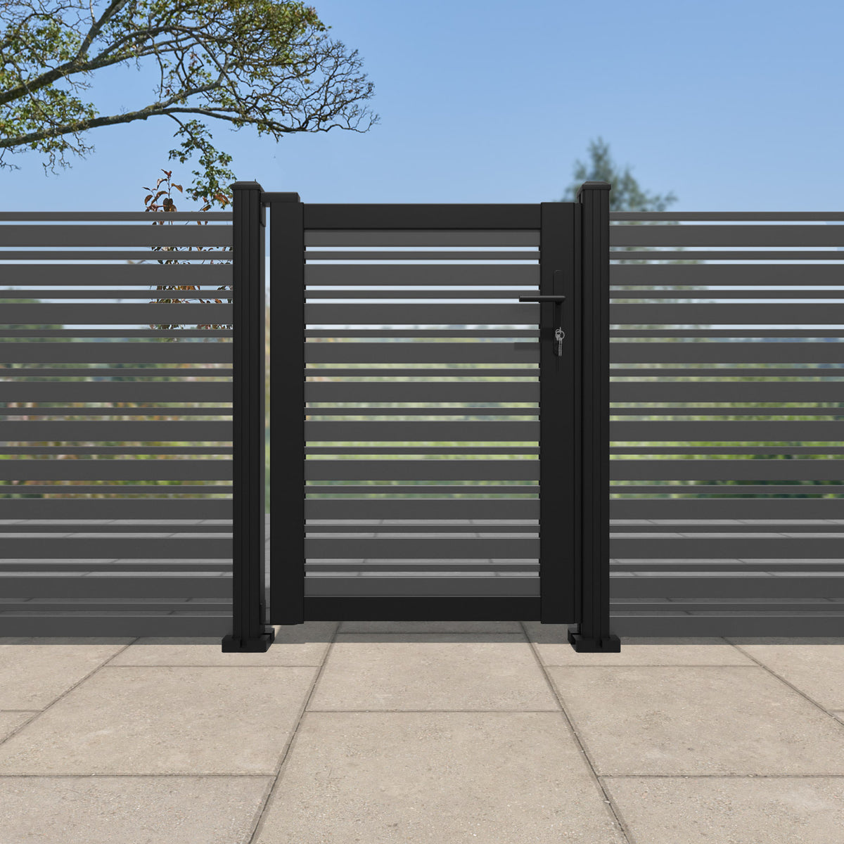 Pair your gate with our eco-friendly composite or aluminium slats for a seamless match to our fencing collections, ensuring a stylish and cohesive look.