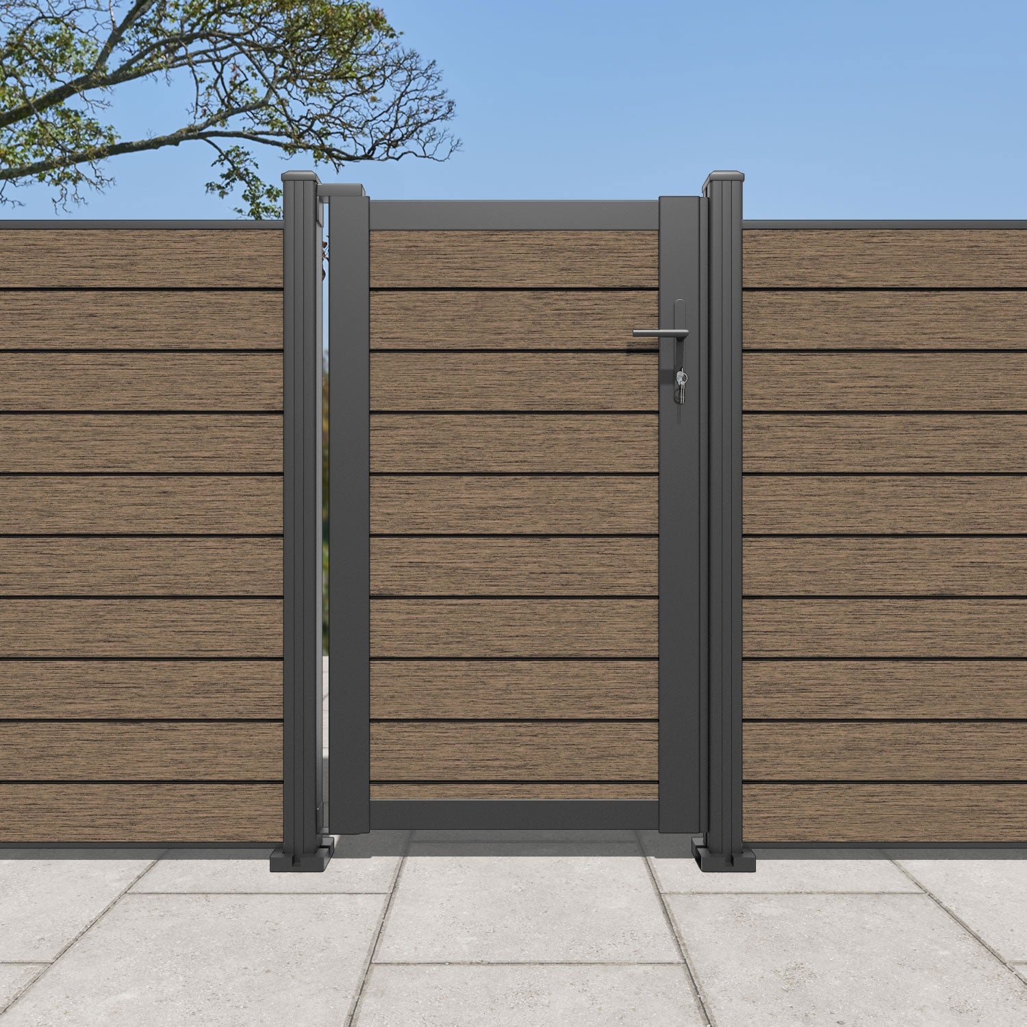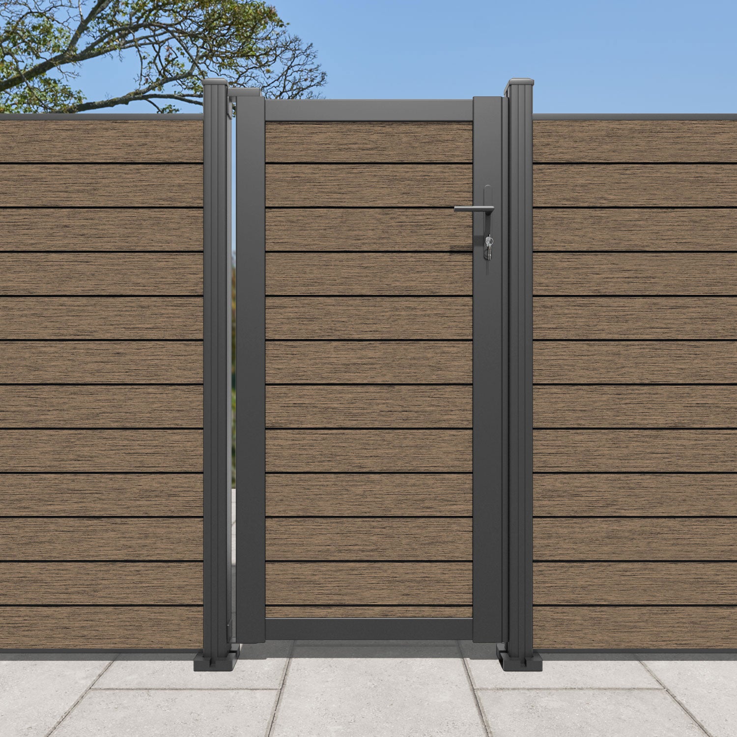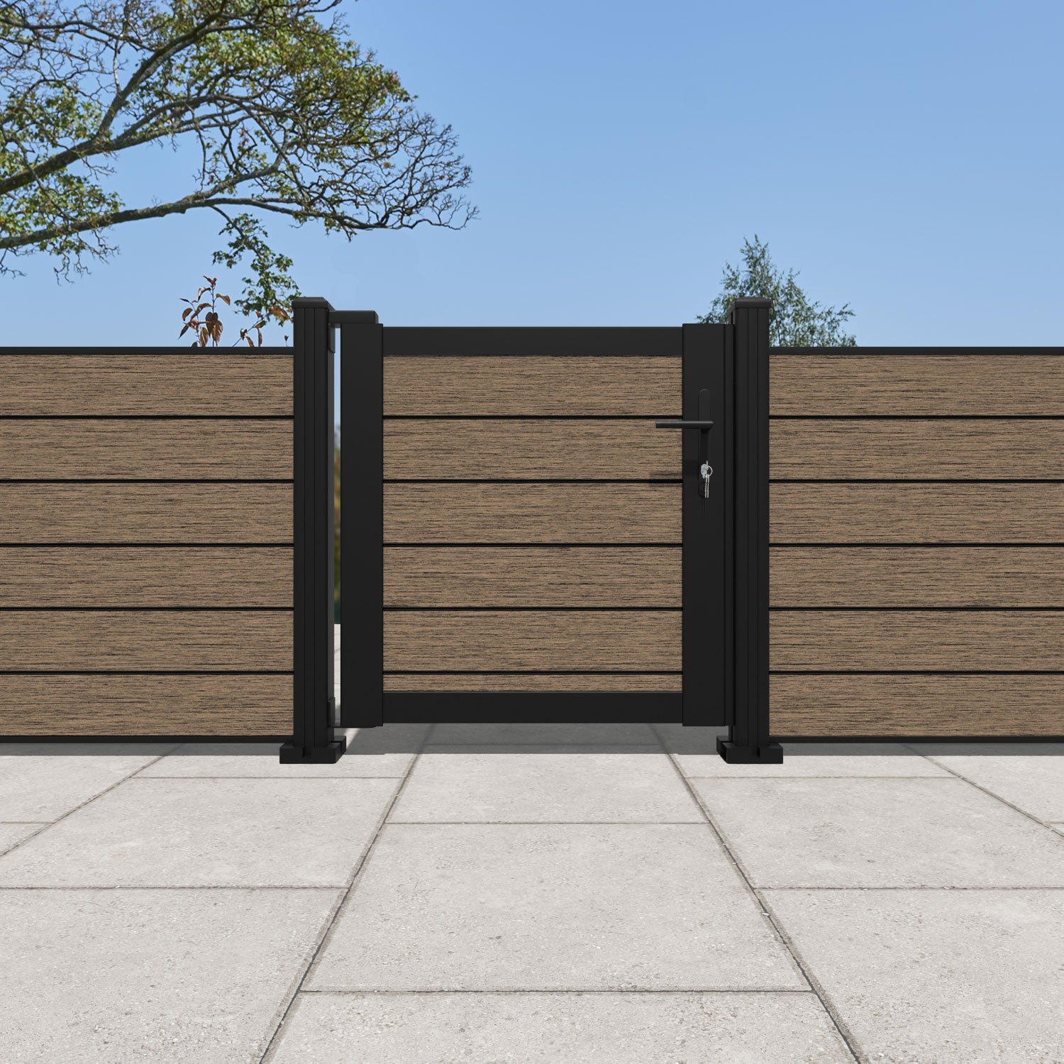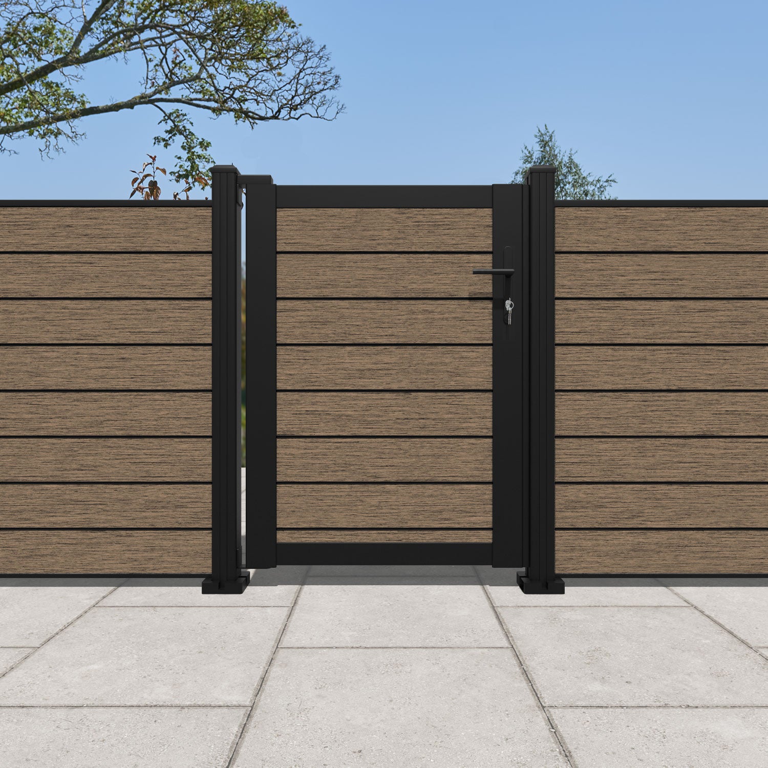 Pair your gate with our eco-friendly composite or aluminium slats for a seamless match to our fencing collections, ensuring a stylish and cohesive look.
