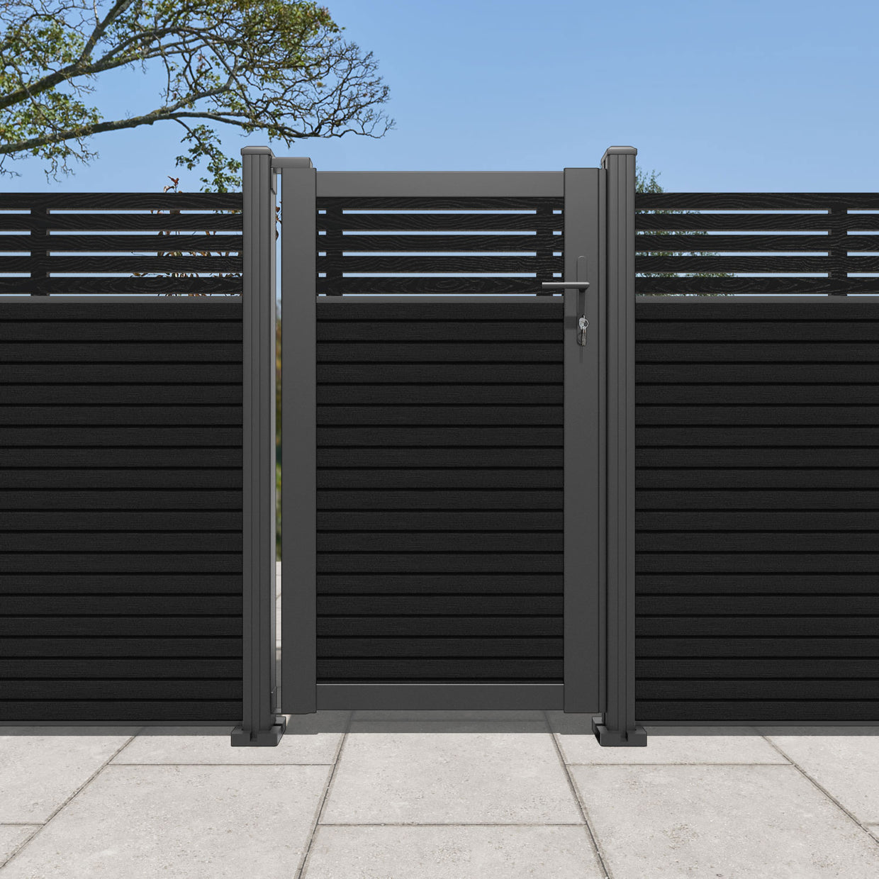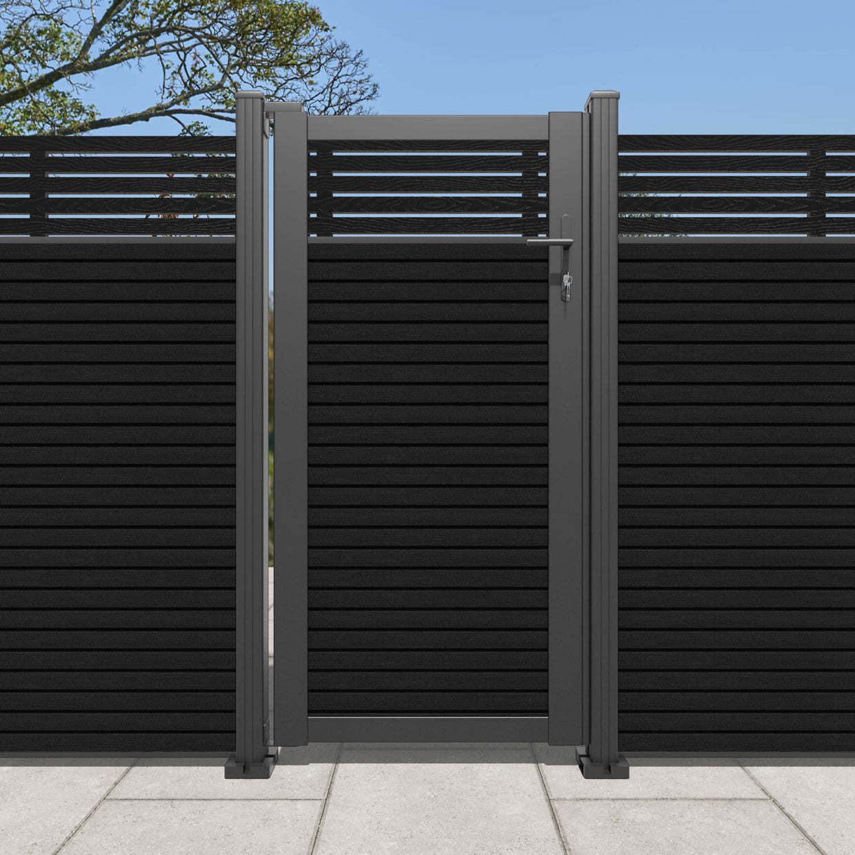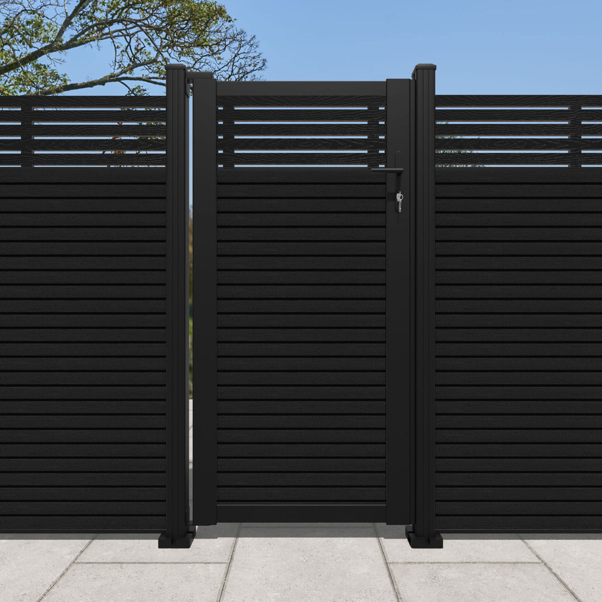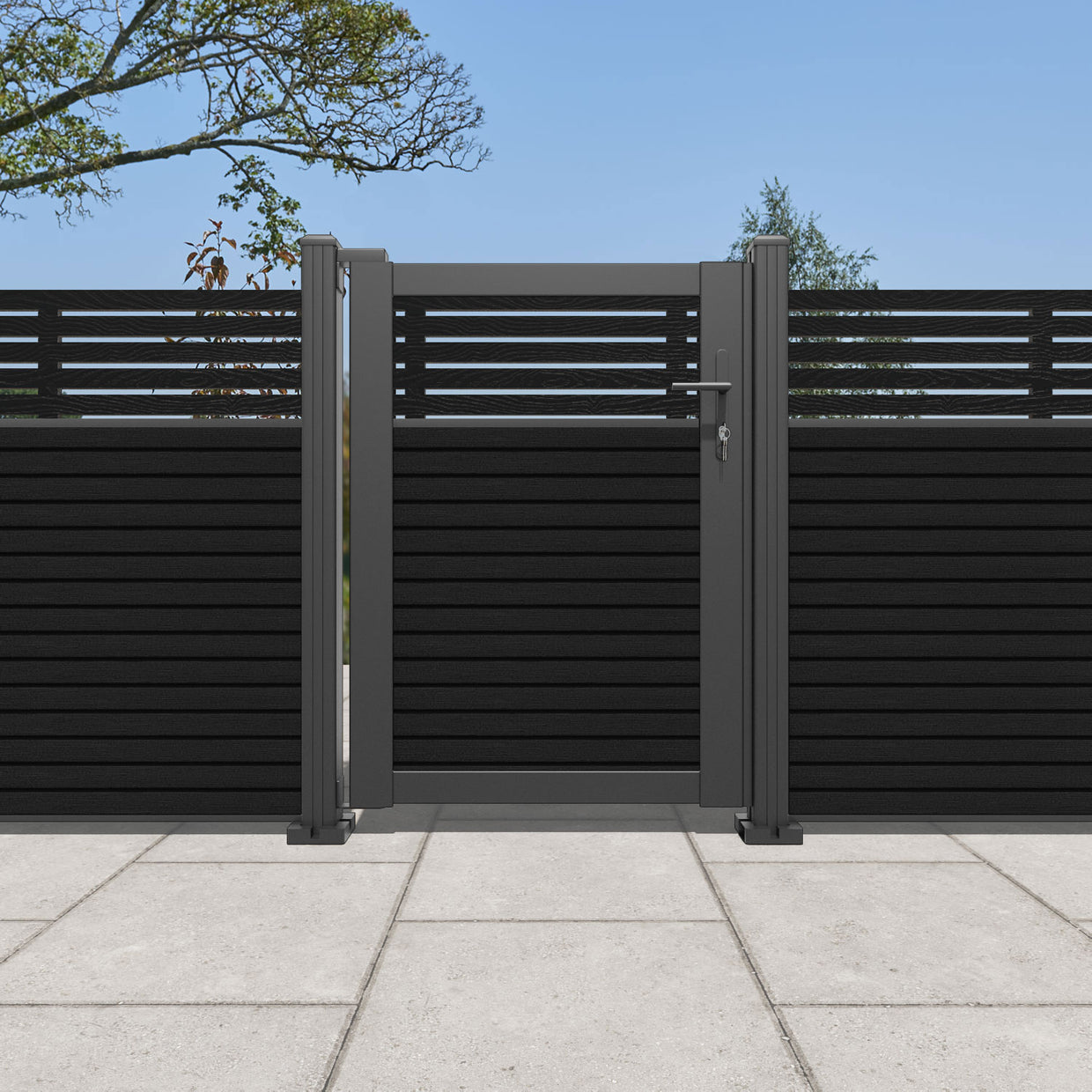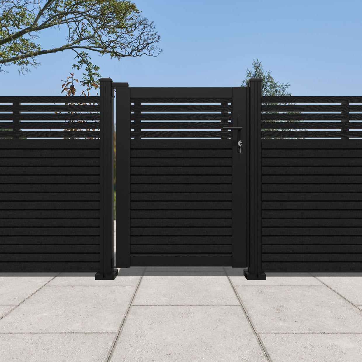 Pair your gate with our eco-friendly composite or aluminium slats for a seamless match to our fencing collections, ensuring a stylish and cohesive look.