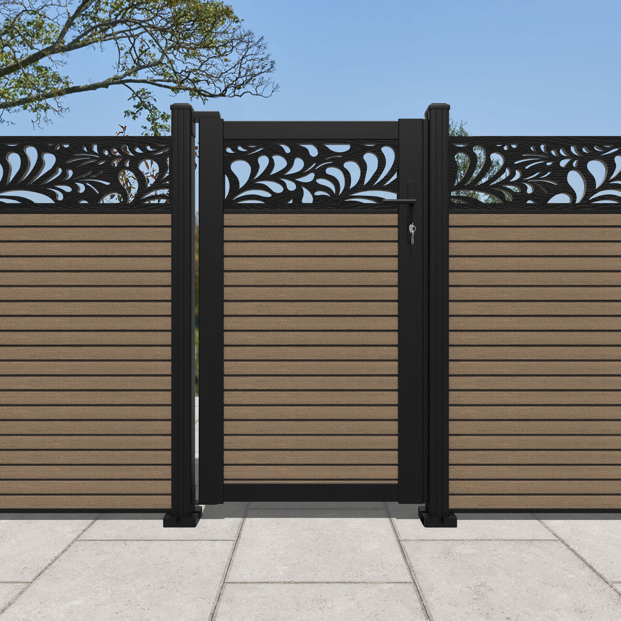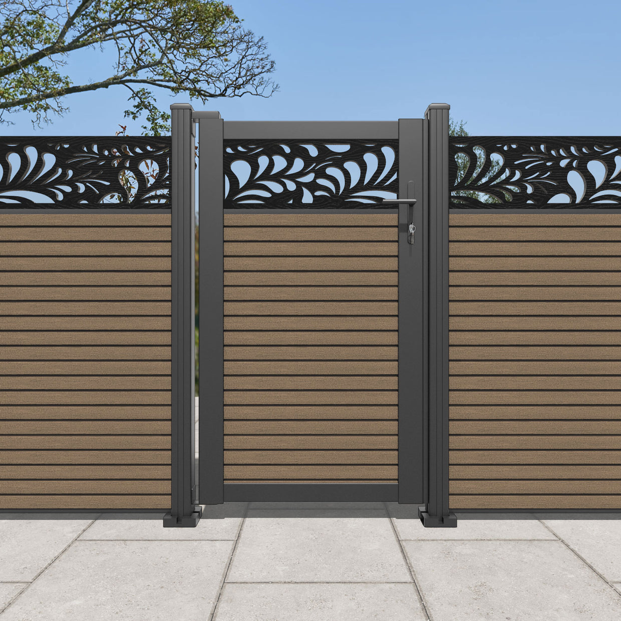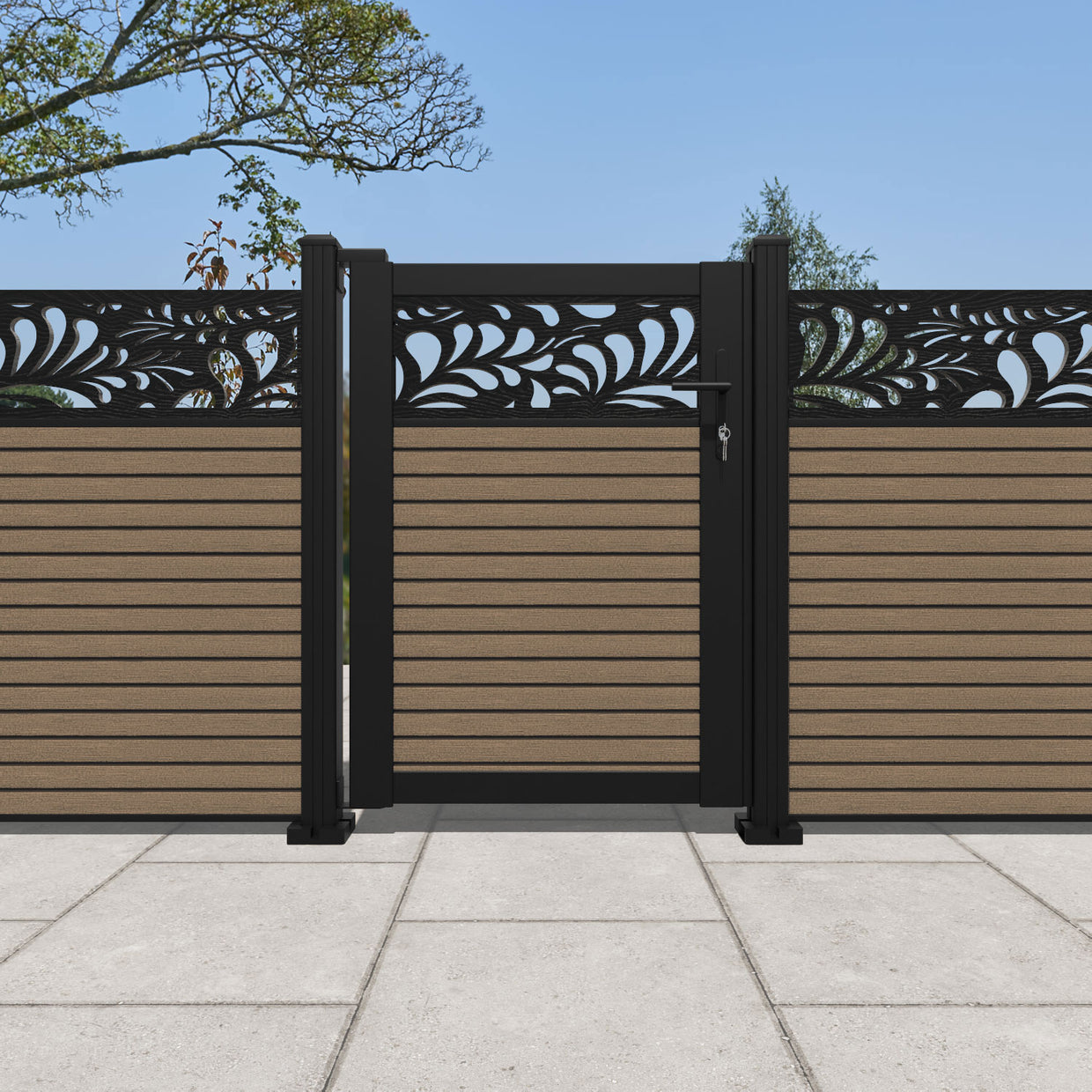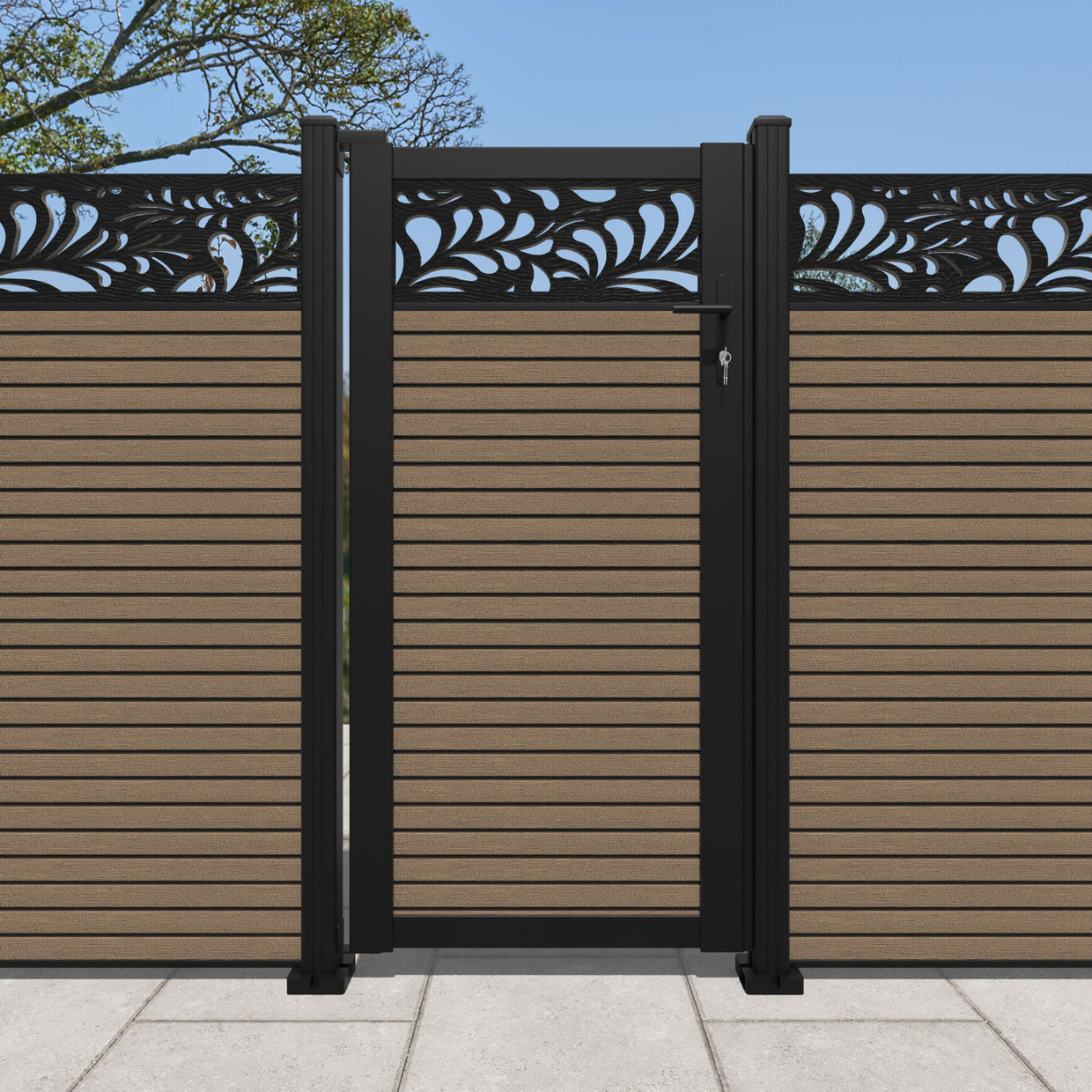Pair your gate with our eco-friendly composite or aluminium slats for a seamless match to our fencing collections, ensuring a stylish and cohesive look.
