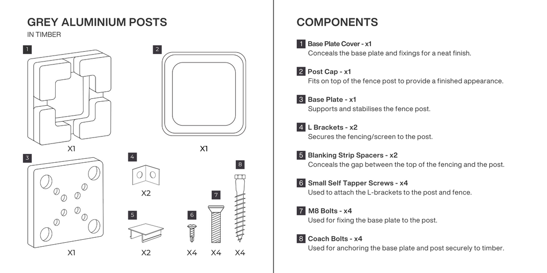 Our fixing kits are designed to make installation straightforward. Browse the guides below to see exactly what’s included in every kit.