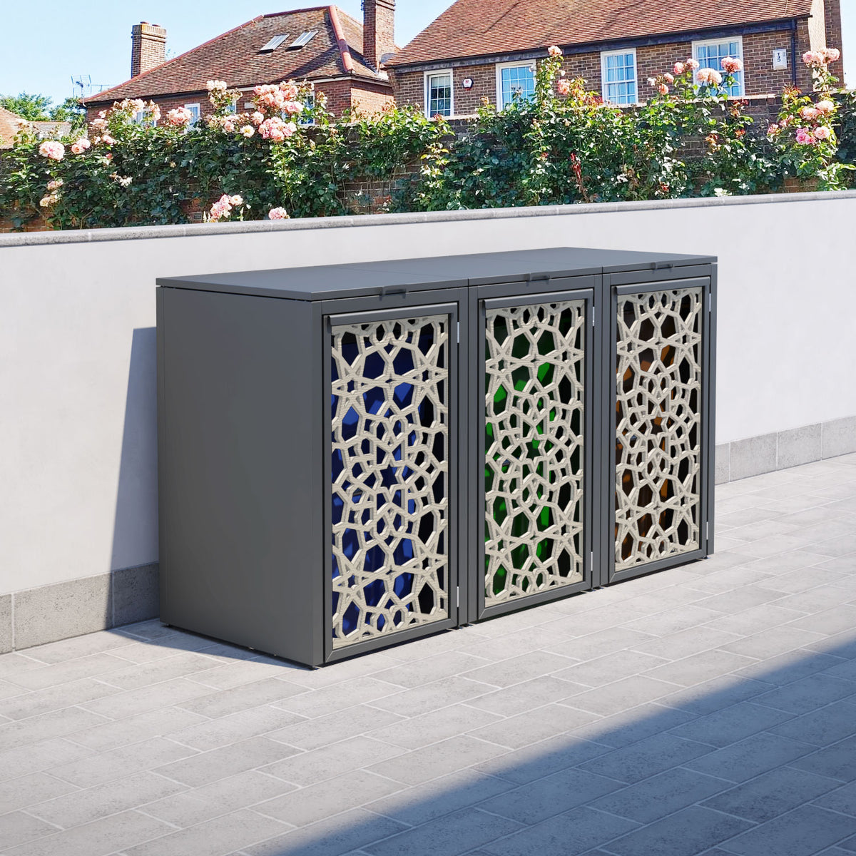Grey 3 Bin Store with Nazira Door Screen