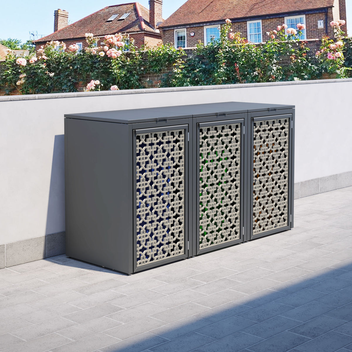 Grey 3 Bin Store with Zaria Door Screen
