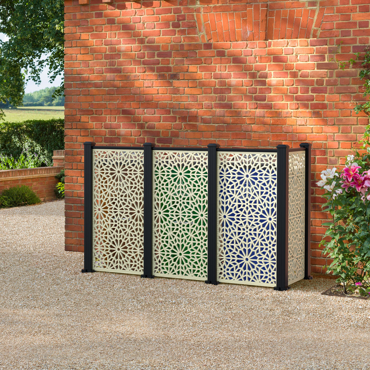 Our bin screens are designed to blend in seamlessly with your outdoor decor, effectively hiding the bins from view. We offer a variety of elegant styles, in 3 different sizes and 4 chic colours, making our premium bin screening system the ultimate choice for those who desire a luxurious and sophisticated outdoor experience.