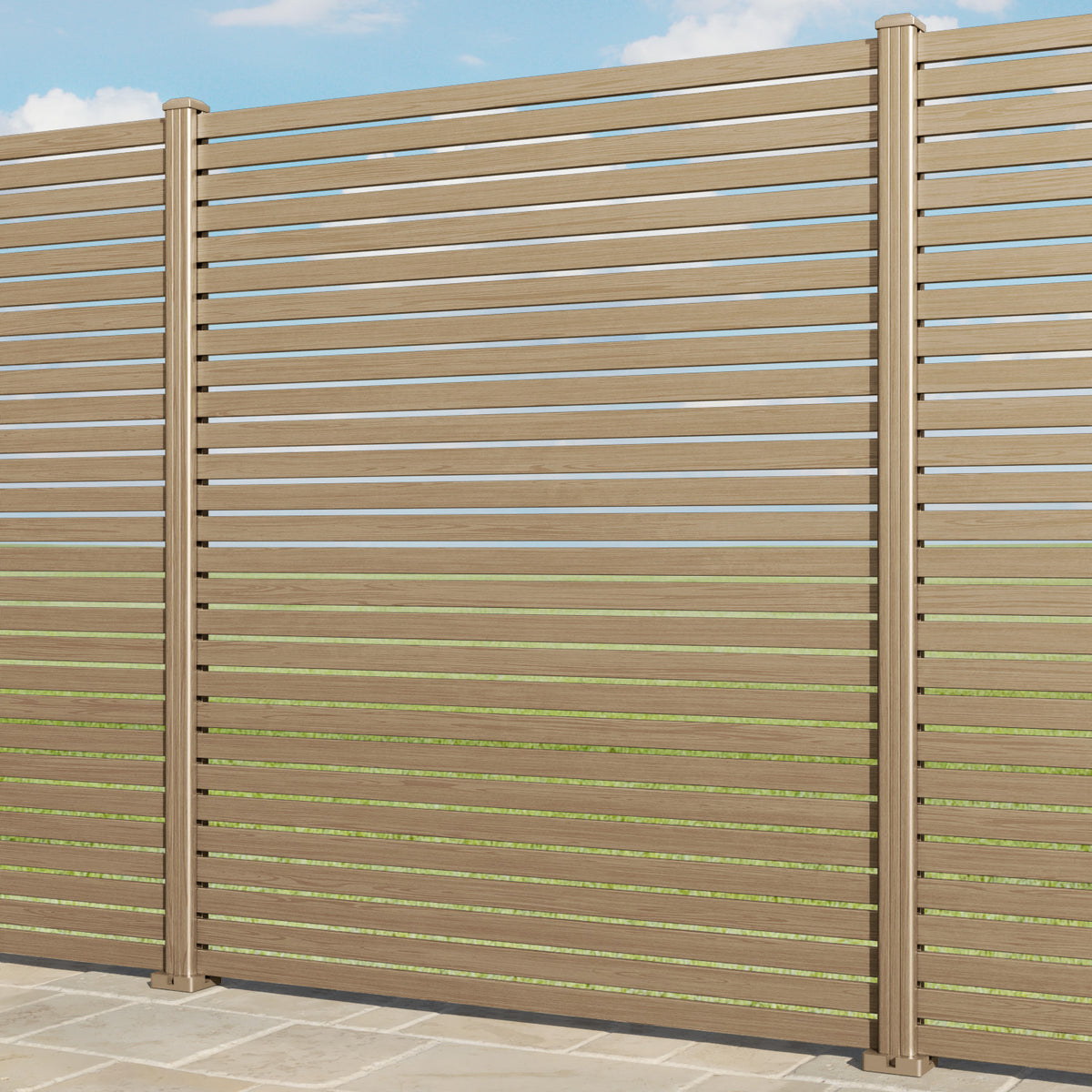 Aria Aluminium Fence Panel Natural Oak - with our aluminium posts