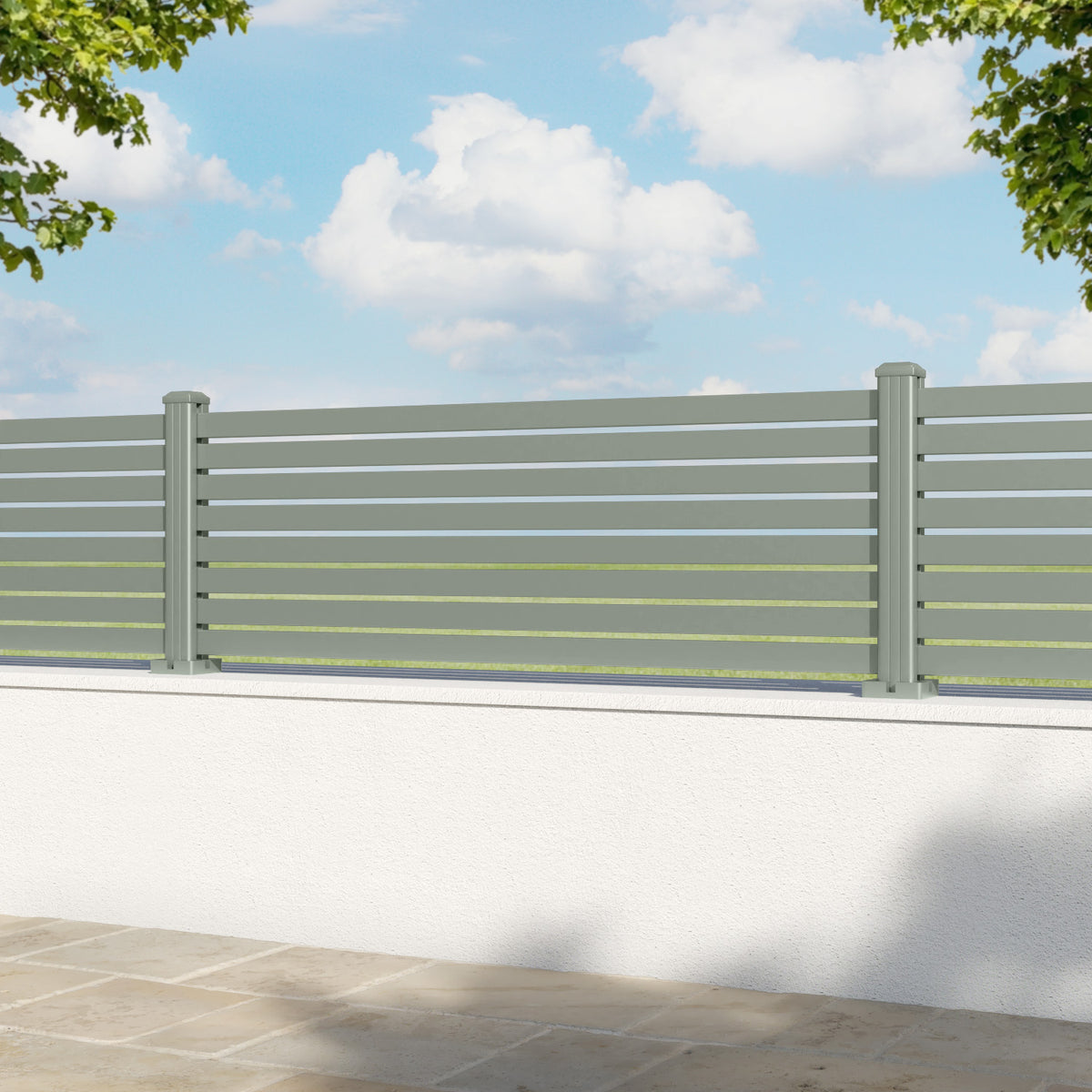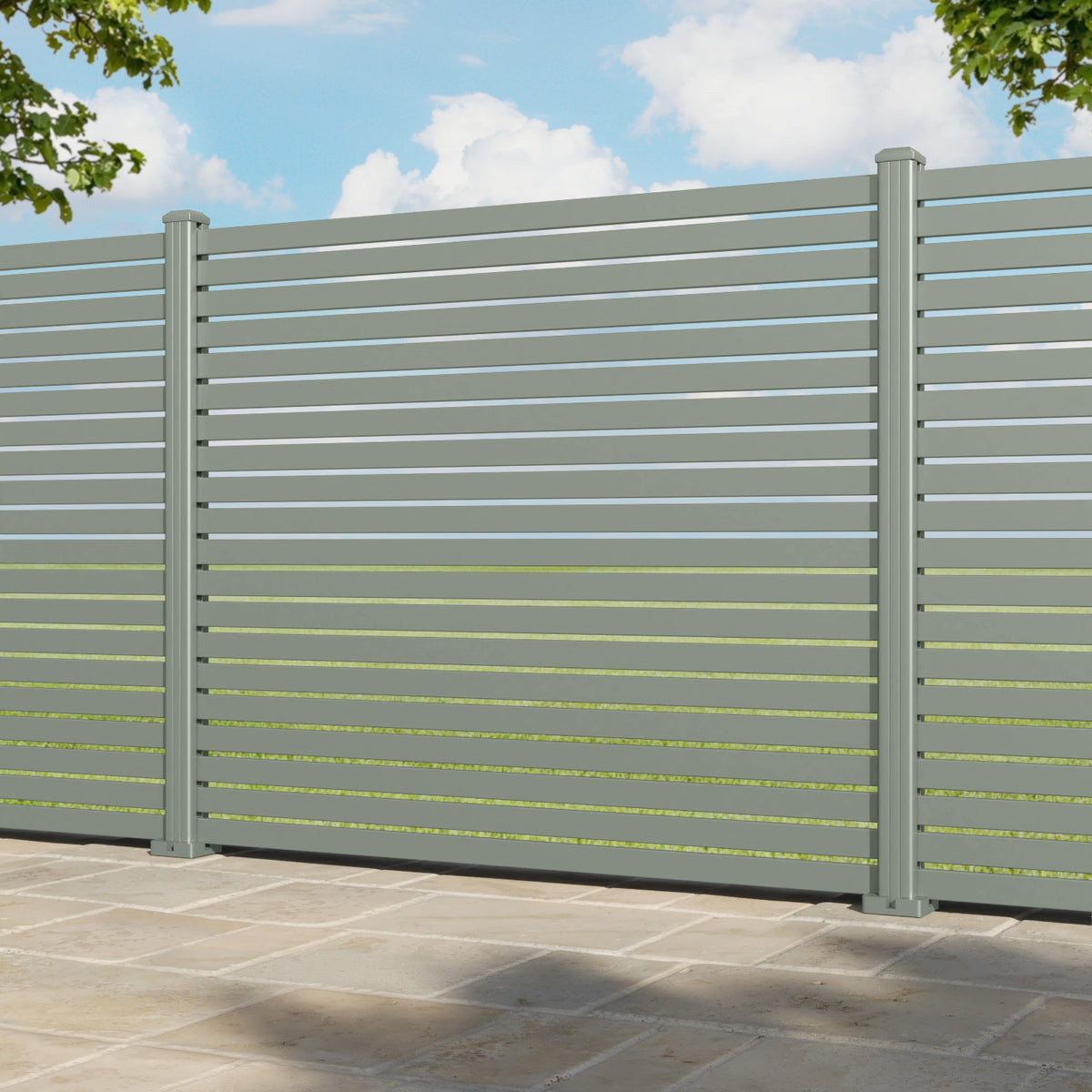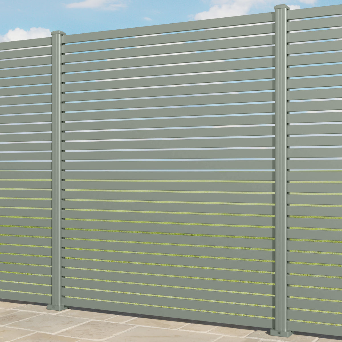 Aria Aluminium Fence Panel Sage - with our aluminium posts