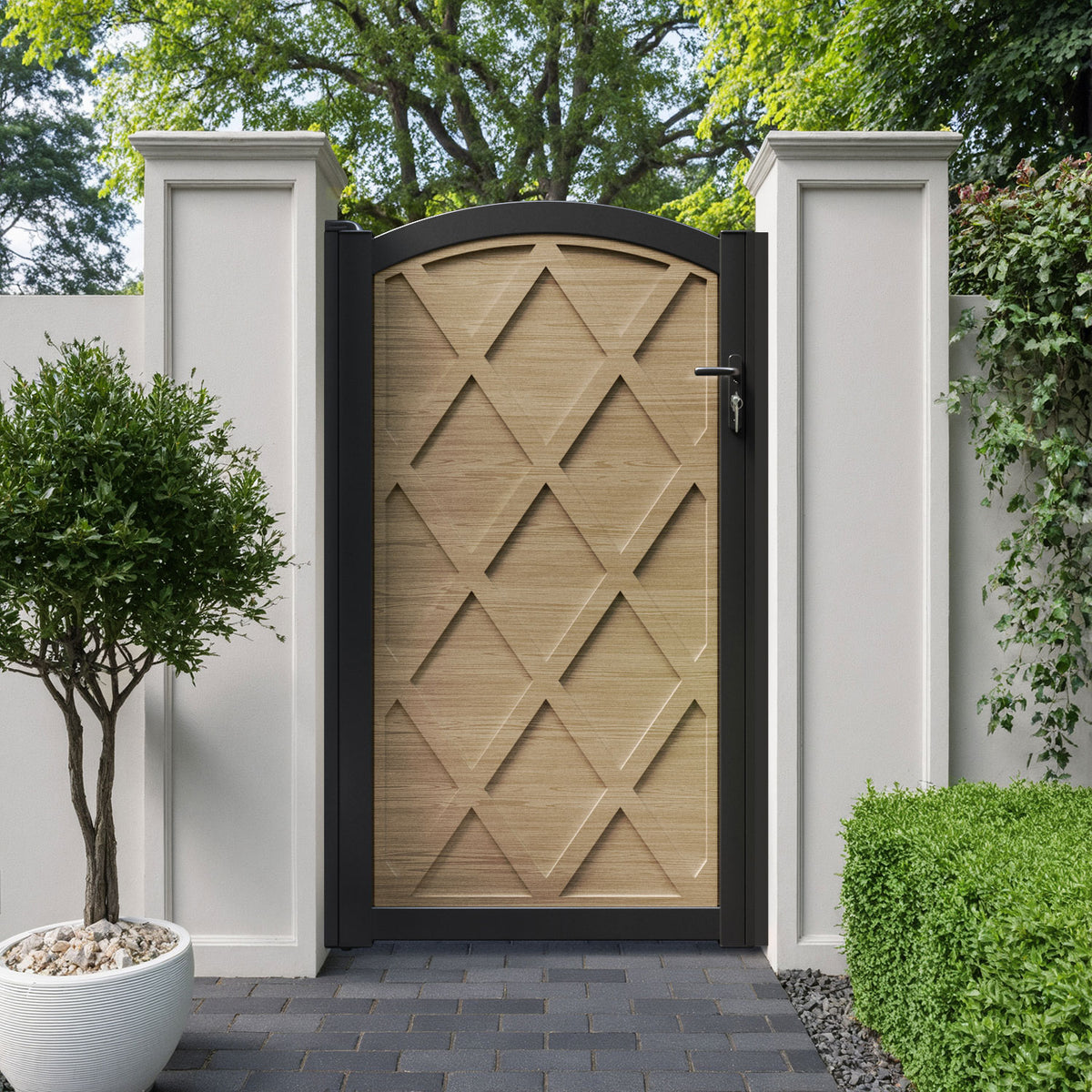 Pair your gate with our eco-friendly composite or aluminium slats for a seamless match to our fencing collections, ensuring a stylish and cohesive look.