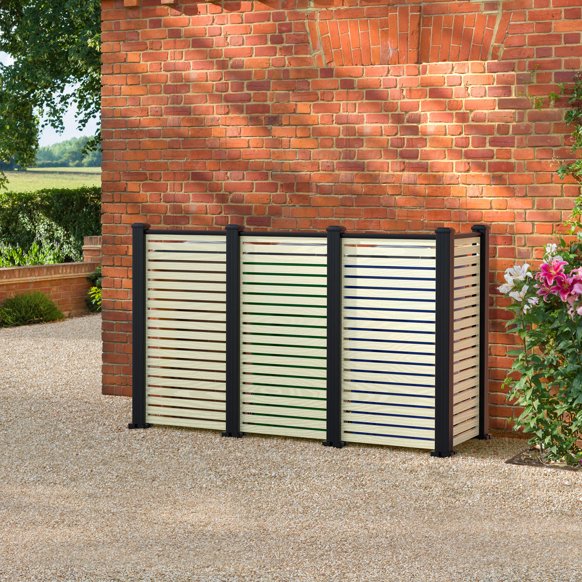 Our bin screens are designed to blend in seamlessly with your outdoor decor, effectively hiding the bins from view. We offer a variety of elegant styles, in 3 different sizes and 4 chic colours, making our premium bin screening system the ultimate choice for those who desire a luxurious and sophisticated outdoor experience.