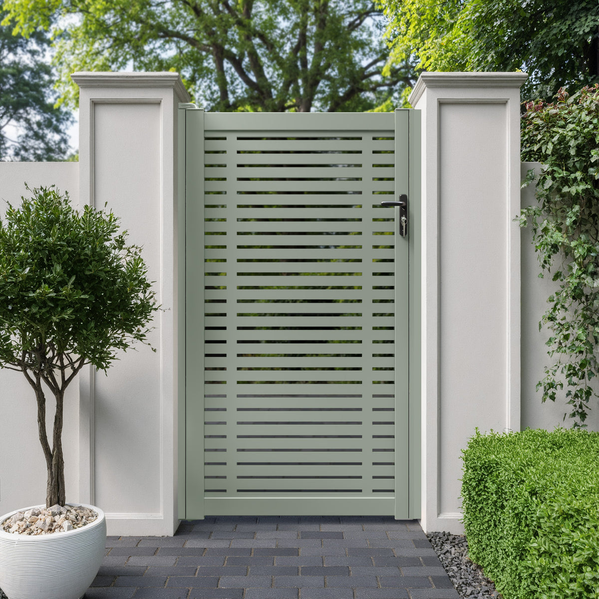Pair your gate with our eco-friendly composite or aluminium slats for a seamless match to our fencing collections, ensuring a stylish and cohesive look.