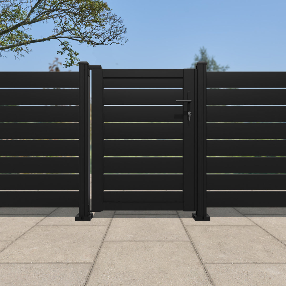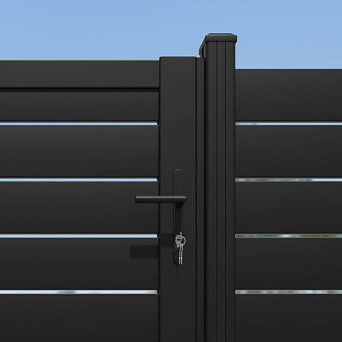 Pair your gate with our eco-friendly composite or aluminium slats for a seamless match to our fencing collections, ensuring a stylish and cohesive look.
