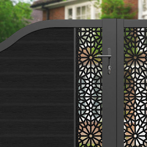 Classic Alnara Curved Top Driveway Gate Black - Middle & End Screen