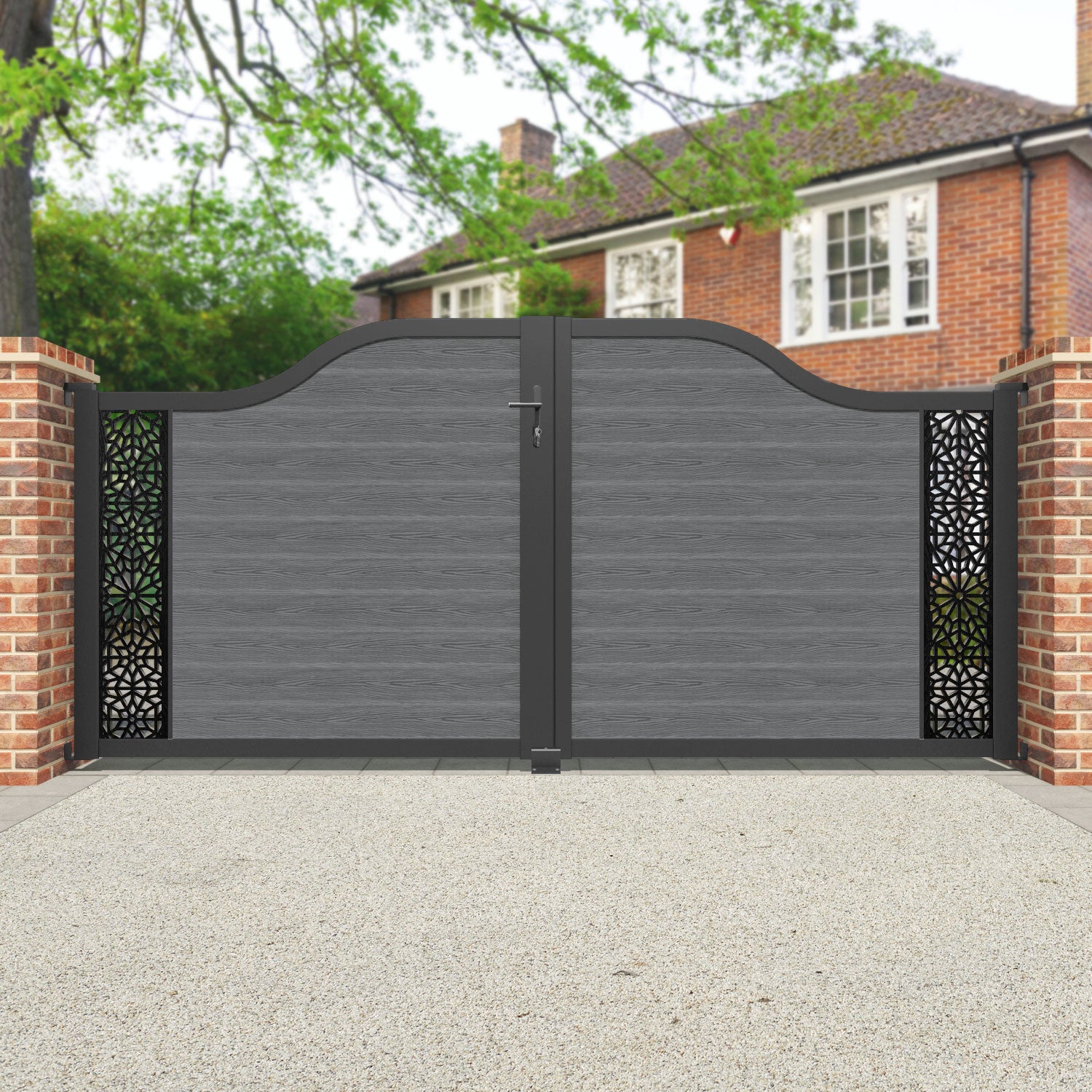 Classic Alnara Curved Top Driveway Gate Mid Grey - End Screen