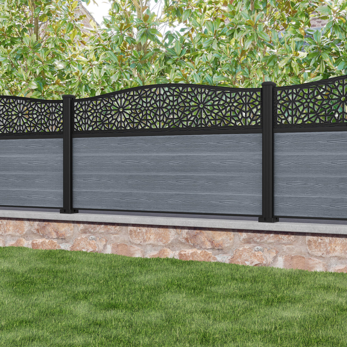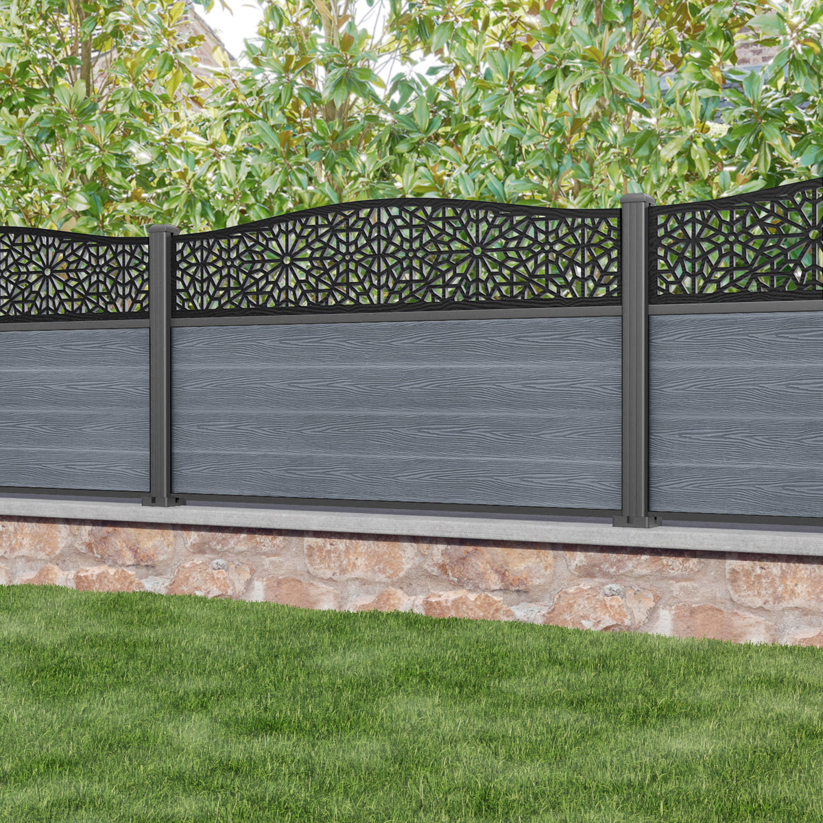 Classic Alnara Curved Top Fence Panel Anthracite - with our aluminium posts