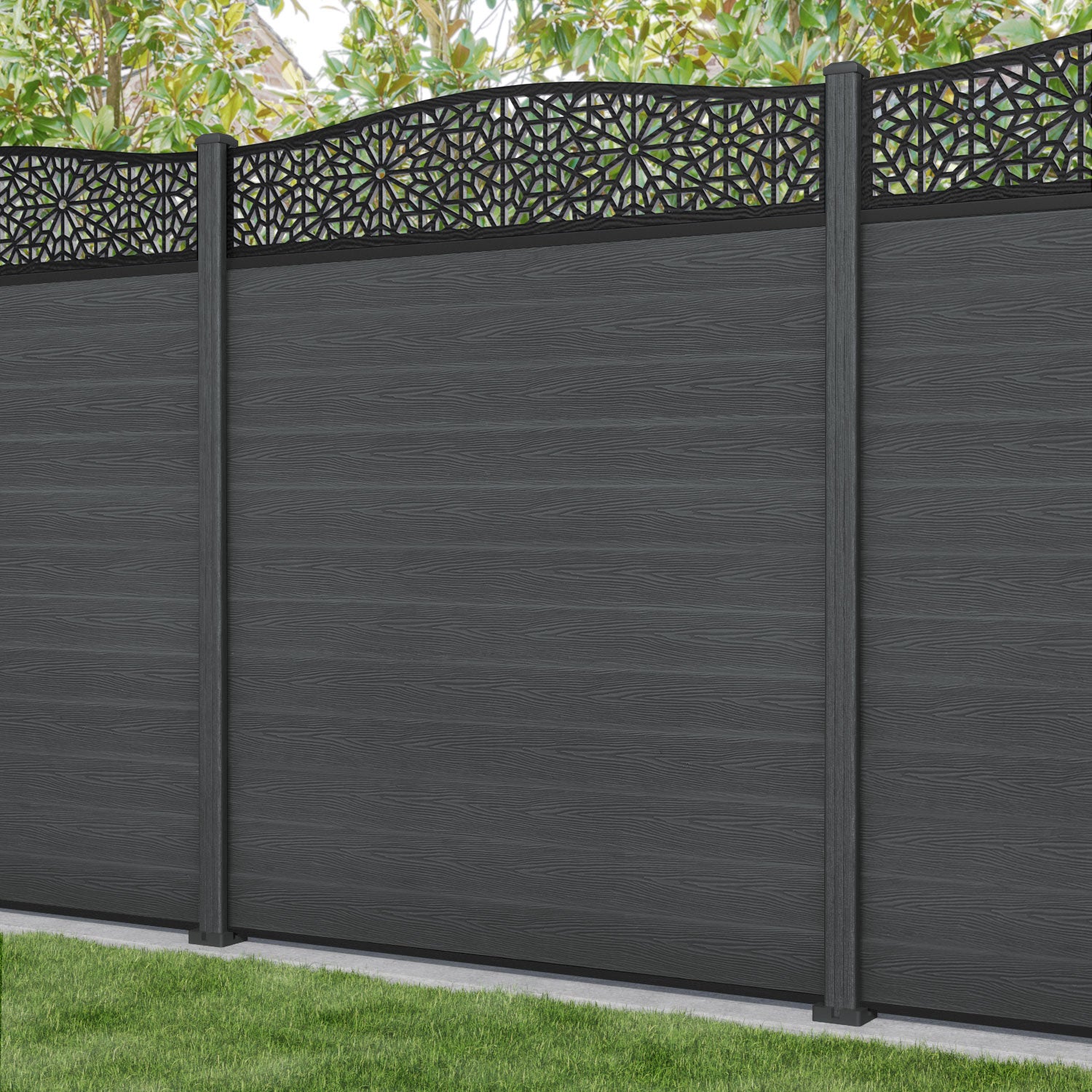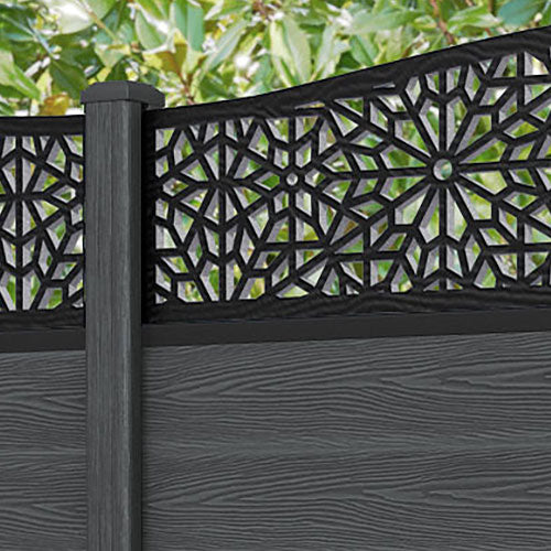 Classic Alnara Curved Top Fence Panel Dark Grey - with our composite posts