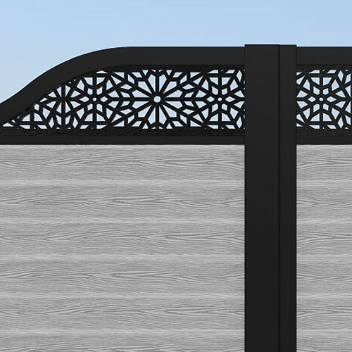 Classic Alnara Curved Top Fence Panel Light Grey - with our aluminium posts